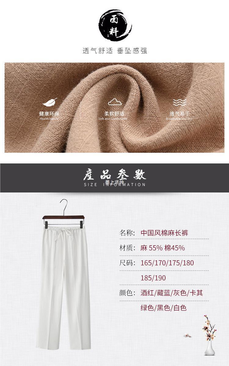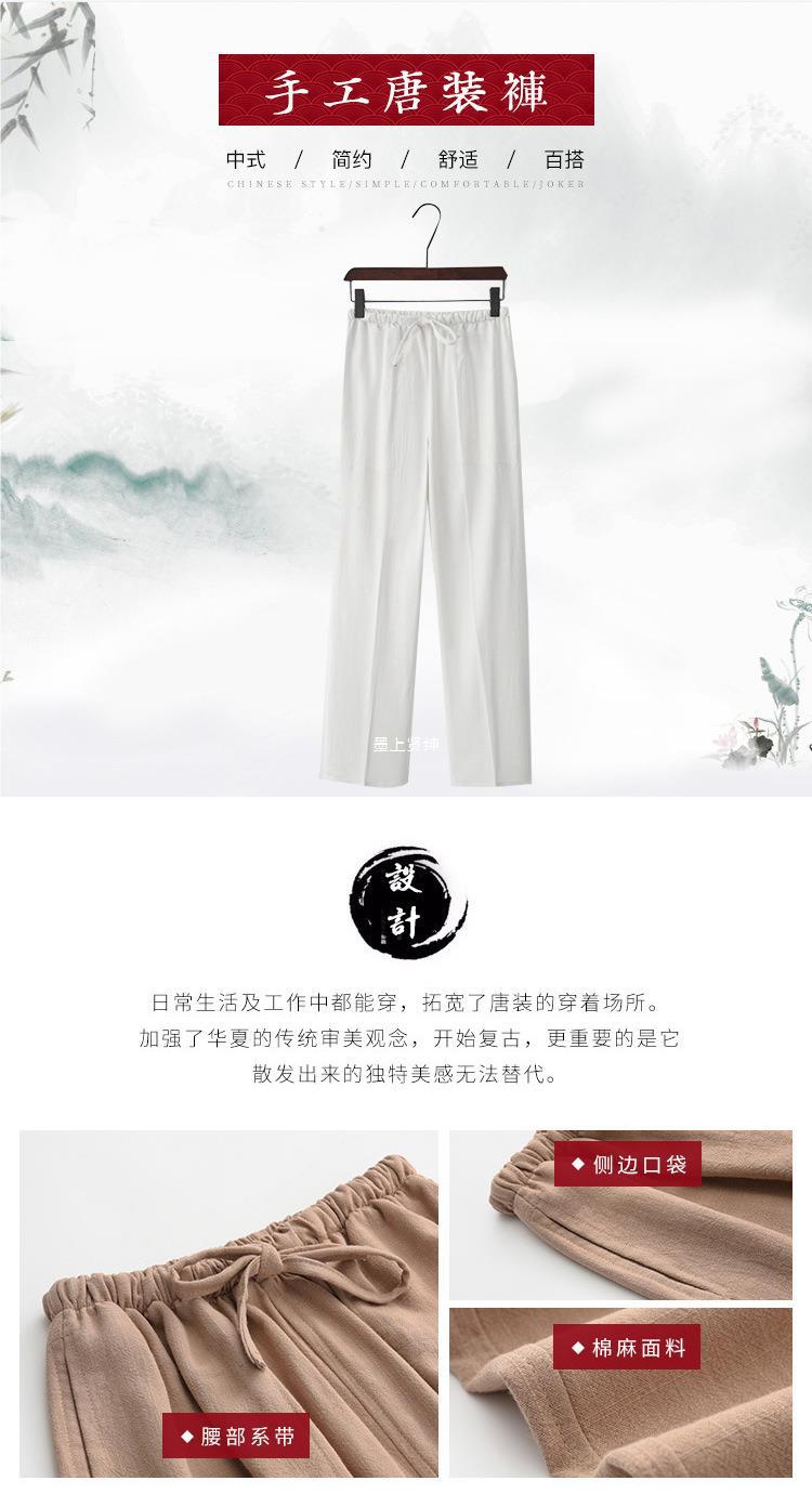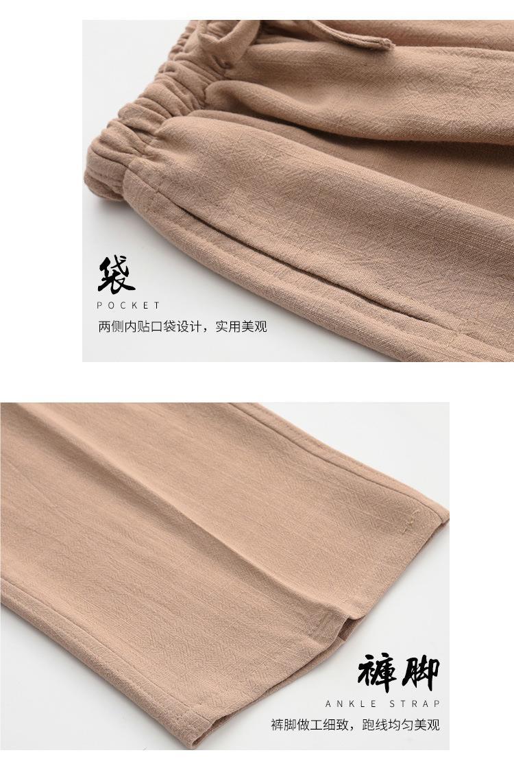 Pantalones casuales de lino de estilo chino para hombres Pantalones sueltos de gran tamaño Pantalones de lino de algodón Pantalones rectos Pantalones de Tai Chi Kung Fu Hombres