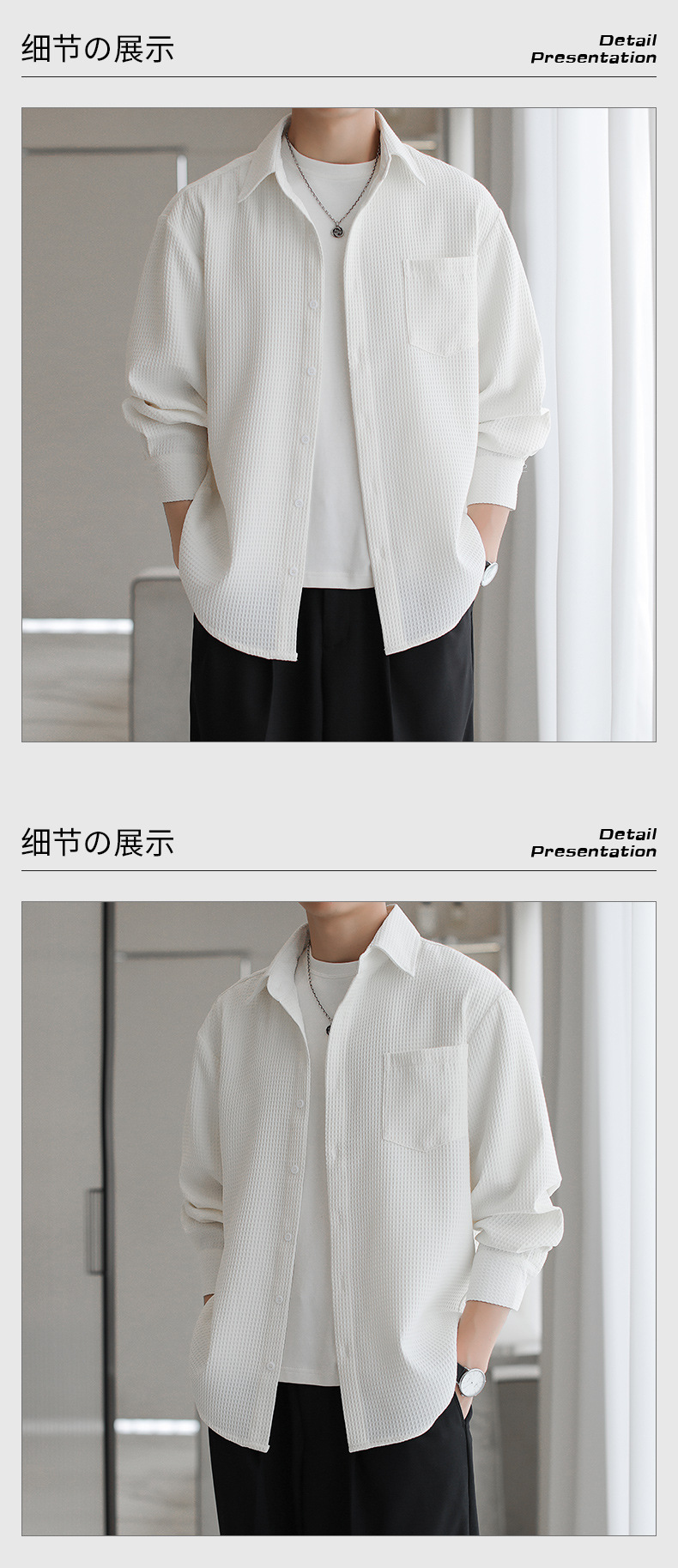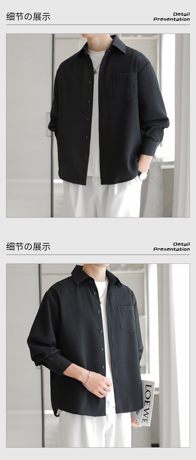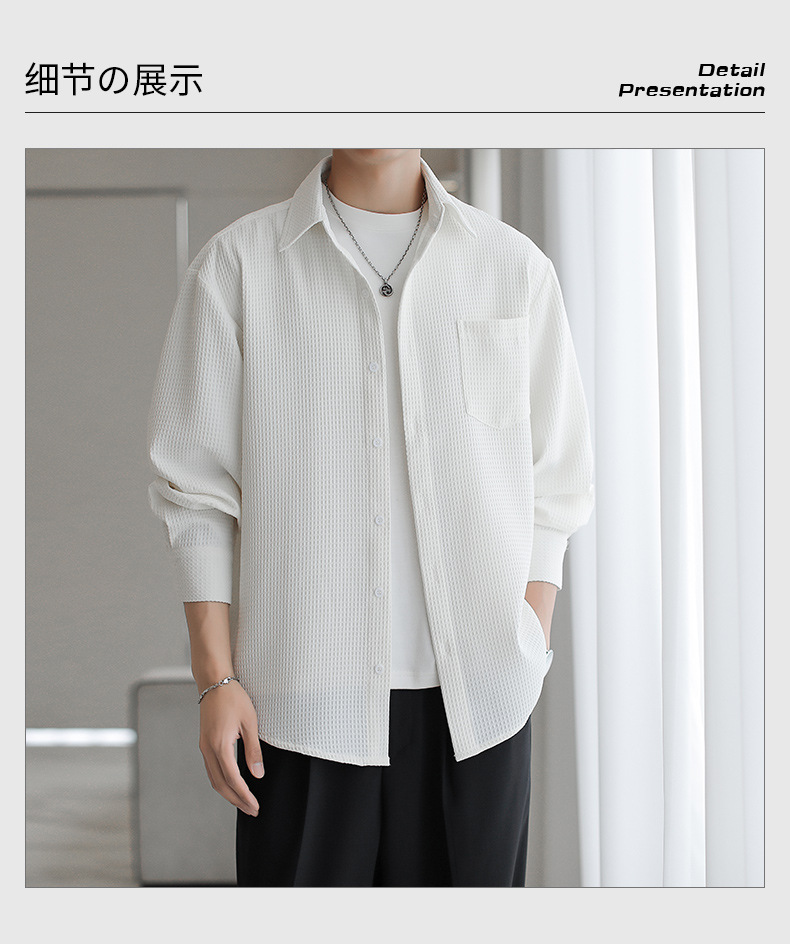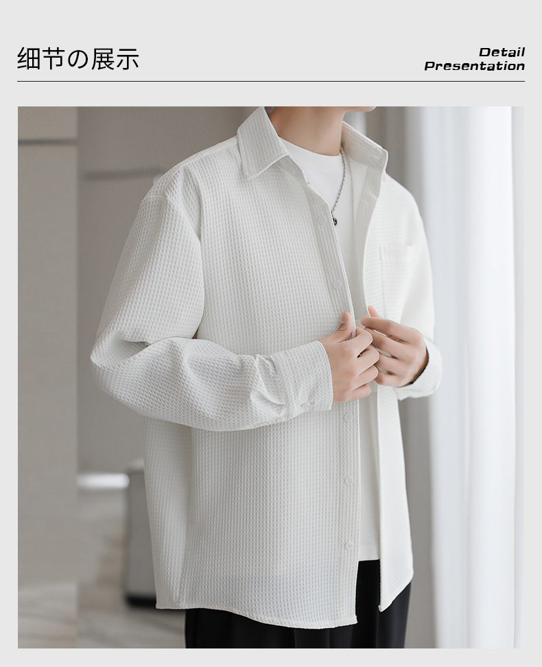 Versión coreana de la camisa de textura para hombres, estilo ligero cocido, suelto, manga larga, suave, ceroso, transpirable, camisa fresca, ropa de trabajo de moda, camisa de pulgadas, marea