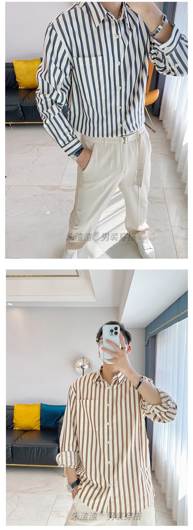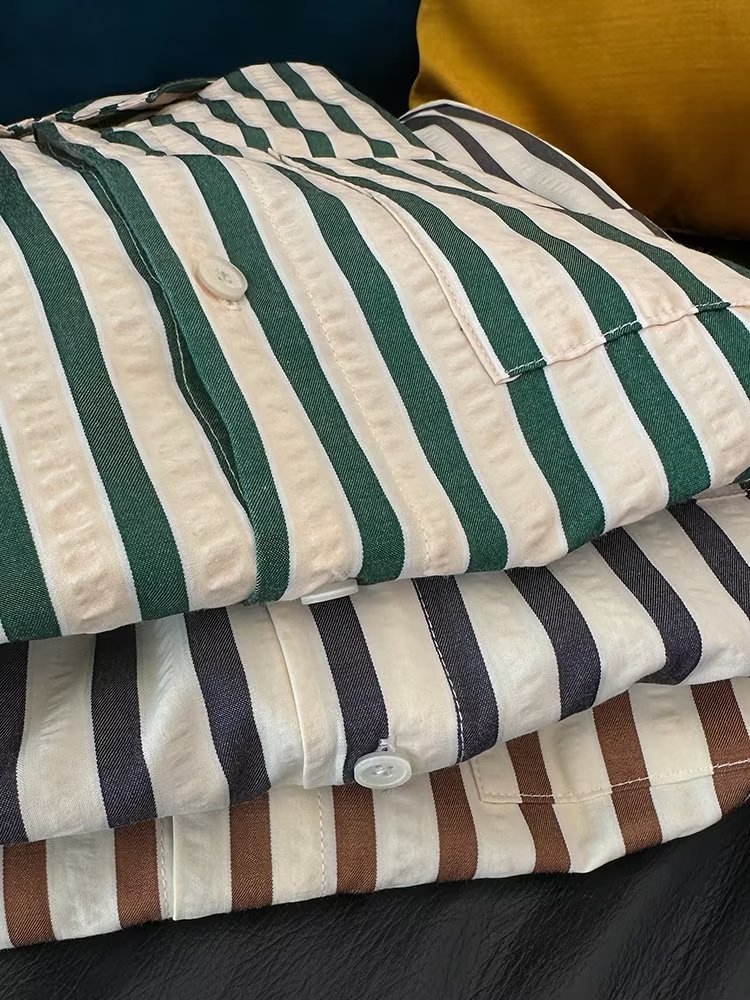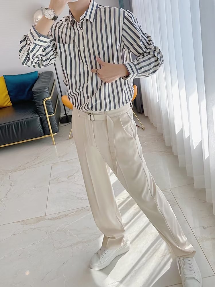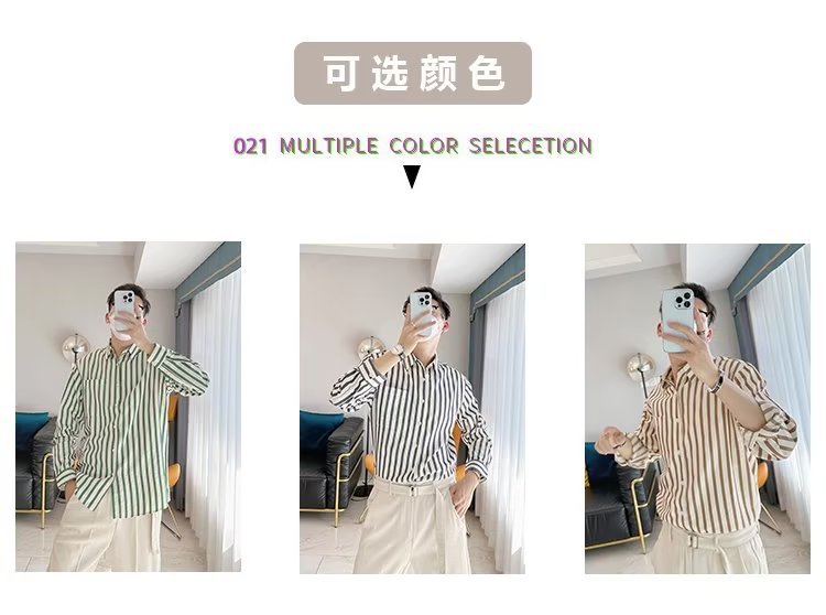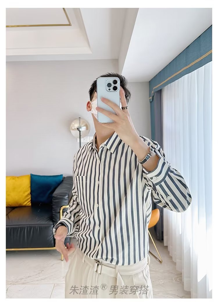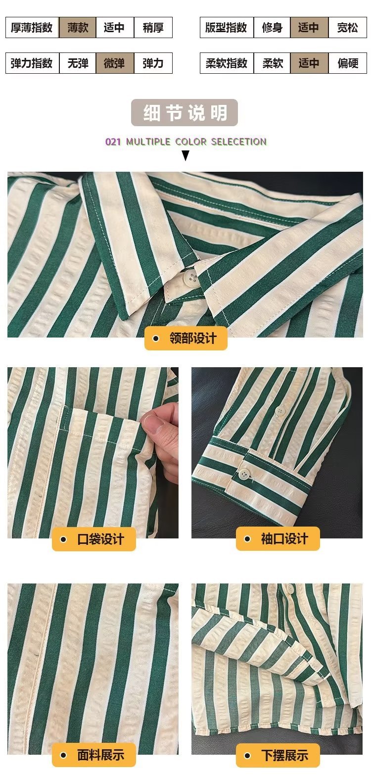 Camisa de primavera y otoño Chaqueta delgada de lujo ligera para adolescentes Camisa casual de negocios de manga larga a rayas verticales para hombres