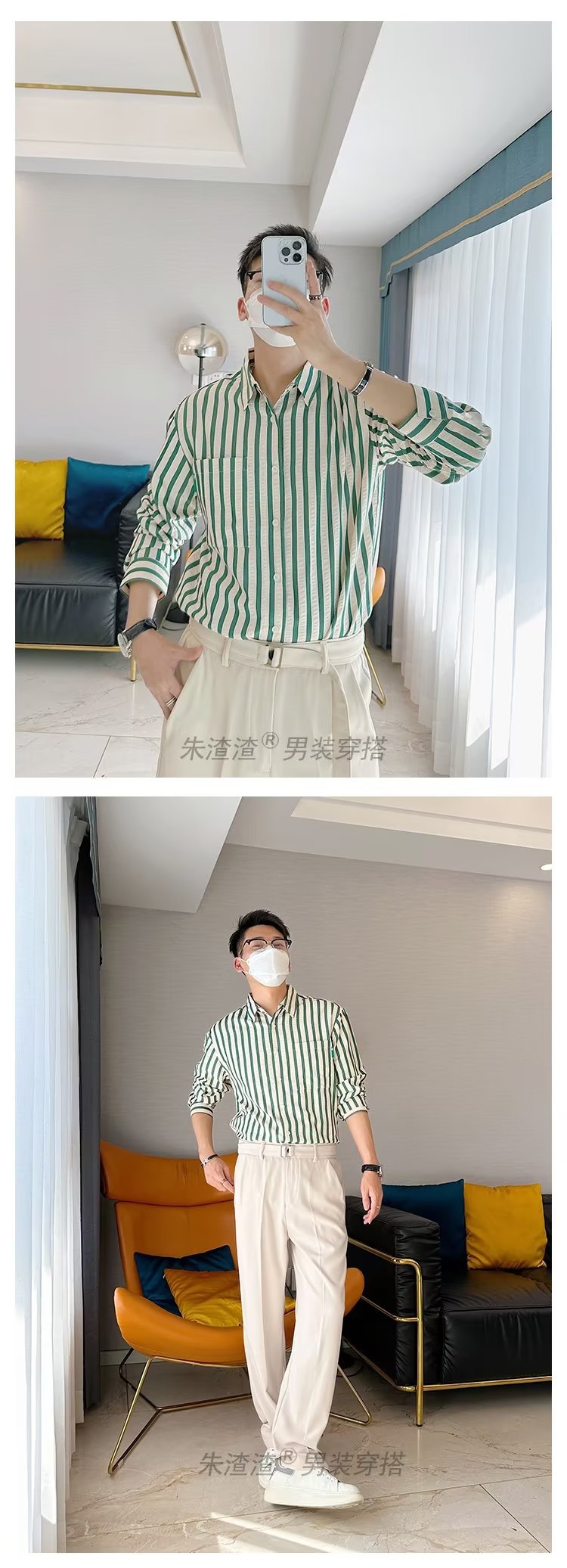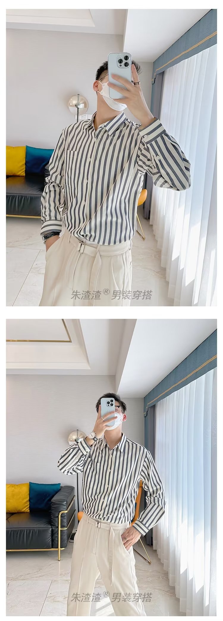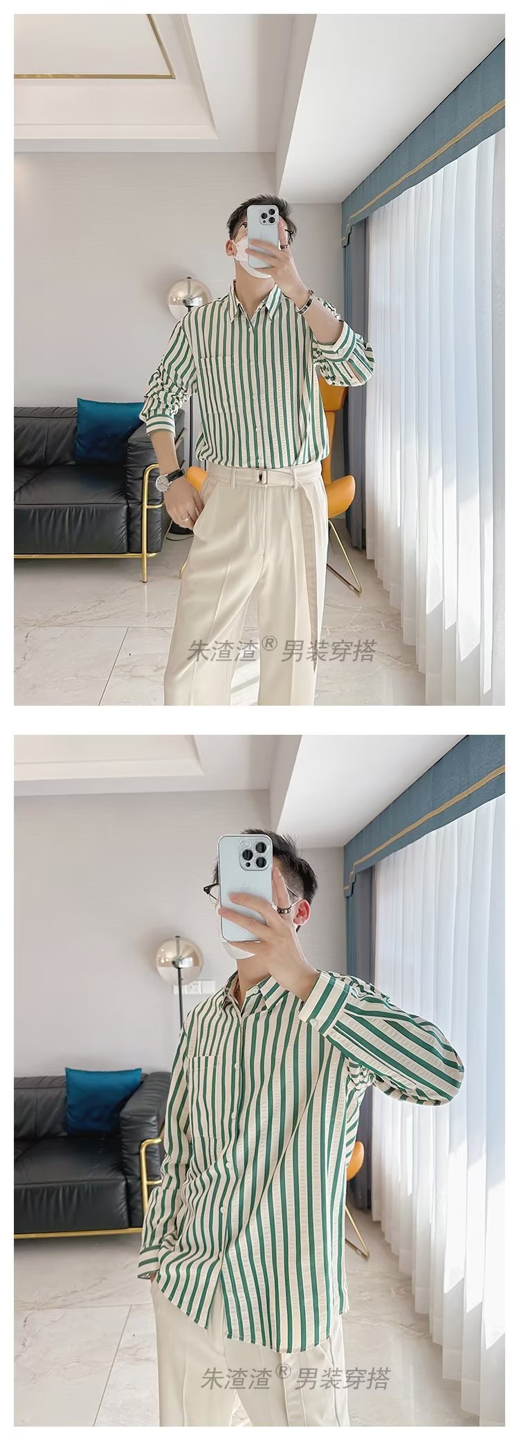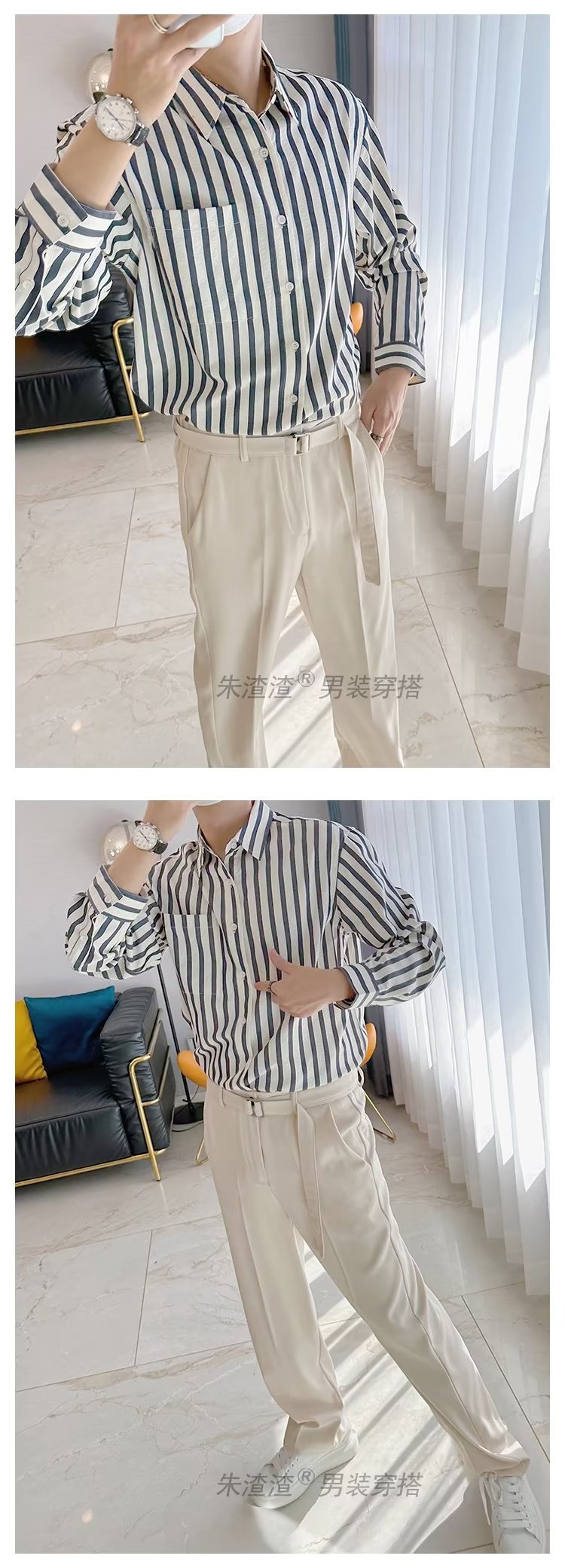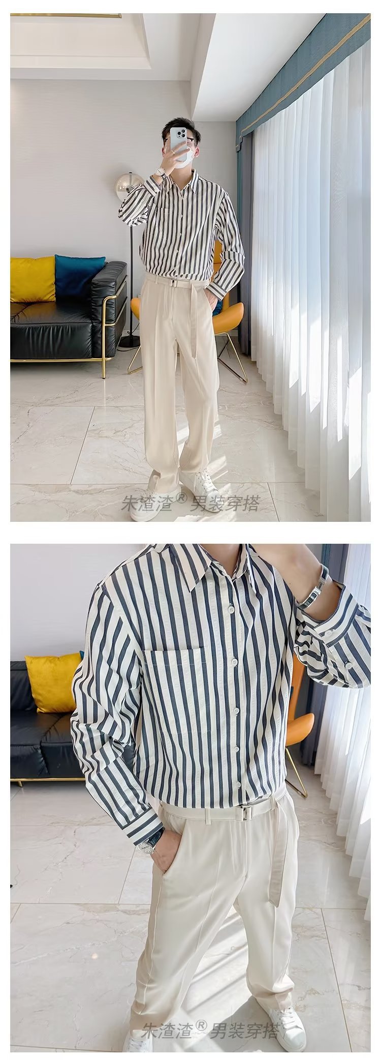 Camisa de primavera y otoño Chaqueta delgada de lujo ligera para adolescentes Camisa casual de negocios de manga larga a rayas verticales para hombres