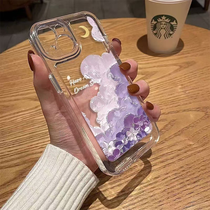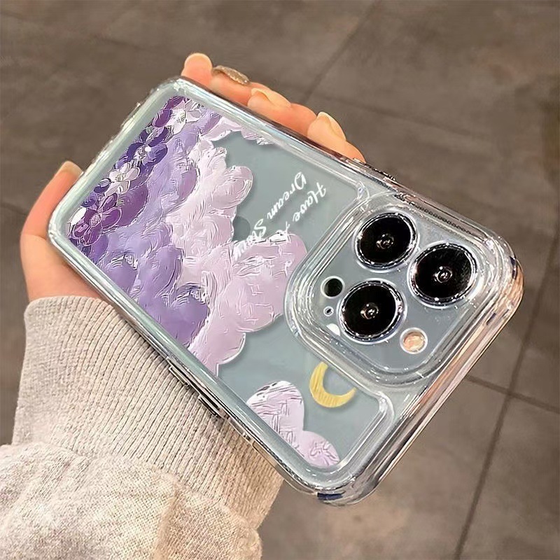 Pintura al óleo Luna para iphone16promax funda para teléfono móvil transparente Apple 15 anti-caída 14pro Japón y Corea 13/12