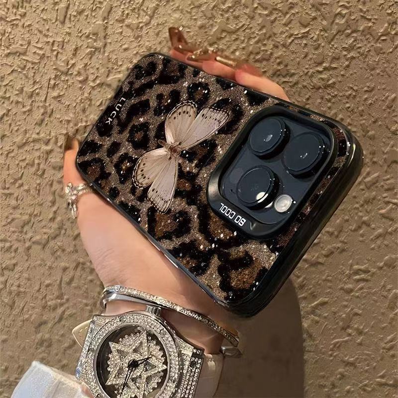 Nuevo estampado de leopardo de mariposa dorada para iPhone 16 funda para teléfono móvil Apple 15promax/14/13pro/12 Europa y América