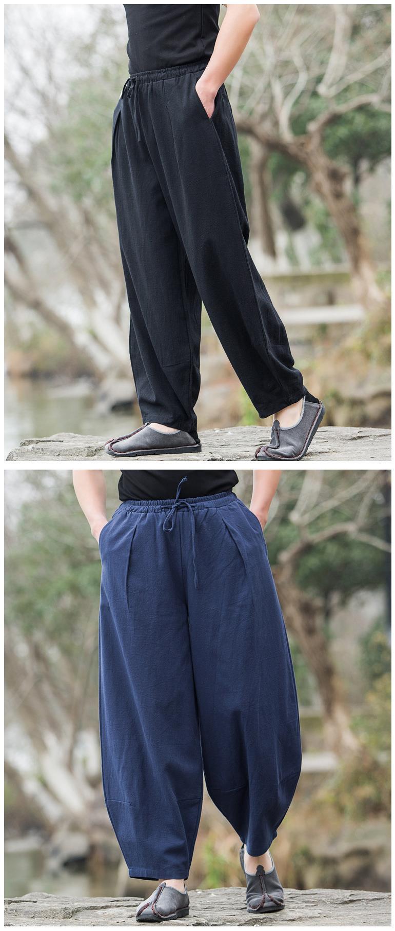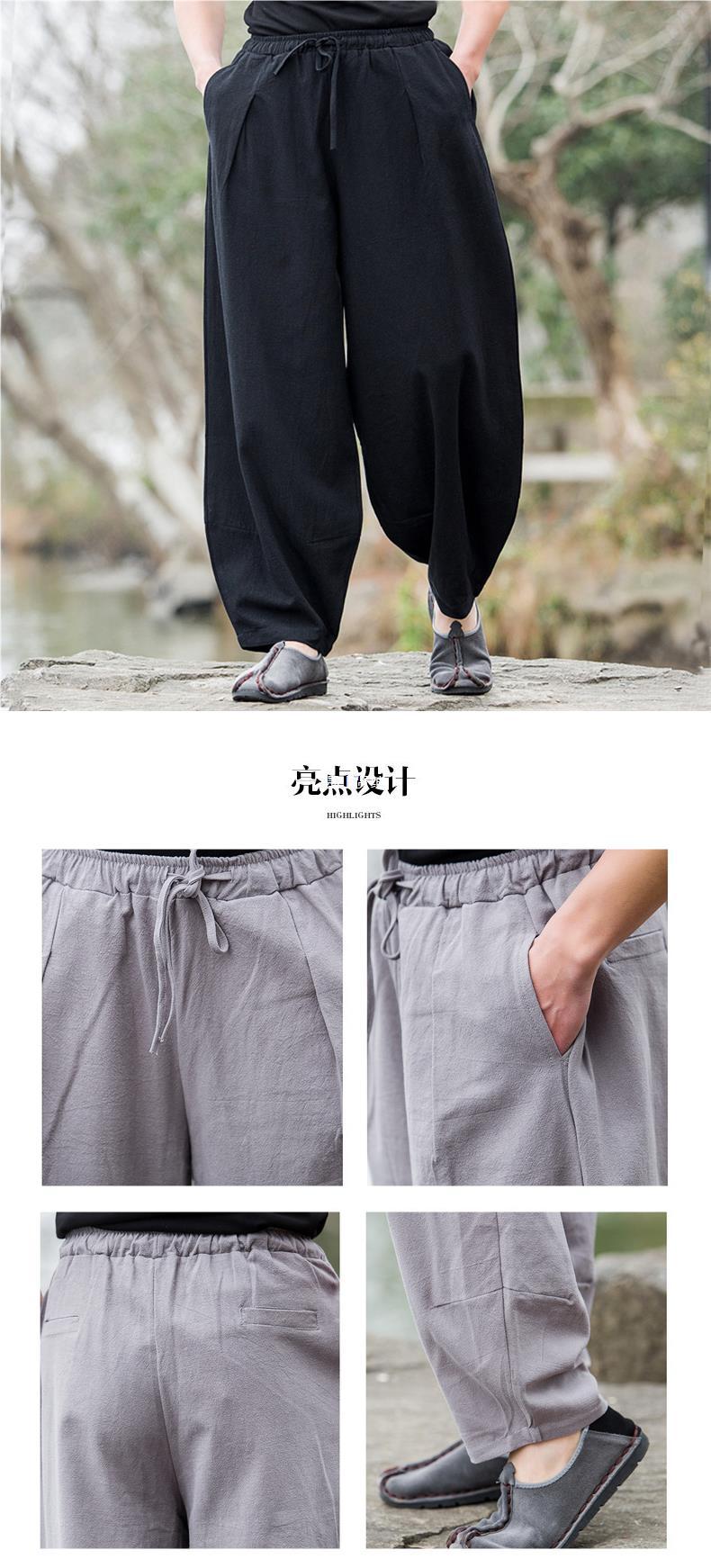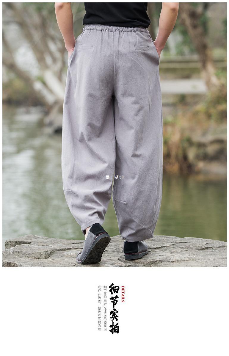 Pantalones casuales de lino de estilo chino de primavera y verano para hombres Pantalones anchos de talla grande de traje Tang de estilo retro de algodón y lino