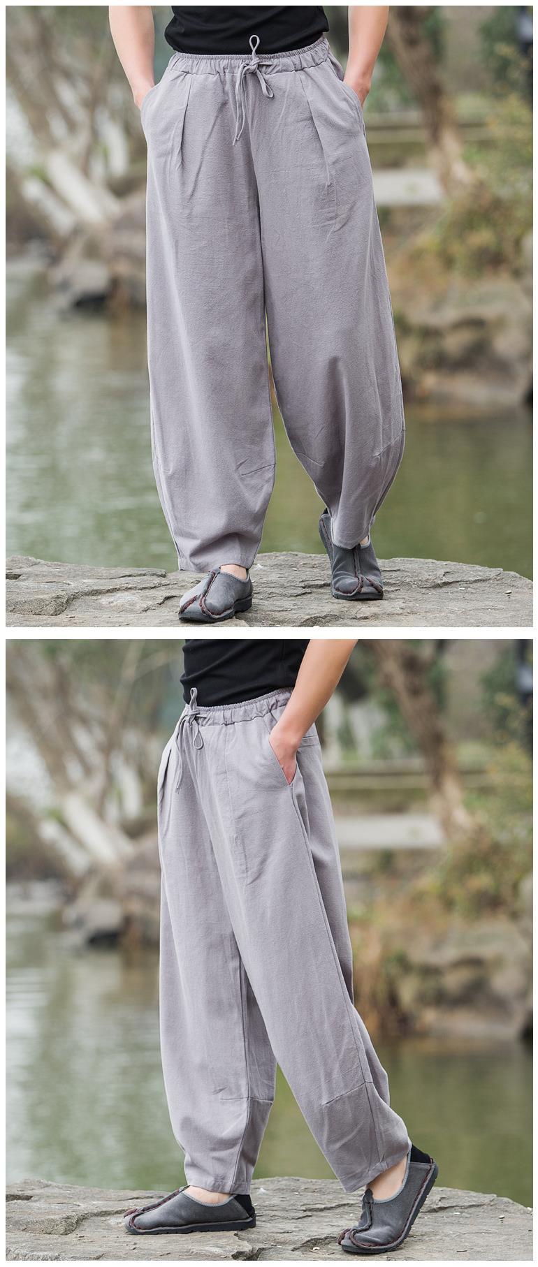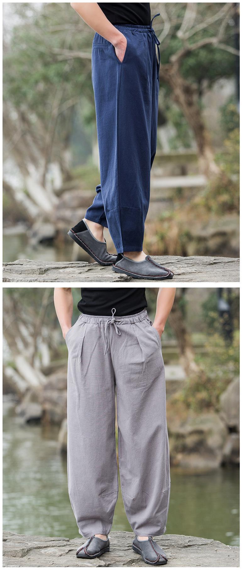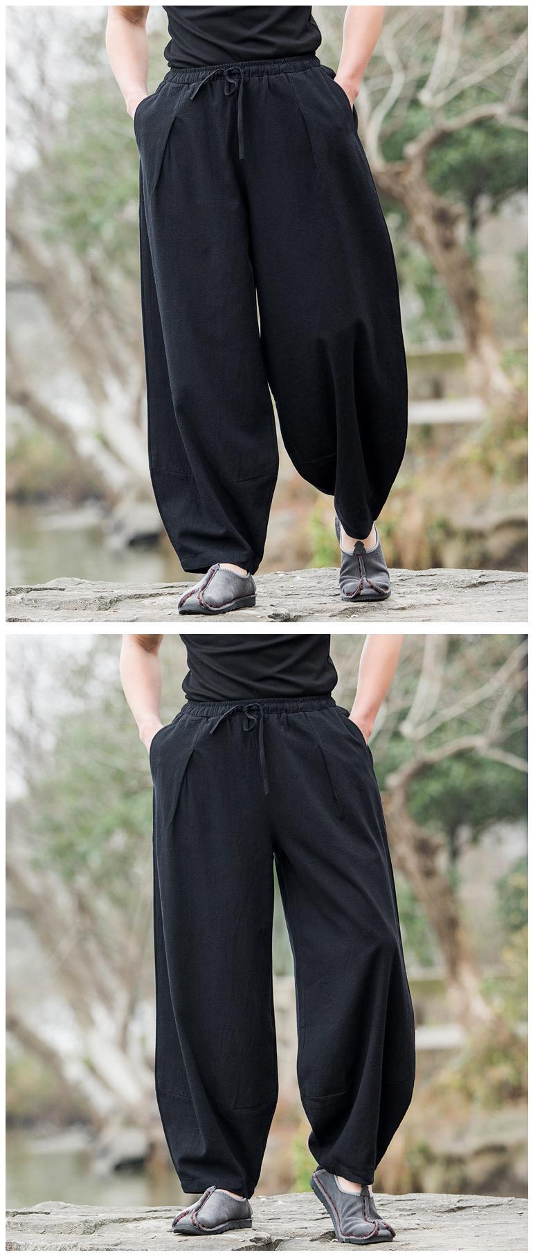 Pantalones casuales de lino de estilo chino de primavera y verano para hombres Pantalones anchos de talla grande de traje Tang de estilo retro de algodón y lino