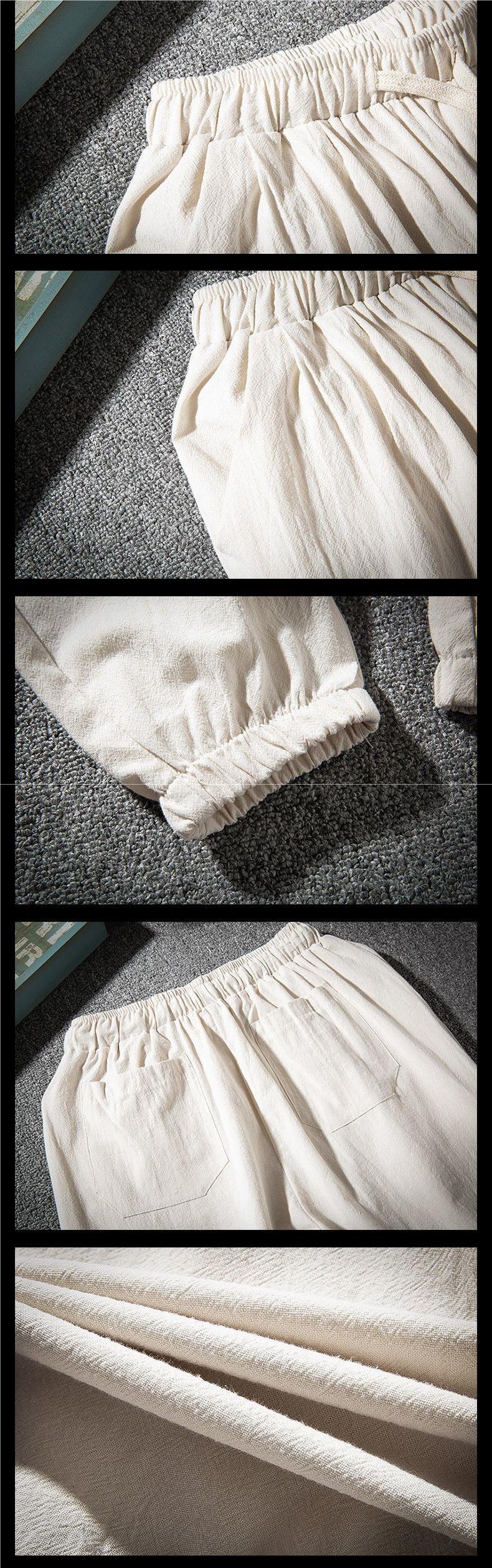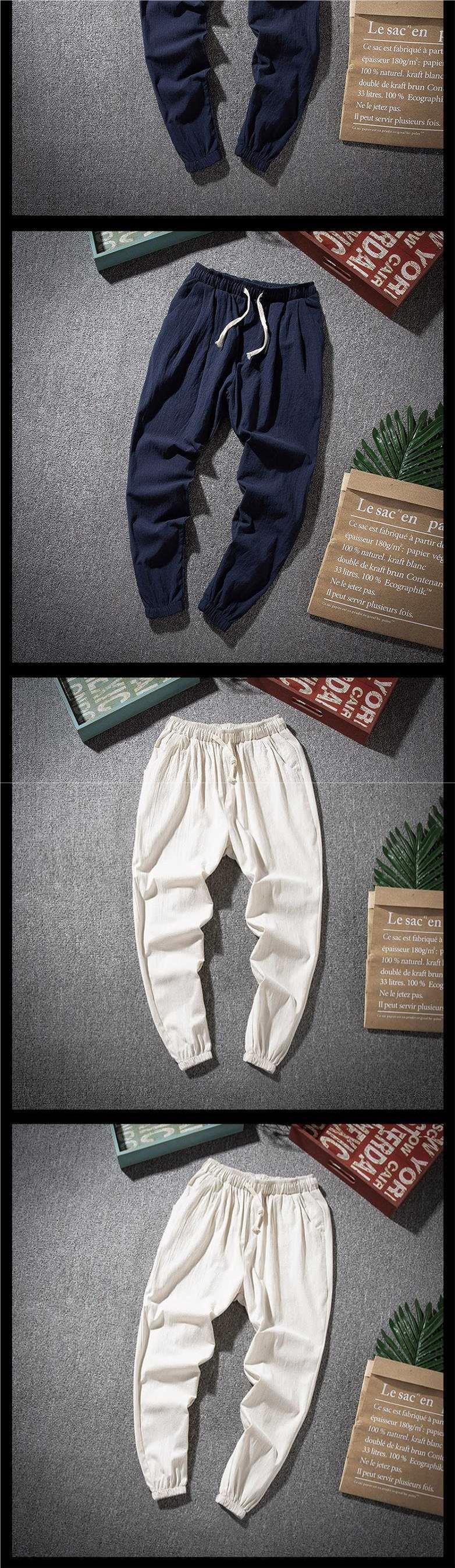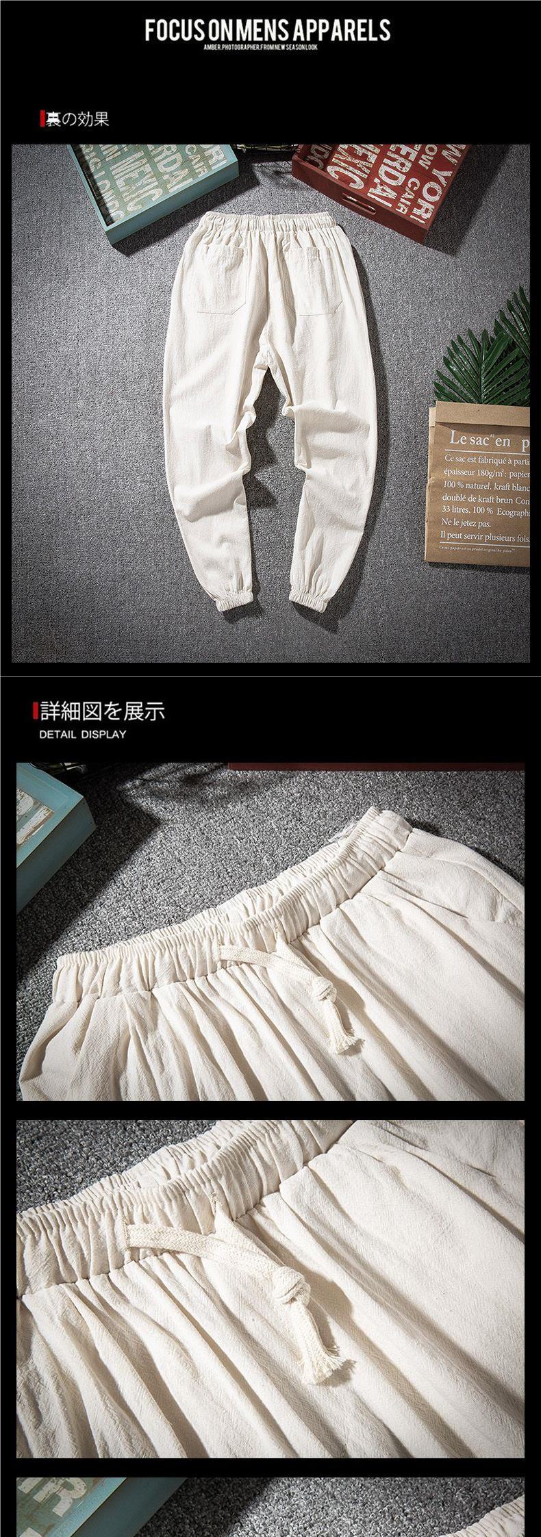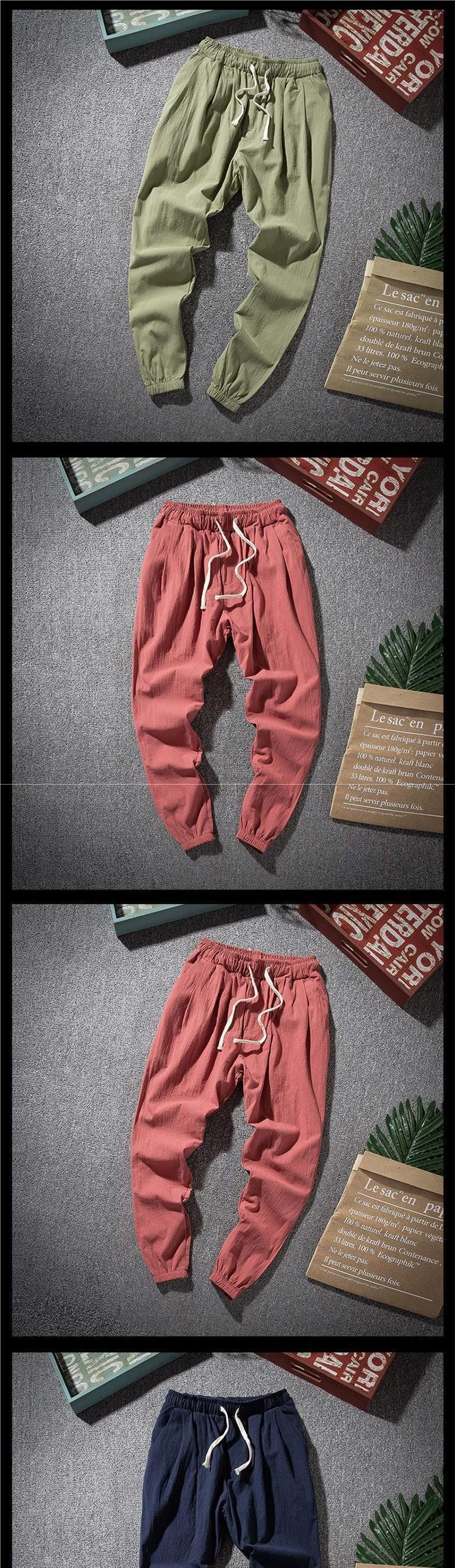 Pantalones de lino casuales para hombres de nuevo estilo con cordones sueltos de lino de algodón transpirable, tendencia juvenil, pantalones largos de talla grande de todo fósforo
