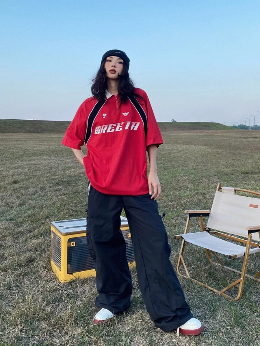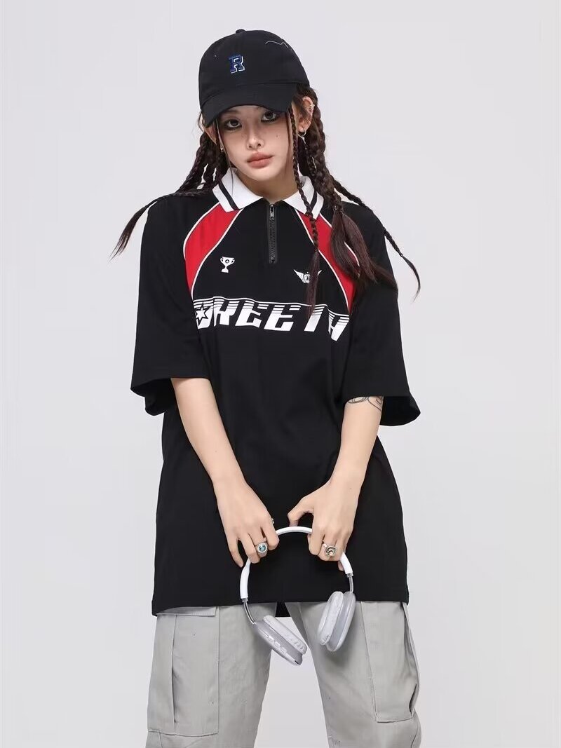 Camiseta de manga corta para hombres y mujeres, moda nacional, costura americana, contraste, 2025, nueva camisa POLO, solapa, uniforme de fútbol, mangas raglán