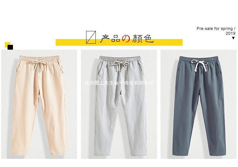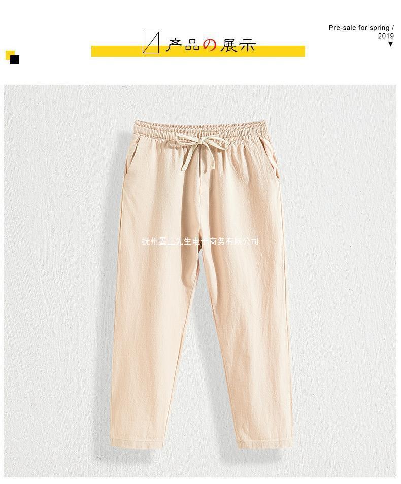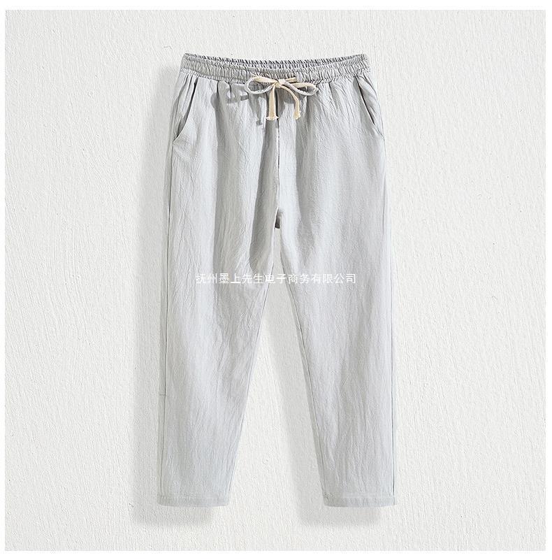 Pantalones cortos de lino de verano para hombres, pantalones para hombres, pantalones casuales, pantalones finos para hombres, sueltos de 9 puntos 8, pantalones de lino de algodón para hombres, de moda