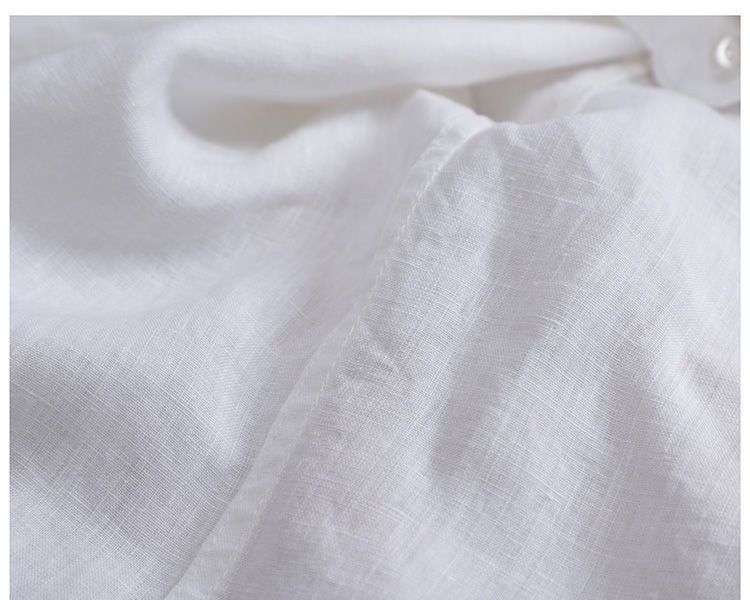 Material de cáñamo de manga tres cuartos blanco [cuello alto]
