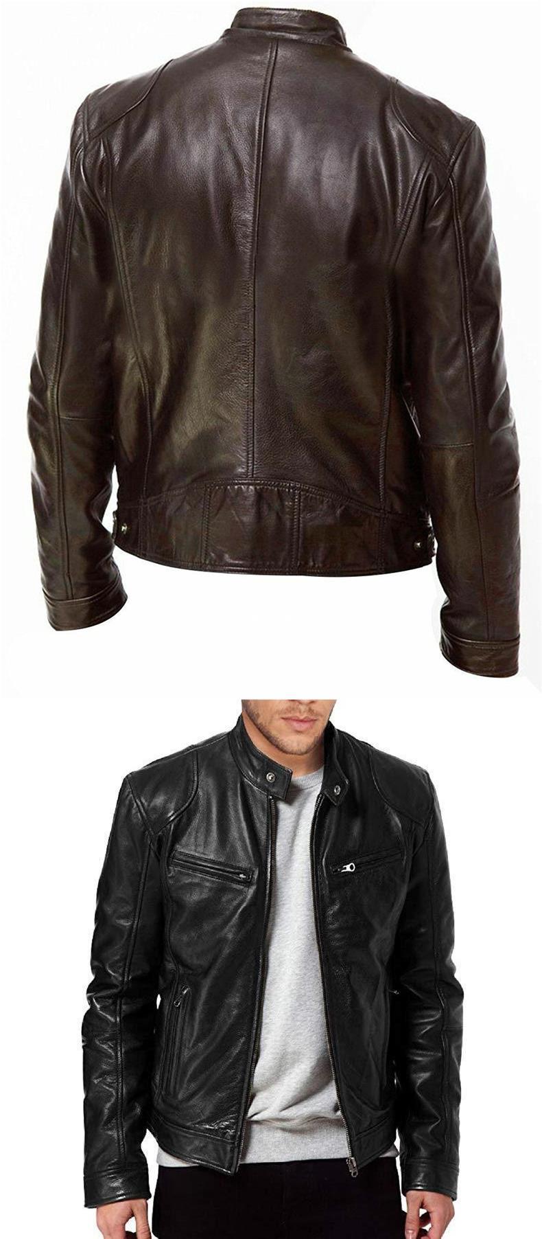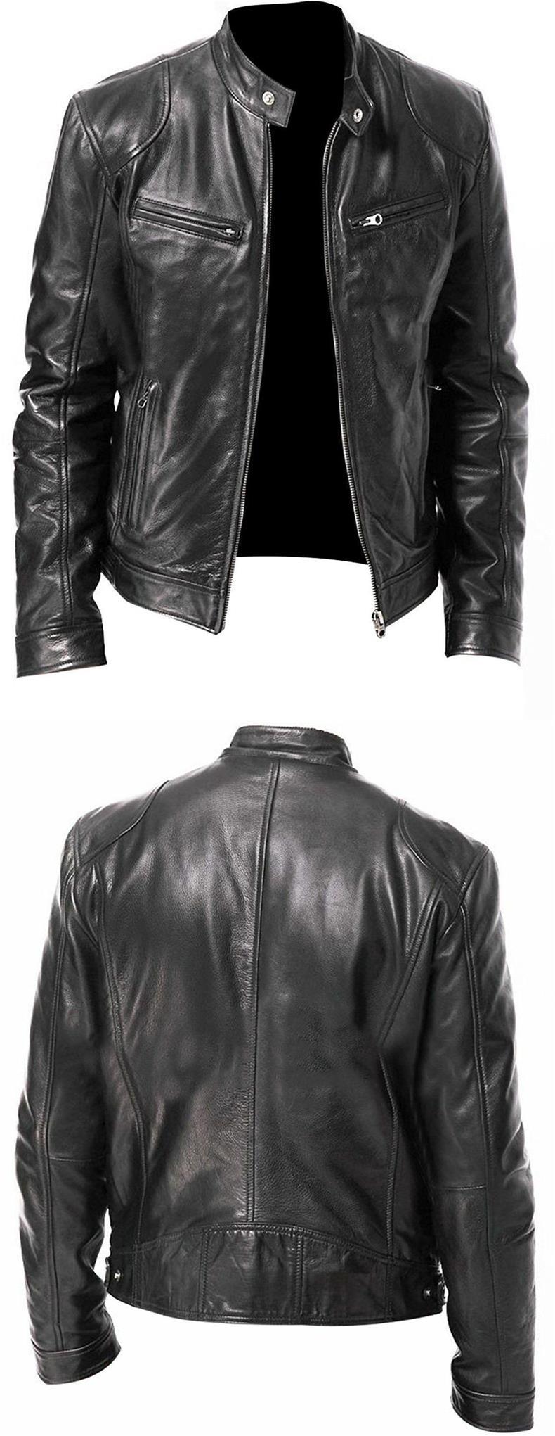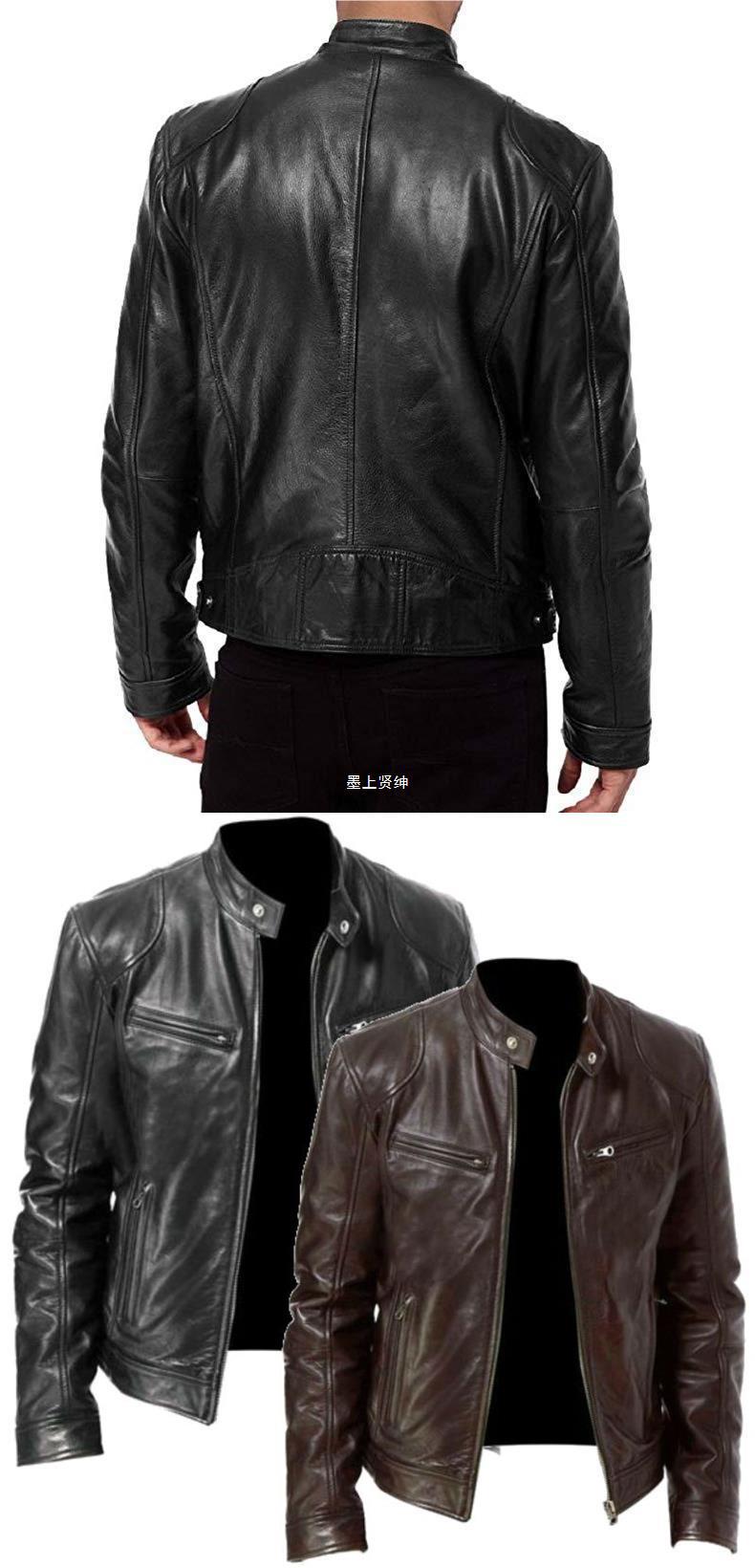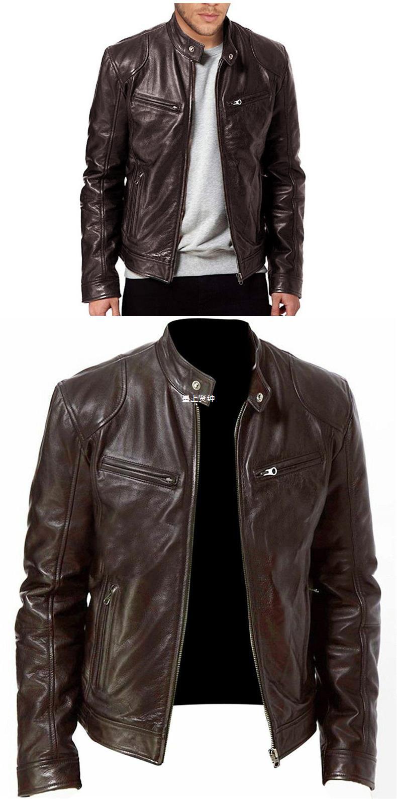 Chaqueta de cuero delgada de cuello alto de gran tamaño 2023 para hombre con cremallera, decoración de bolsillo, ropa de cuero de pu, ropa de motocicleta PY31 especial P55