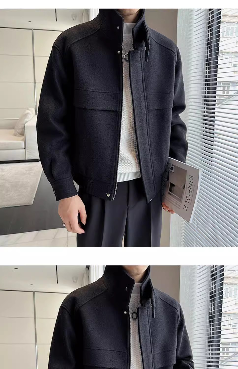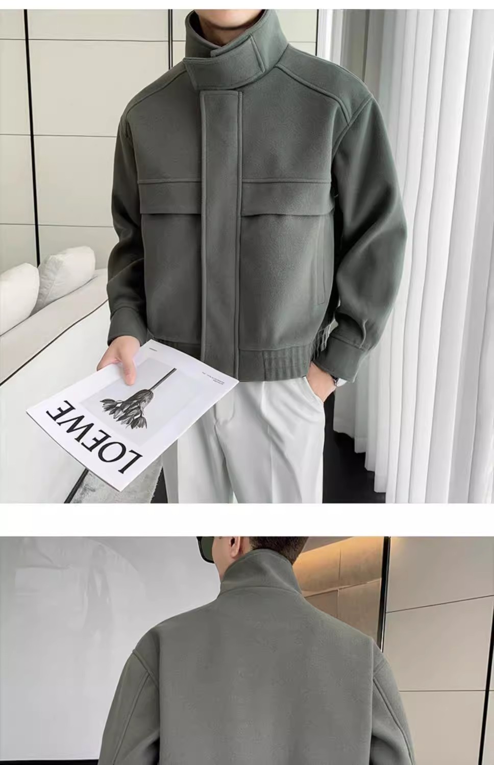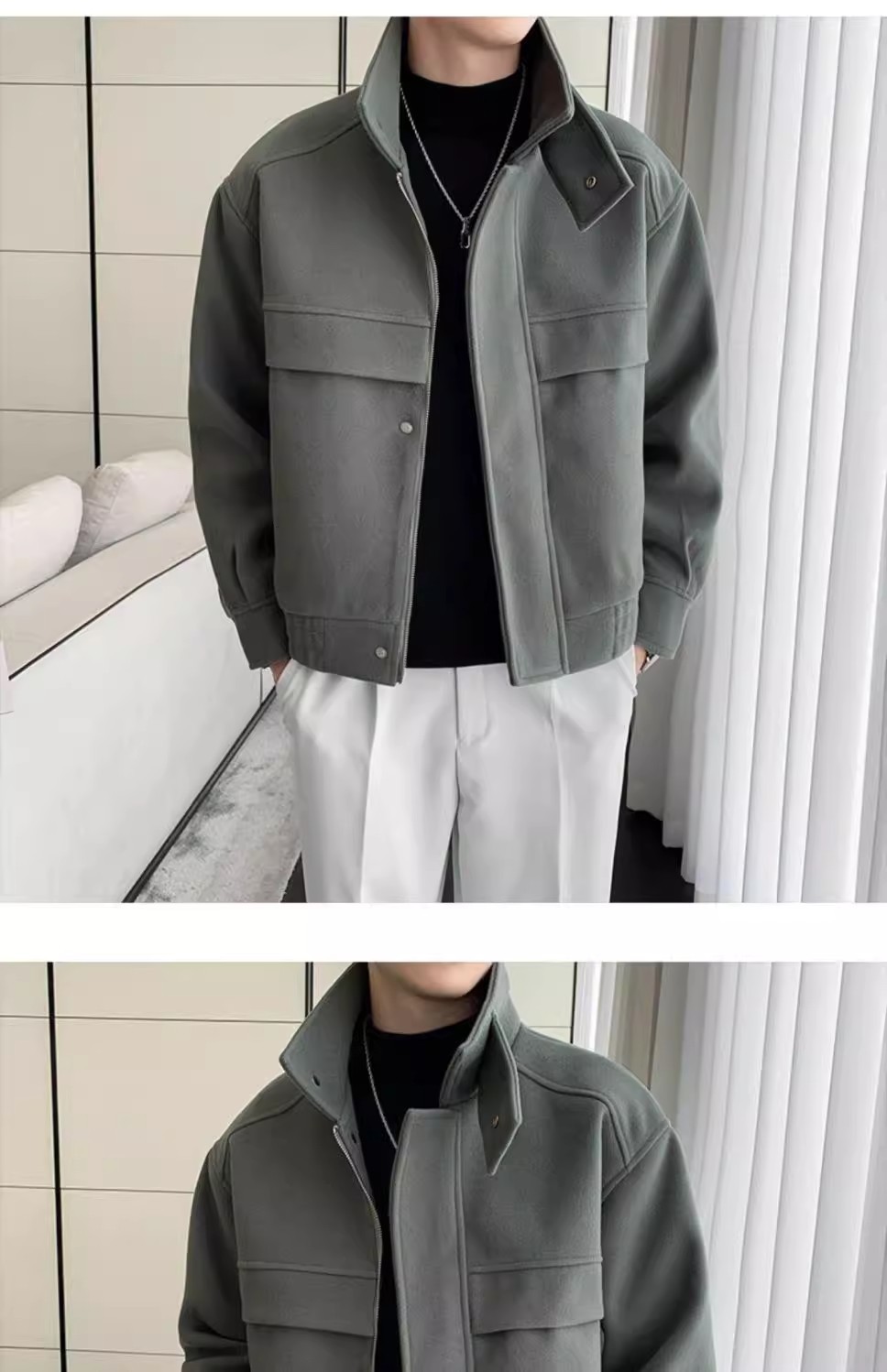 Chaqueta de lana para hombres, otoño e invierno, solapa corta, chaqueta casual de marca de moda, versión coreana, tops engrosados de todo fósforo, tendencia