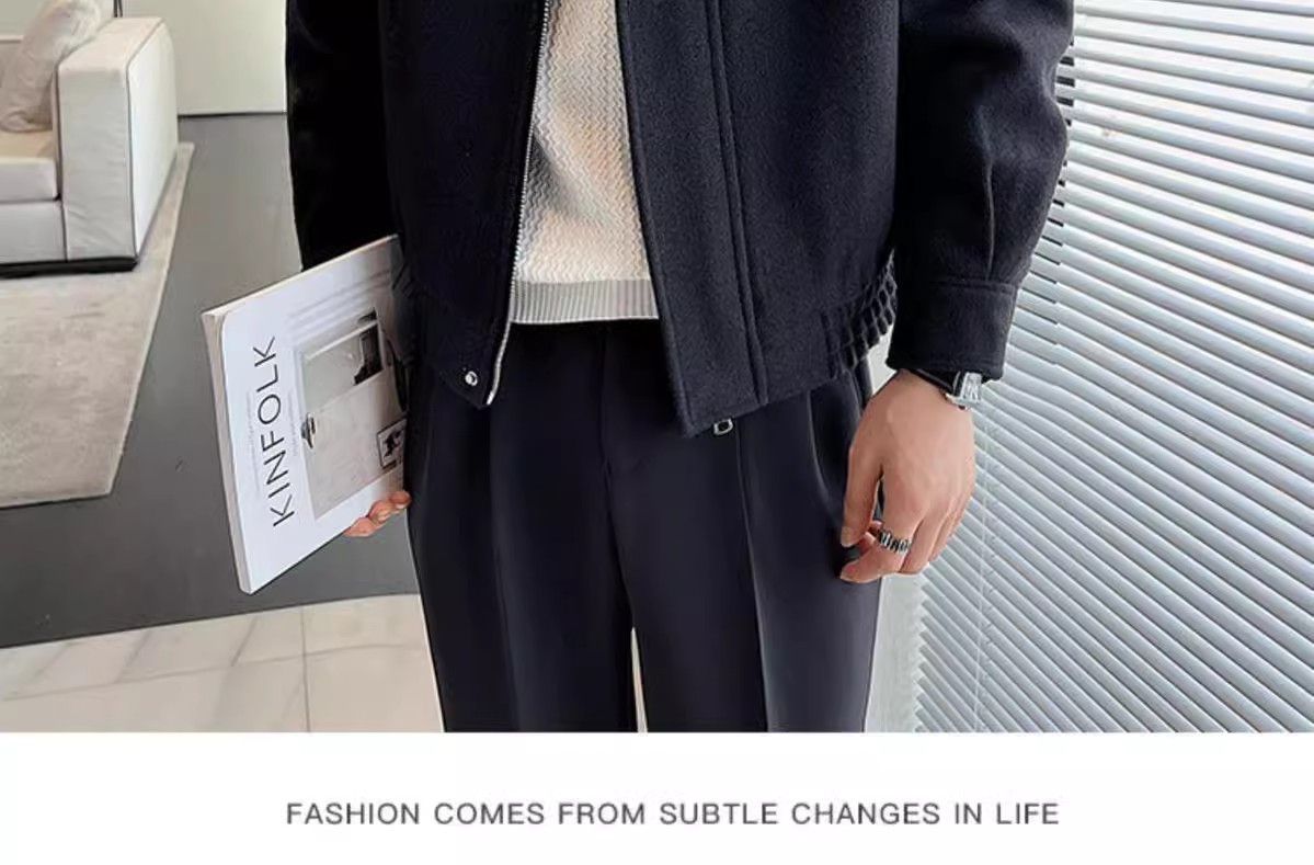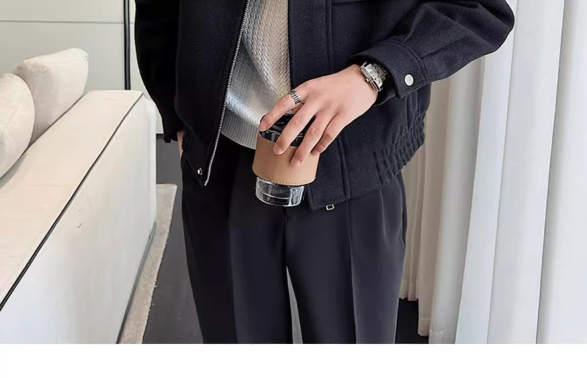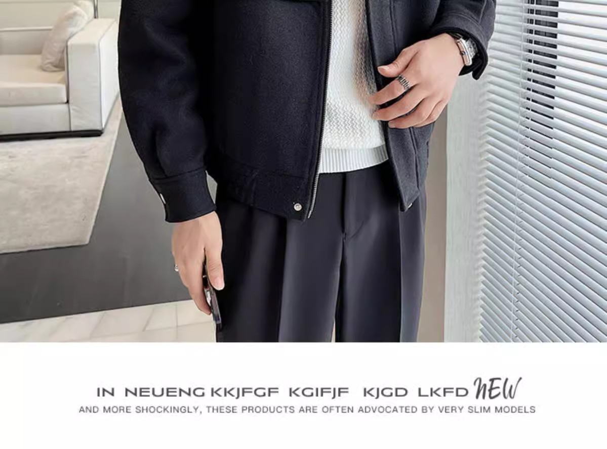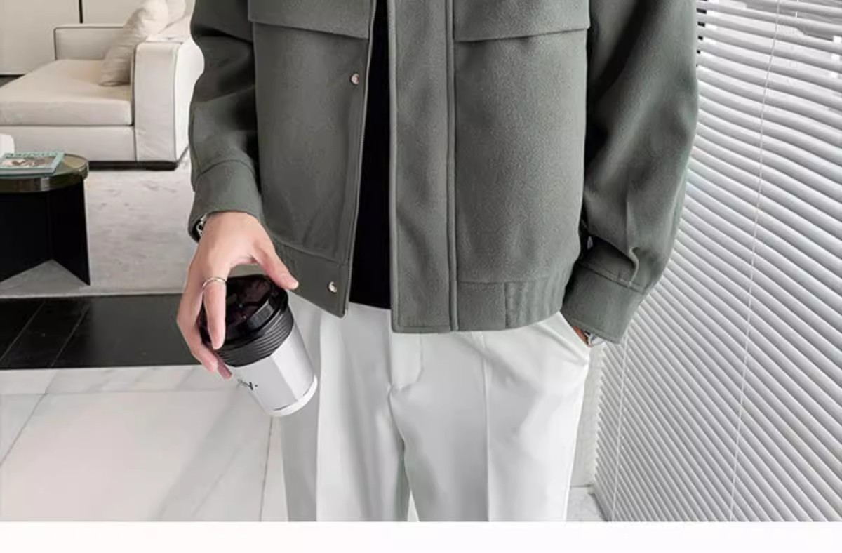 Chaqueta de lana para hombres, otoño e invierno, solapa corta, chaqueta casual de marca de moda, versión coreana, tops engrosados de todo fósforo, tendencia