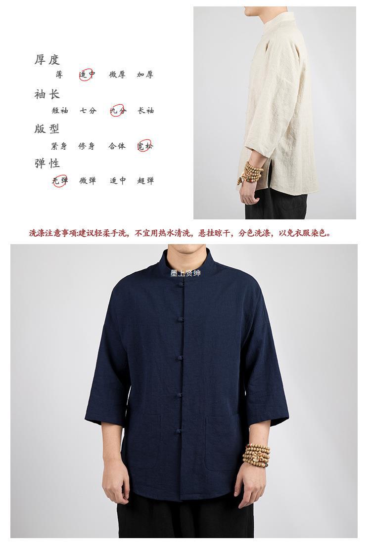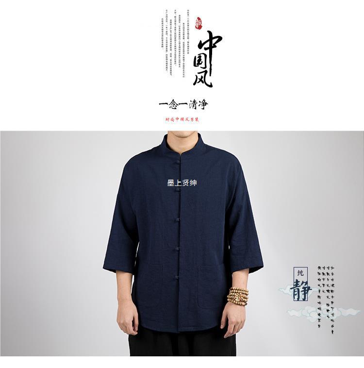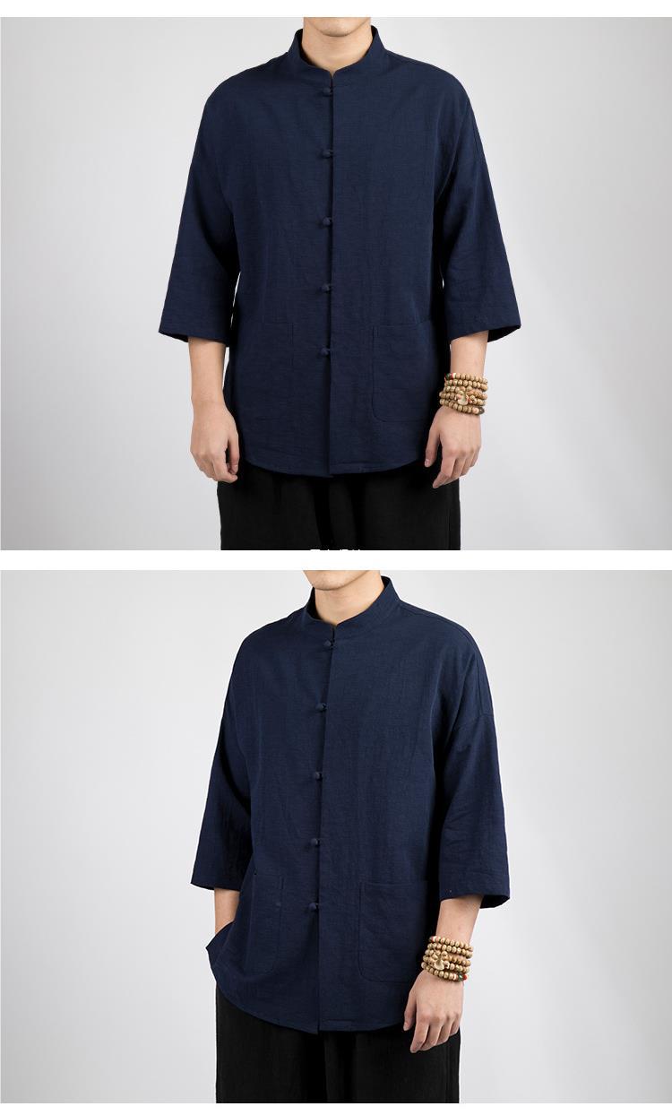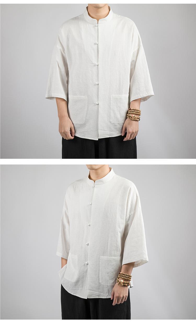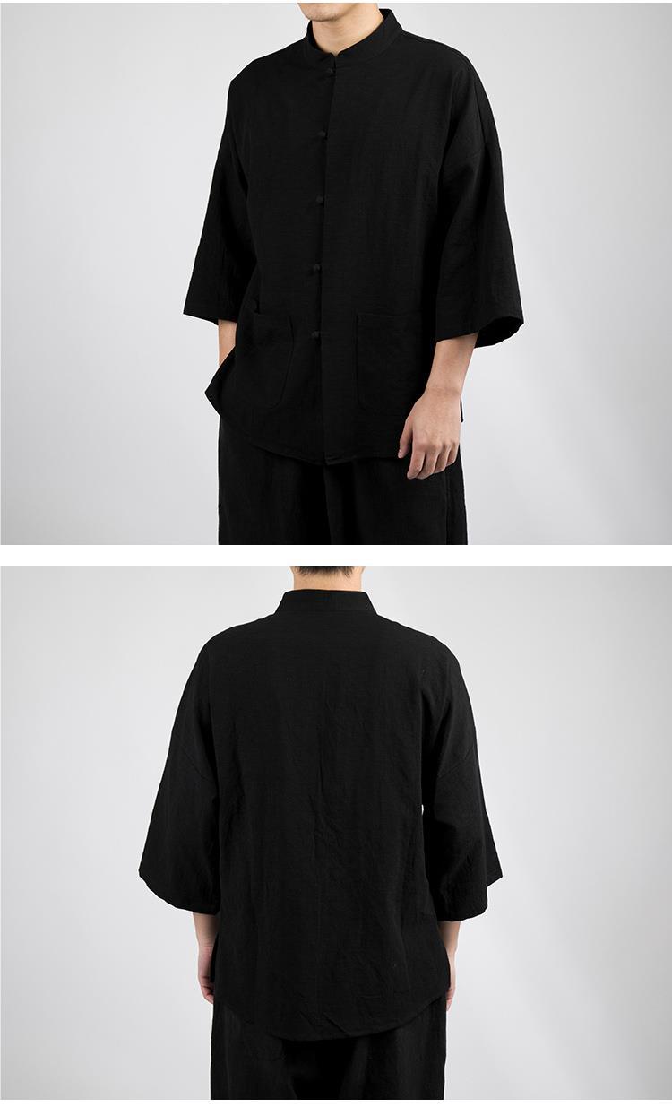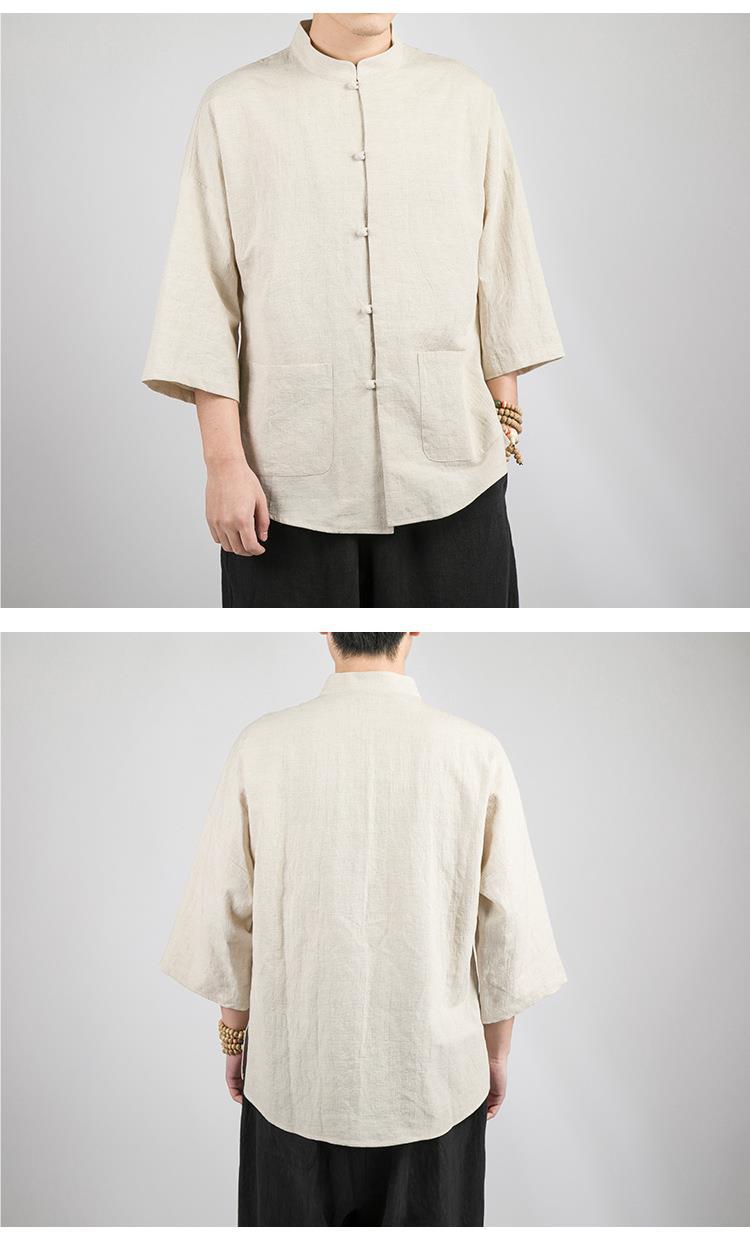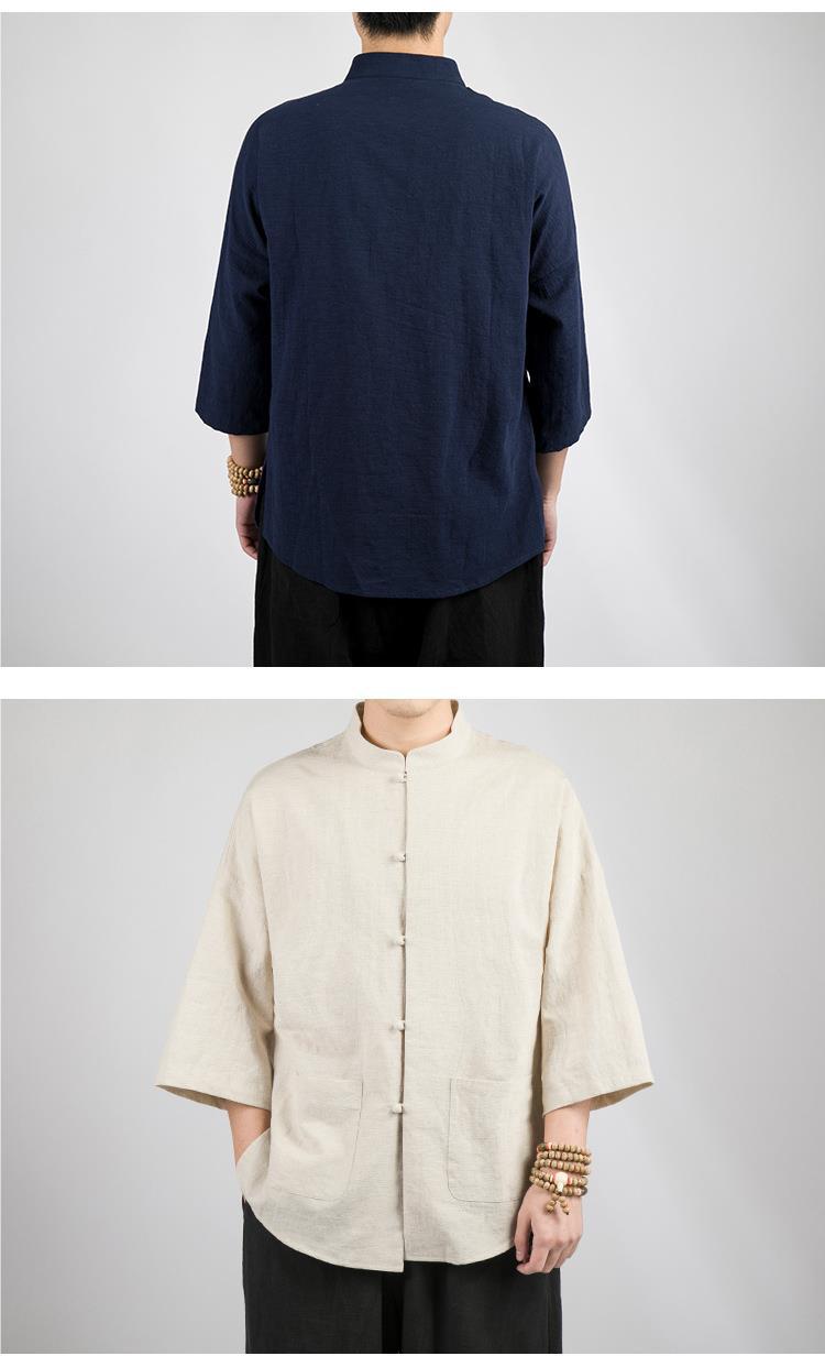 Camisa Zhongshan de lino de estilo chino, manga de cinco puntos para hombres, traje Tang, algodón y lino chino, camisa fina informal, traje de té de verano