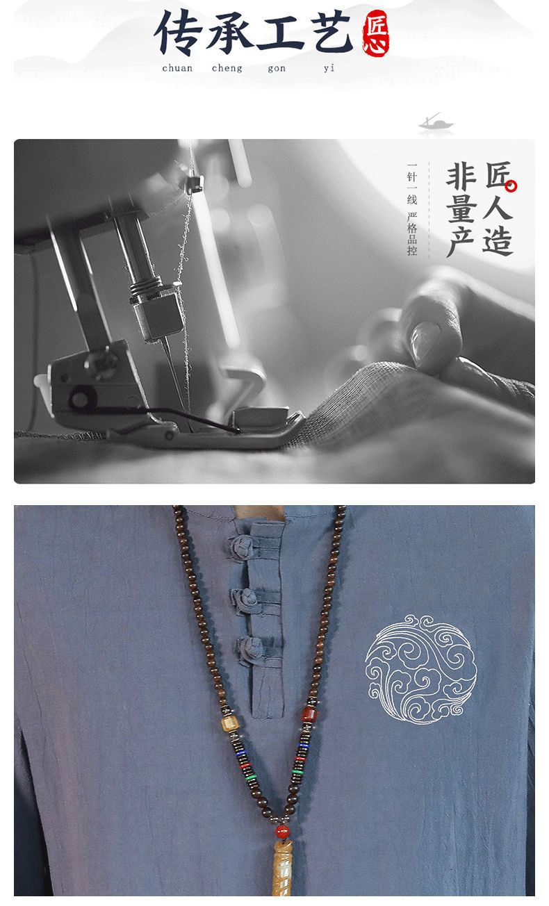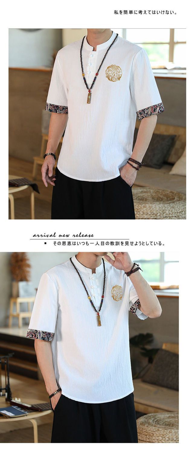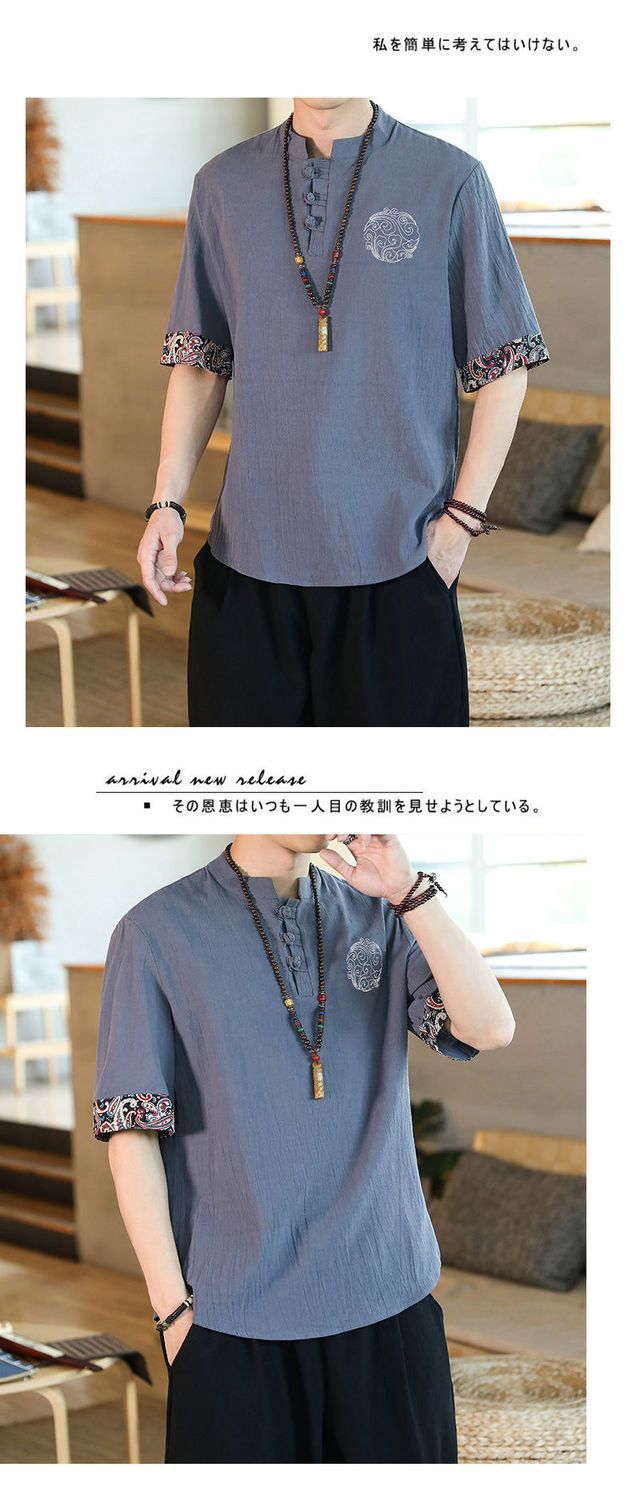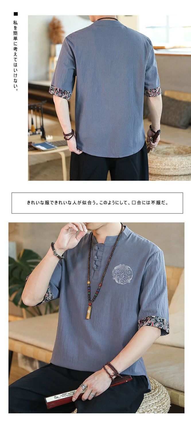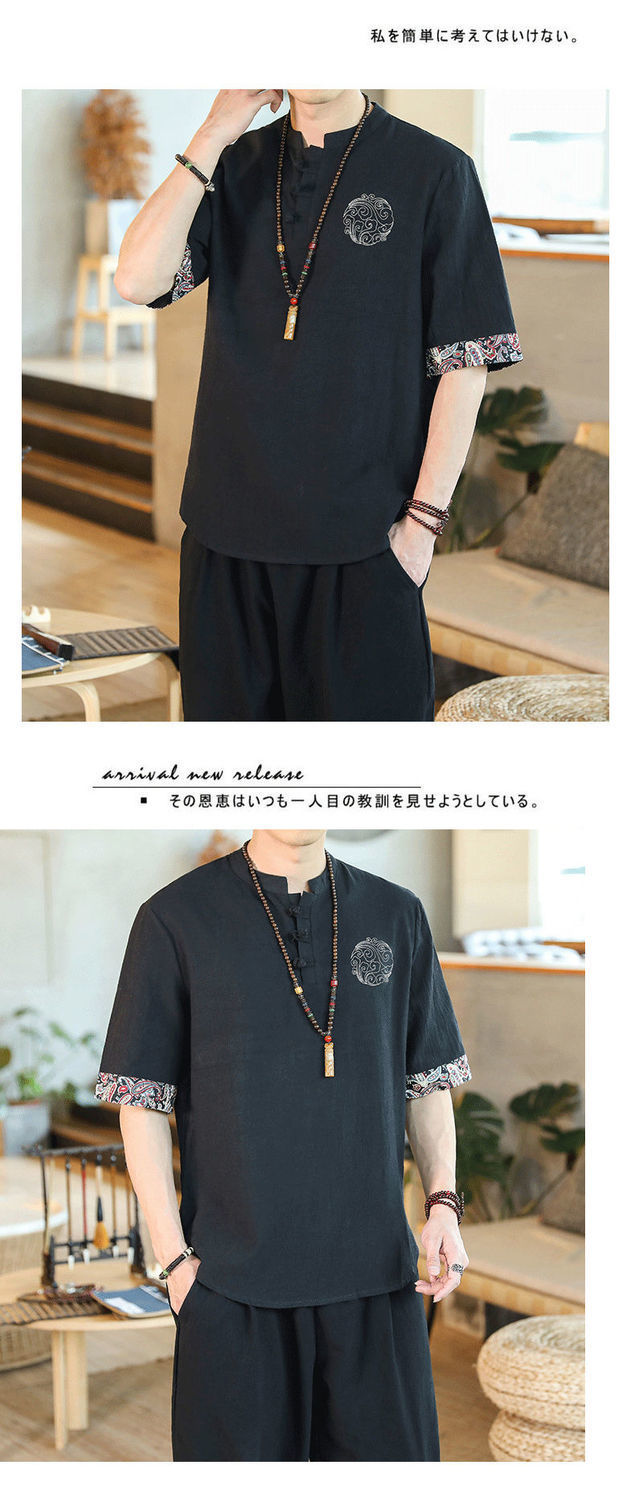 Camiseta de lino de manga corta para hombre Traje Tang de estilo chino Traje de hombre gordo retro de gran tamaño Abrigo de algodón y lino de media manga suelto y delgado