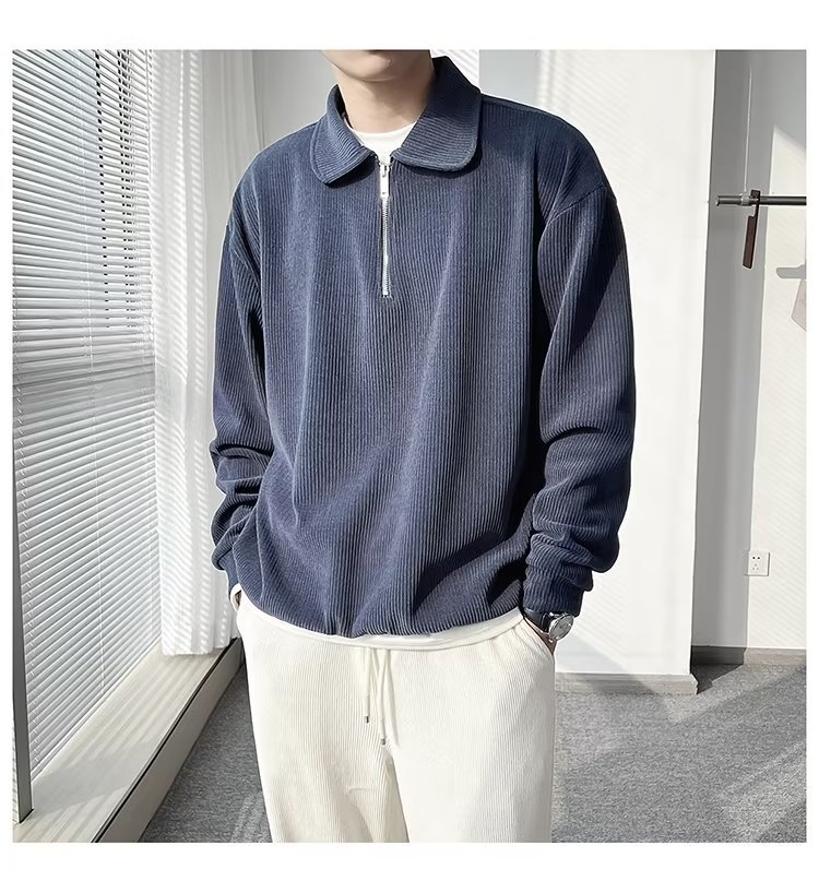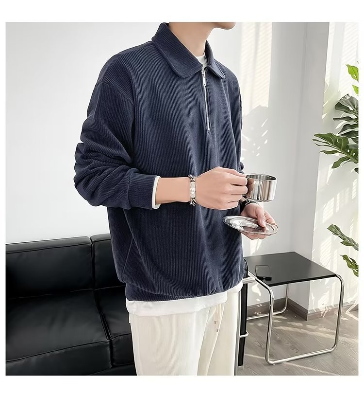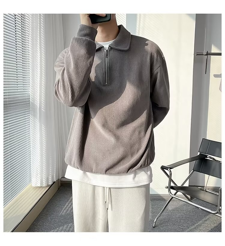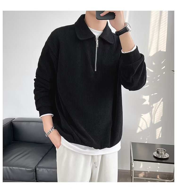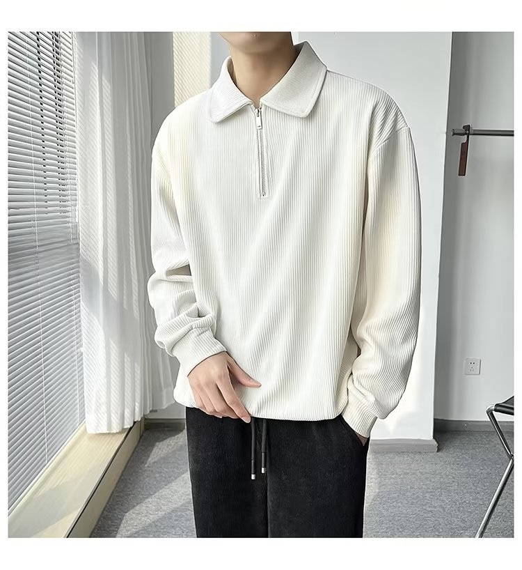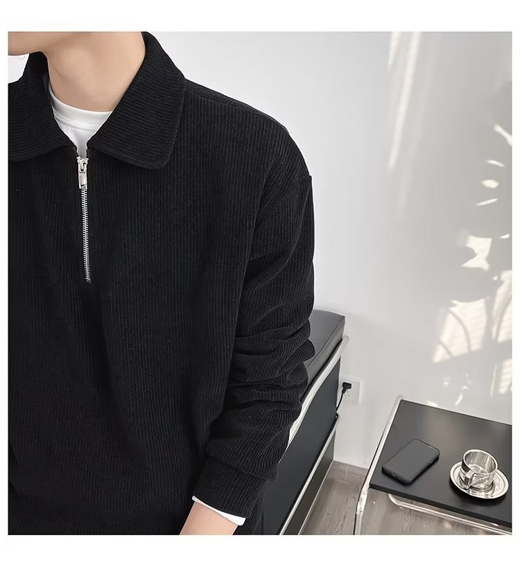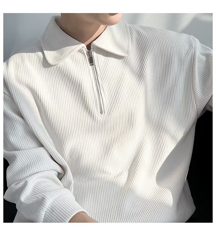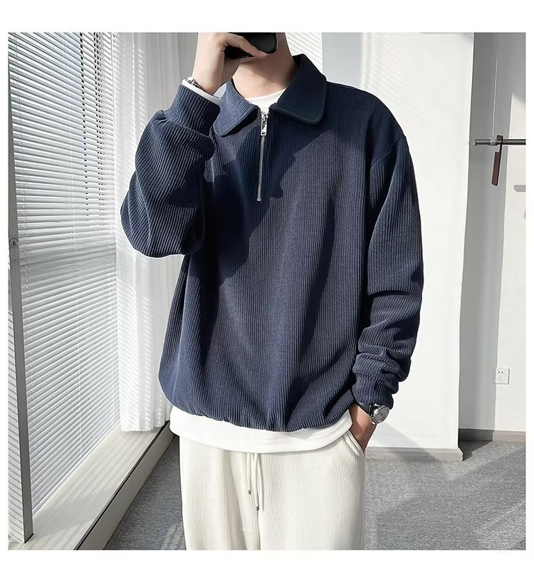 Otoño nuevo estilo semi-cremallera polo para hombre retro suelto diseño casual sentido de nicho top suéter de color sólido