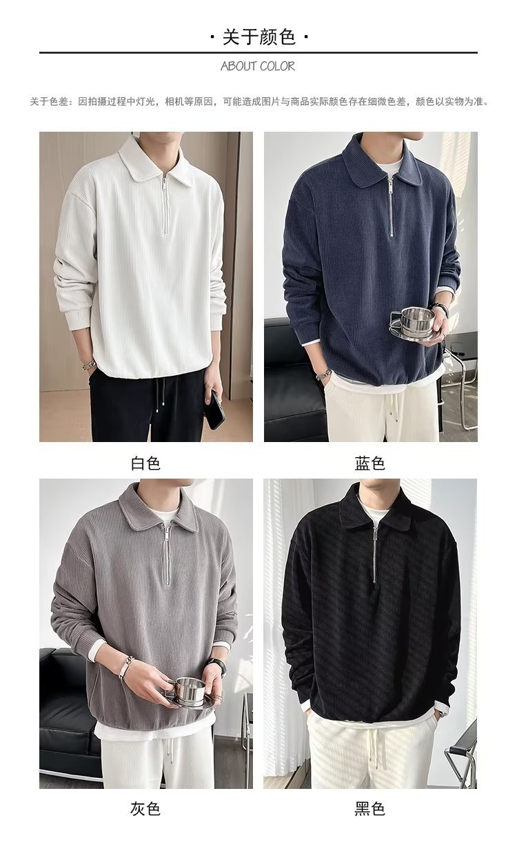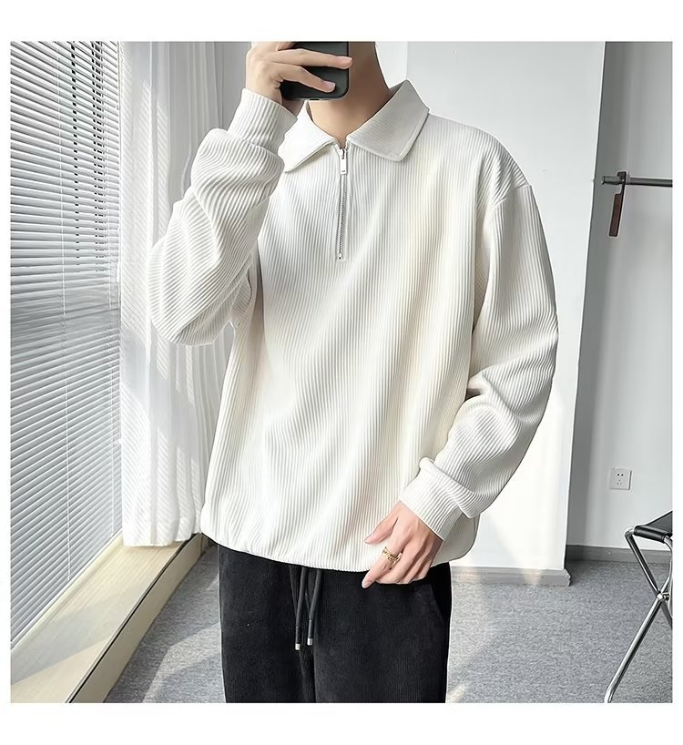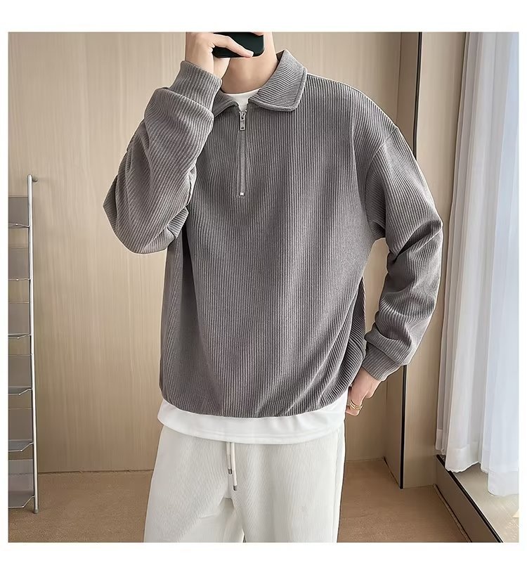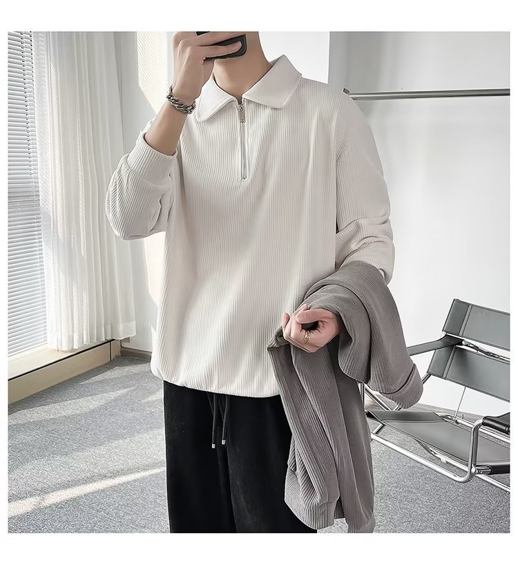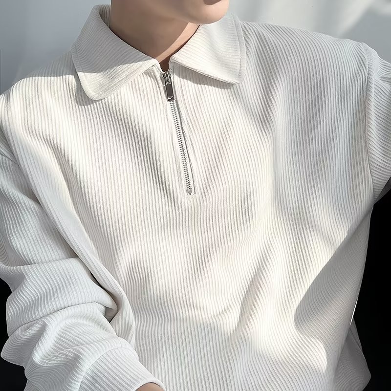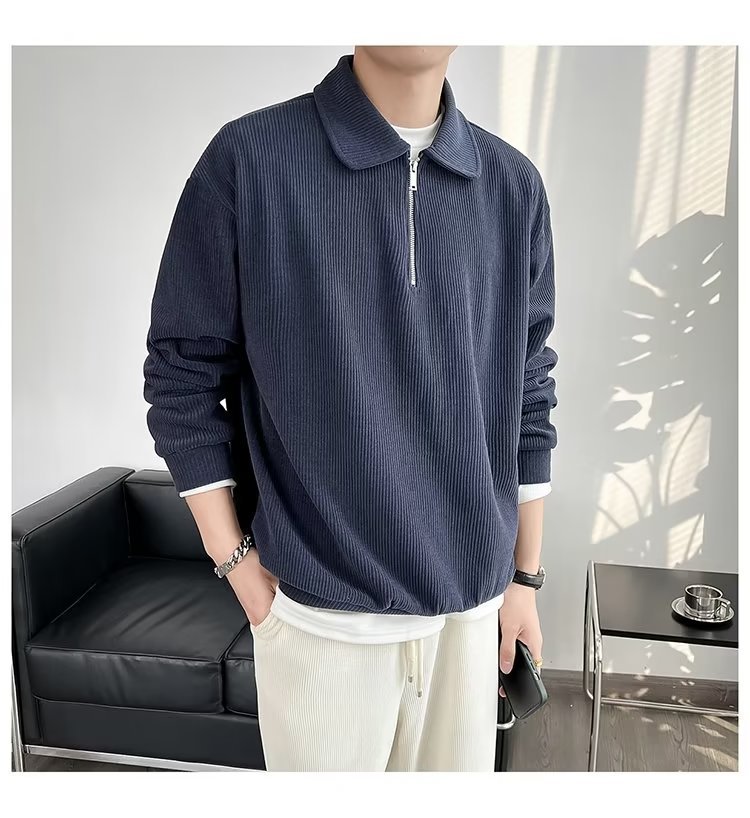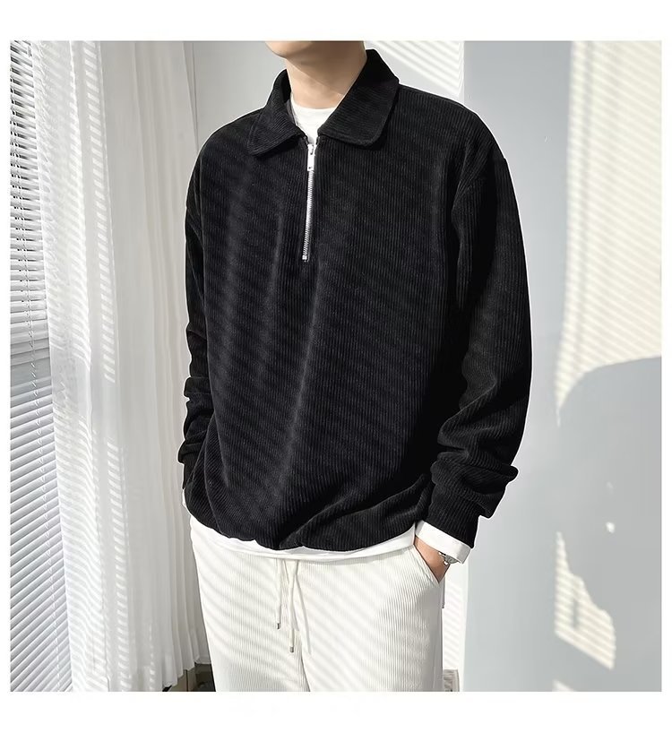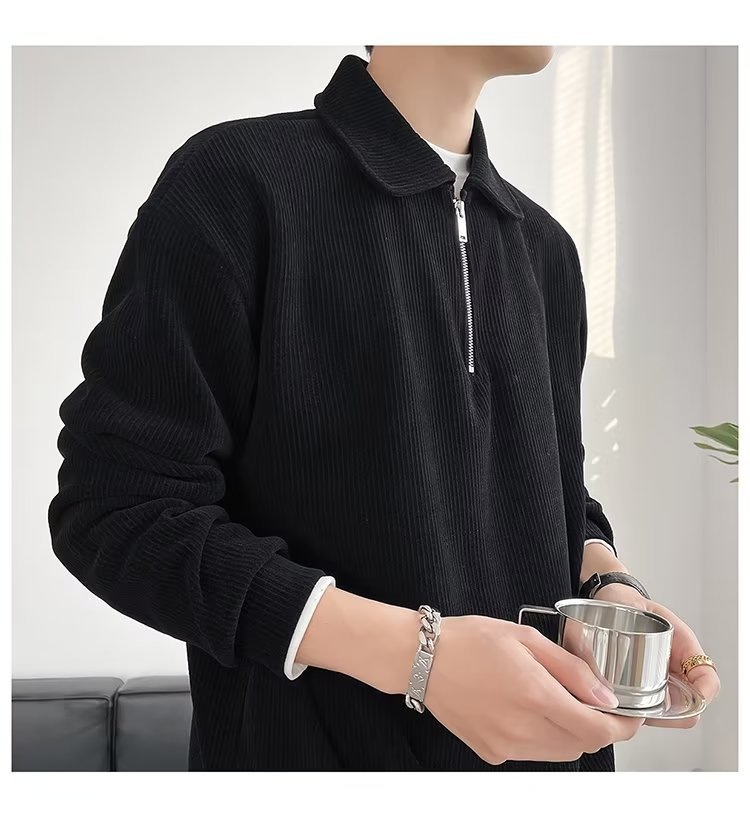 Otoño nuevo estilo semi-cremallera polo para hombre retro suelto diseño casual sentido de nicho top suéter de color sólido
