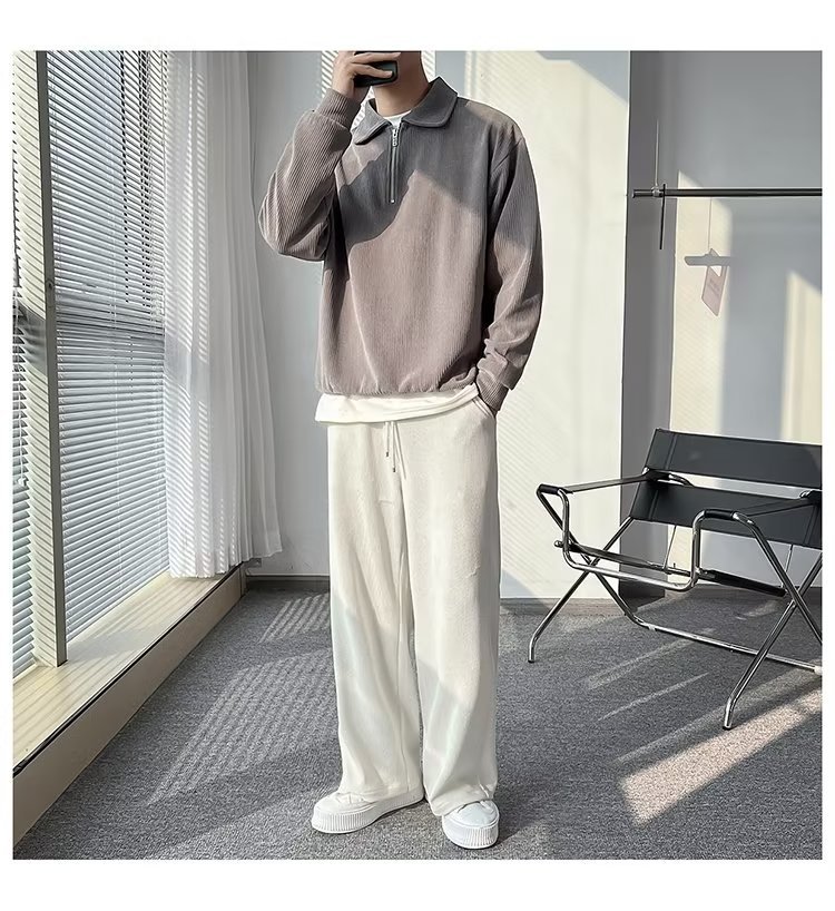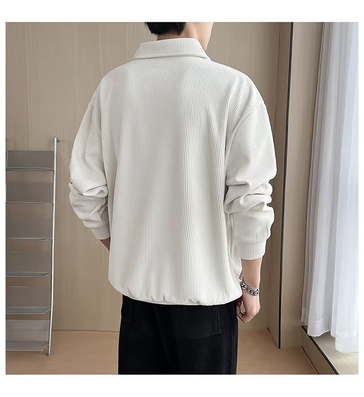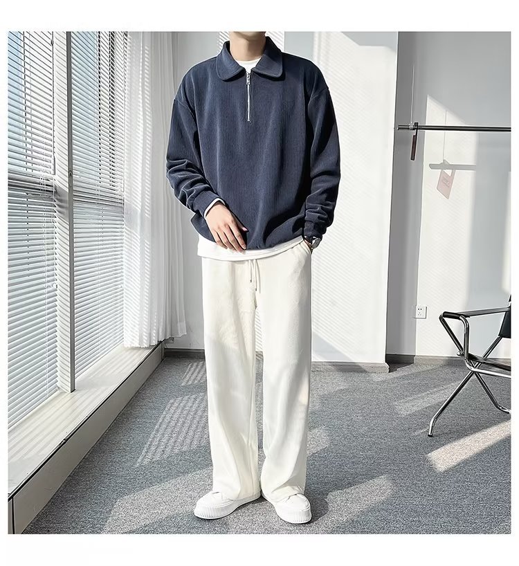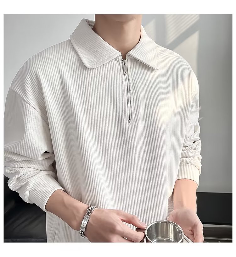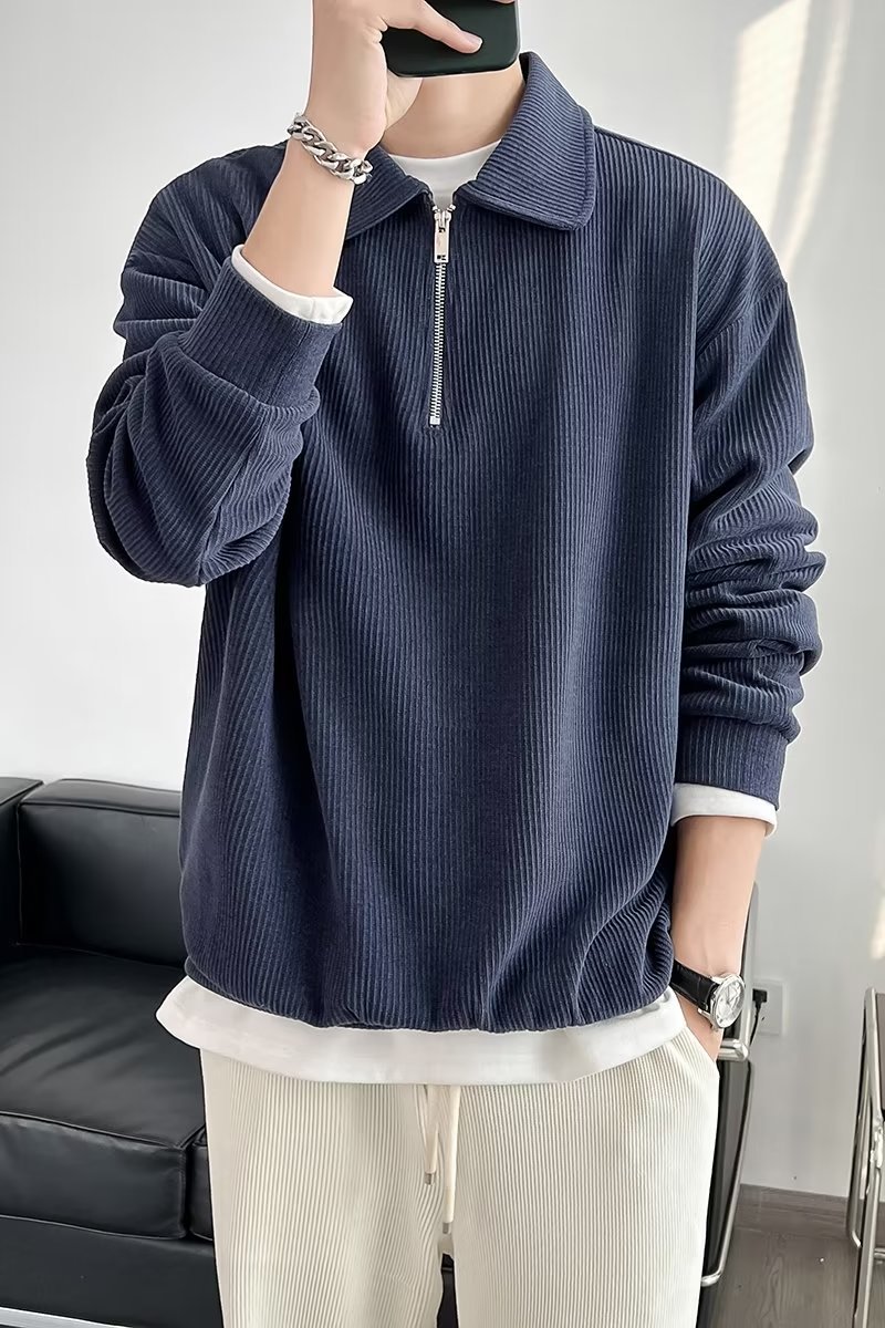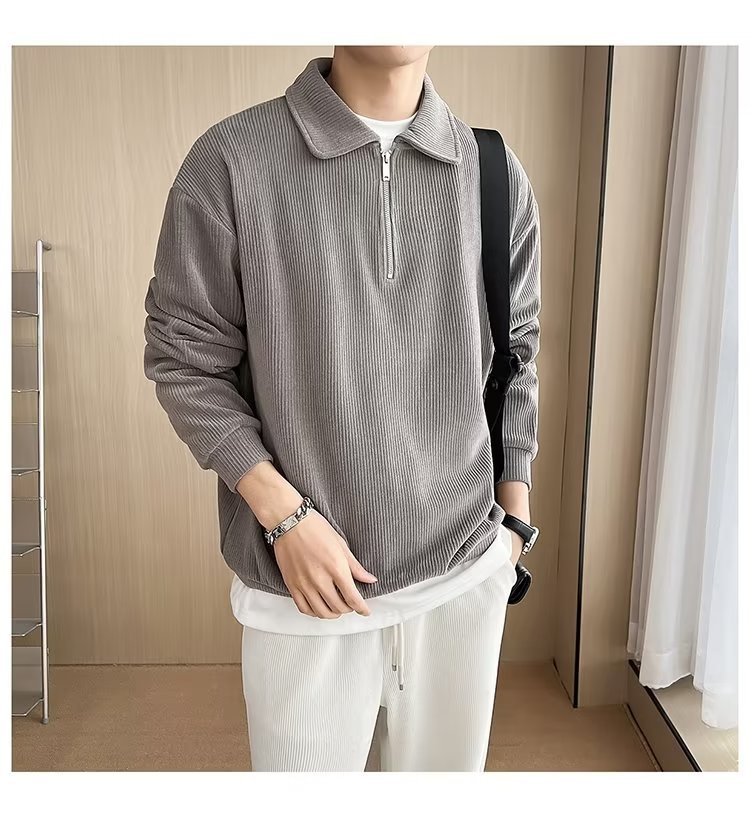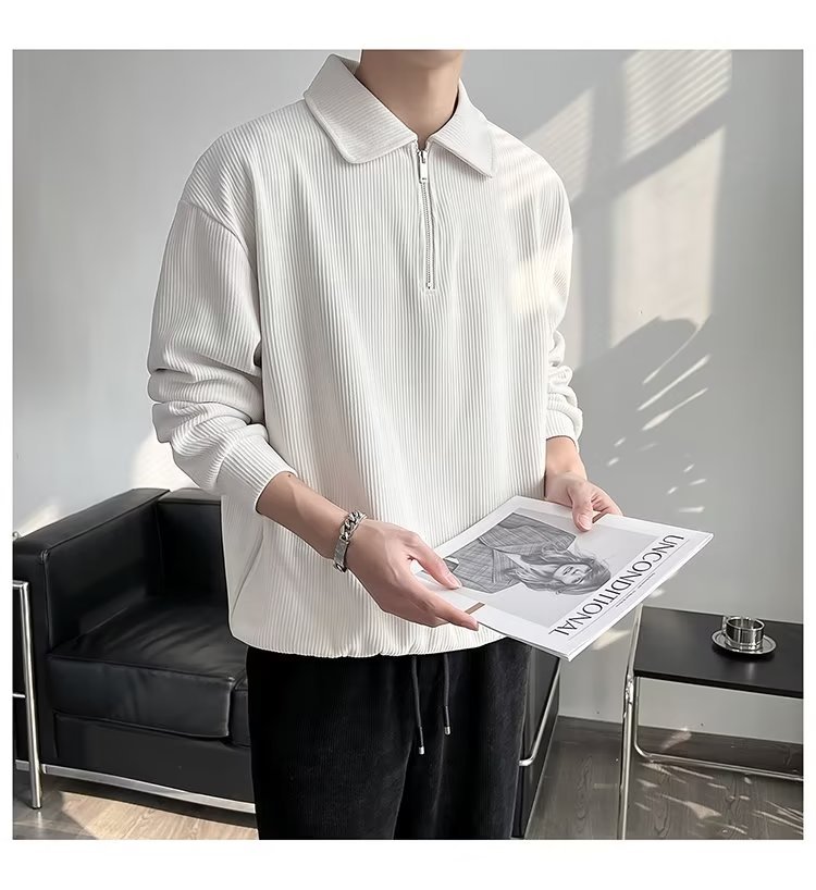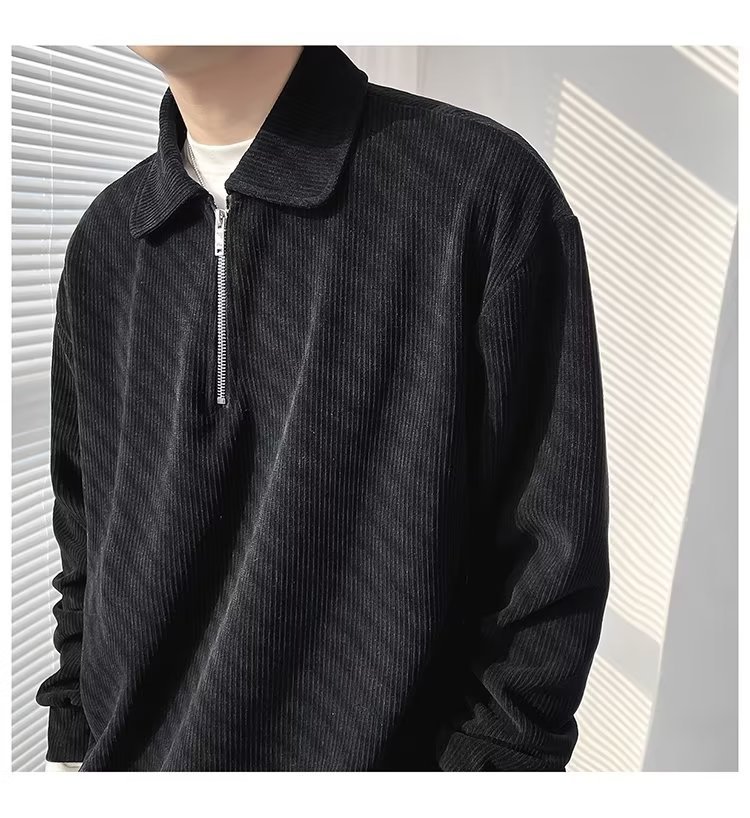 Otoño nuevo estilo semi-cremallera polo para hombre retro suelto diseño casual sentido de nicho top suéter de color sólido
