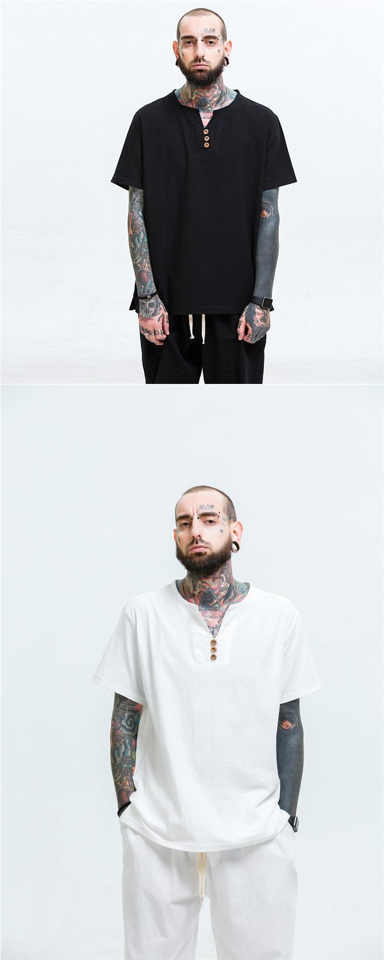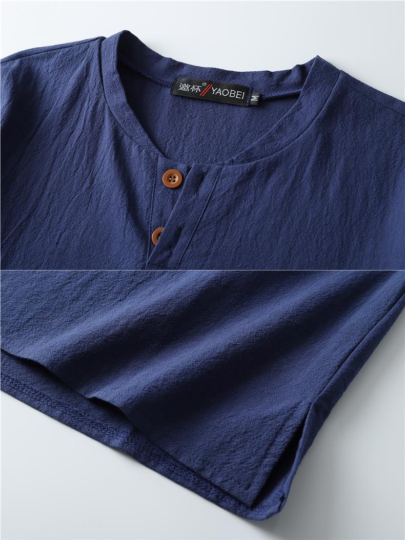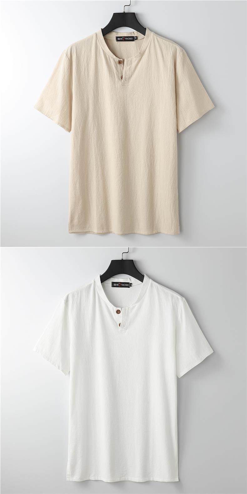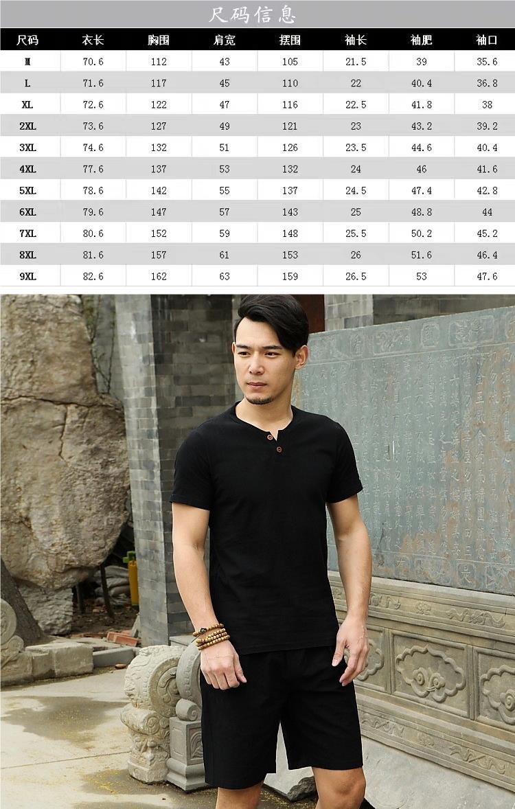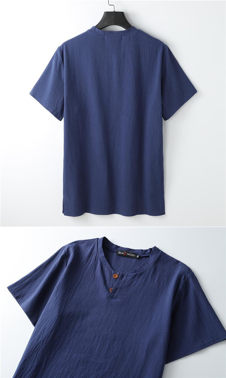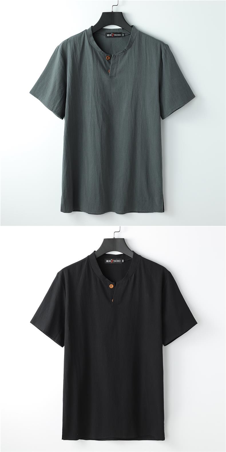 Camiseta de manga corta con cuello alto y tamaño extra gordo para hombre, estilo chino de verano, algodón y lino con aberturas, camiseta de media manga suelta y gorda