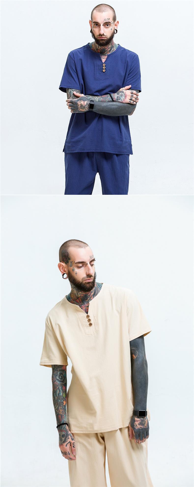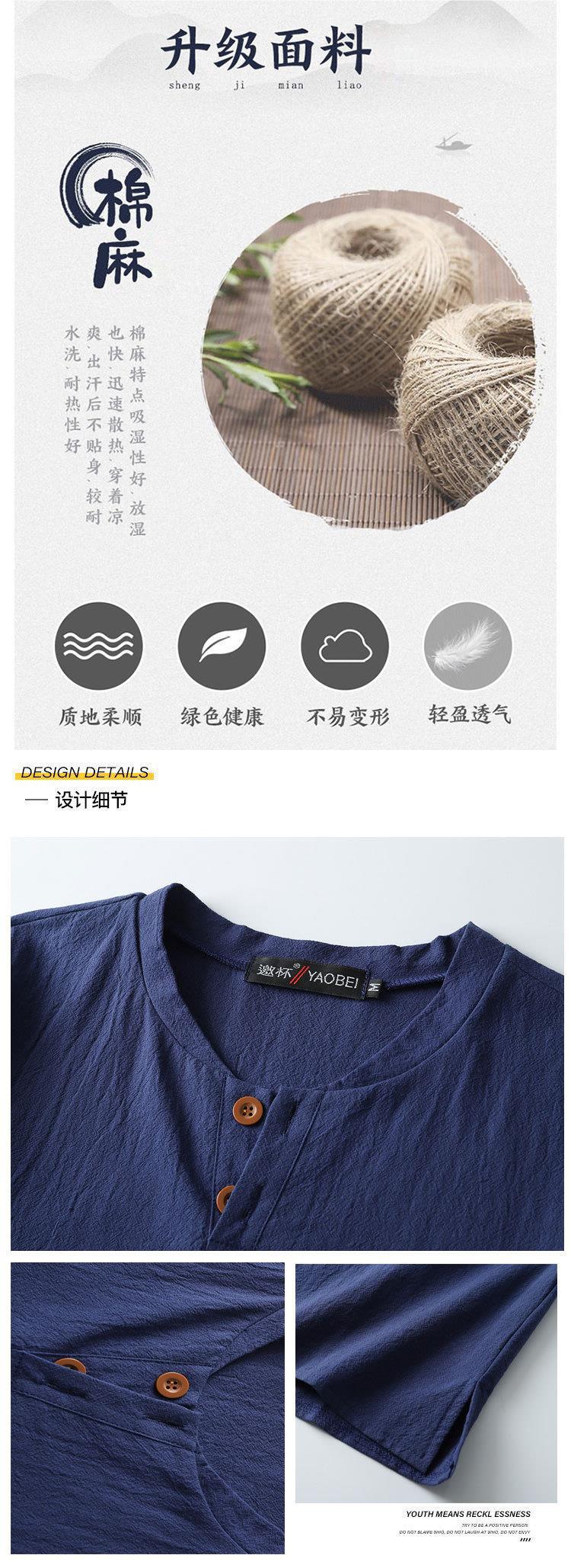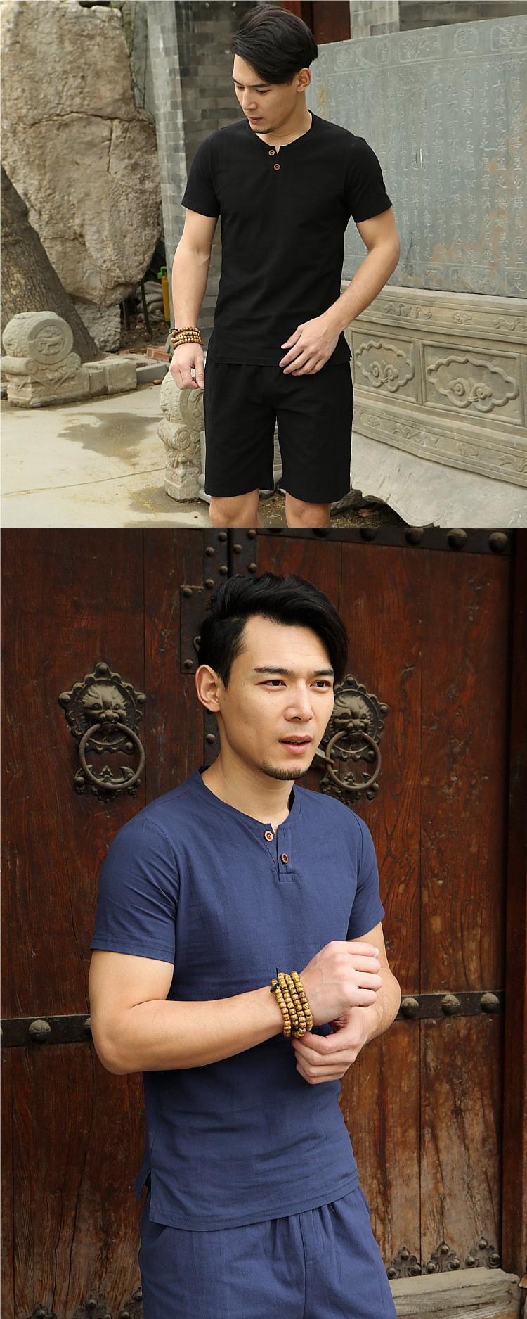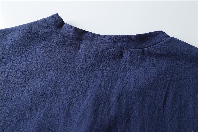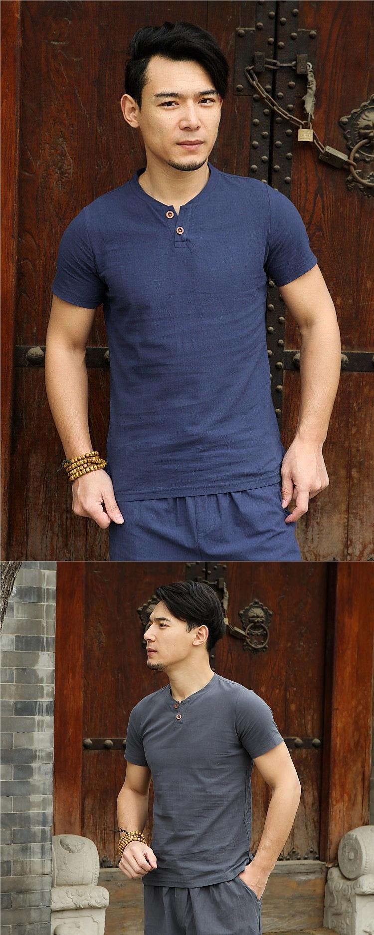 Camiseta de manga corta con cuello alto y tamaño extra gordo para hombre, estilo chino de verano, algodón y lino con aberturas, camiseta de media manga suelta y gorda