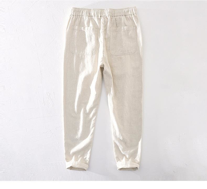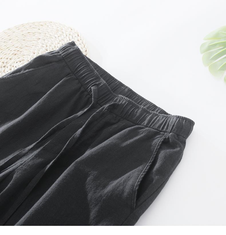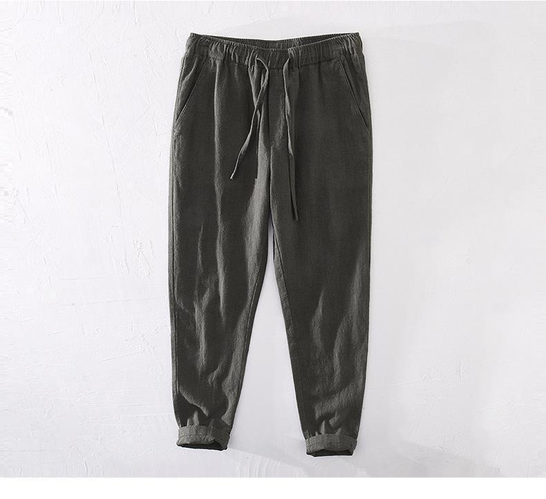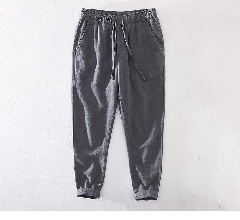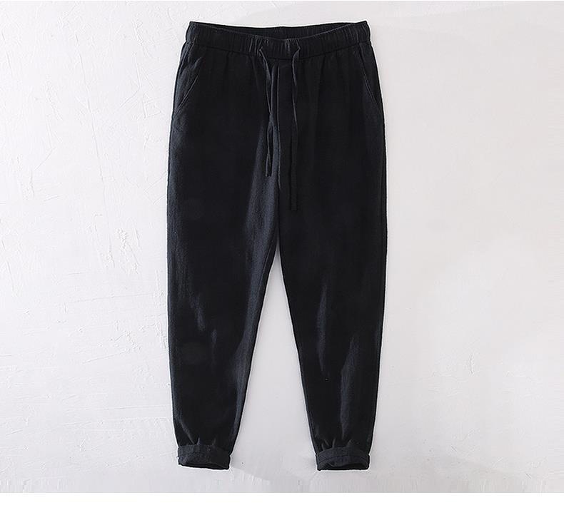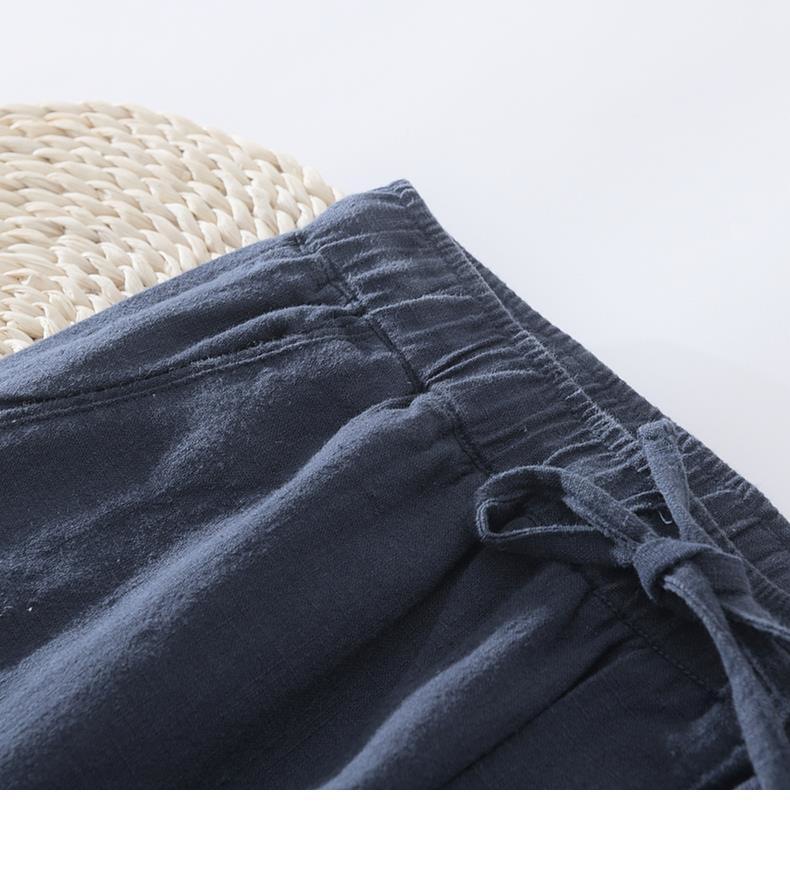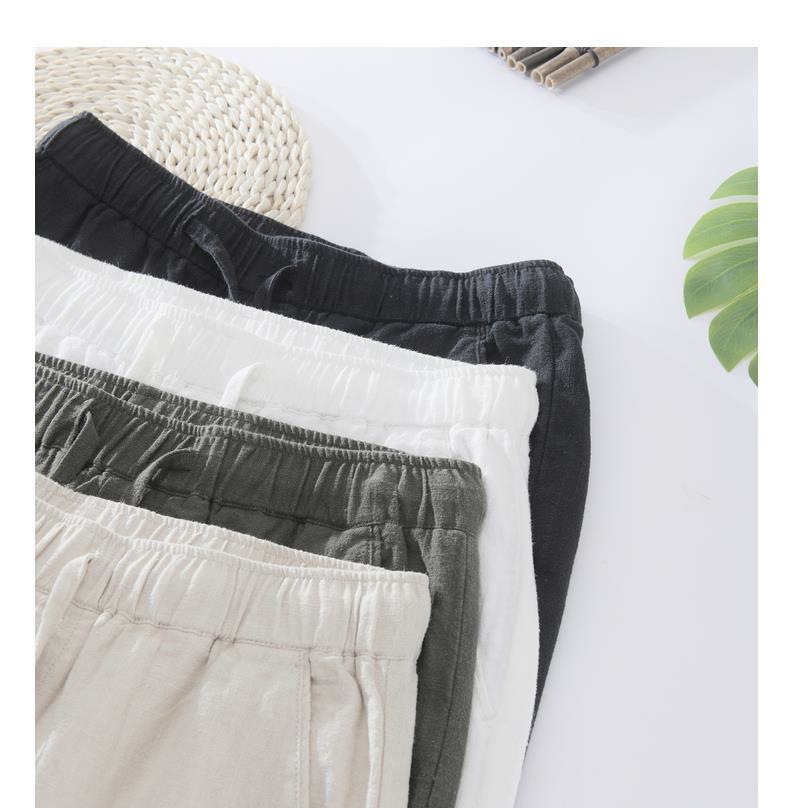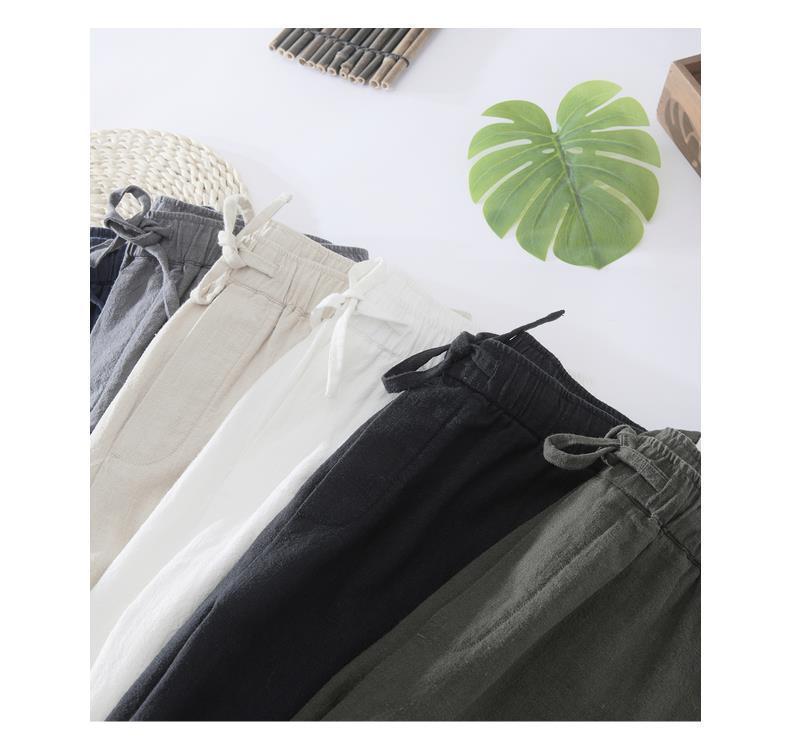 Pantalones casuales de lino rectos de algodón y lino con cintura elástica retro extremadamente cáñamo pantalones de lino sueltos de todo fósforo con cordón para hombres