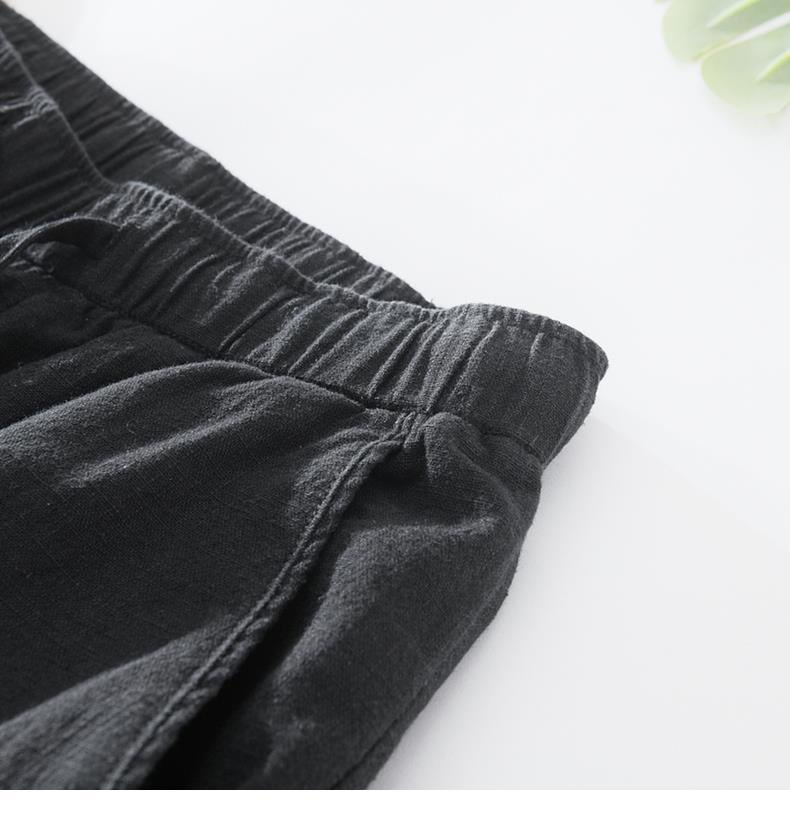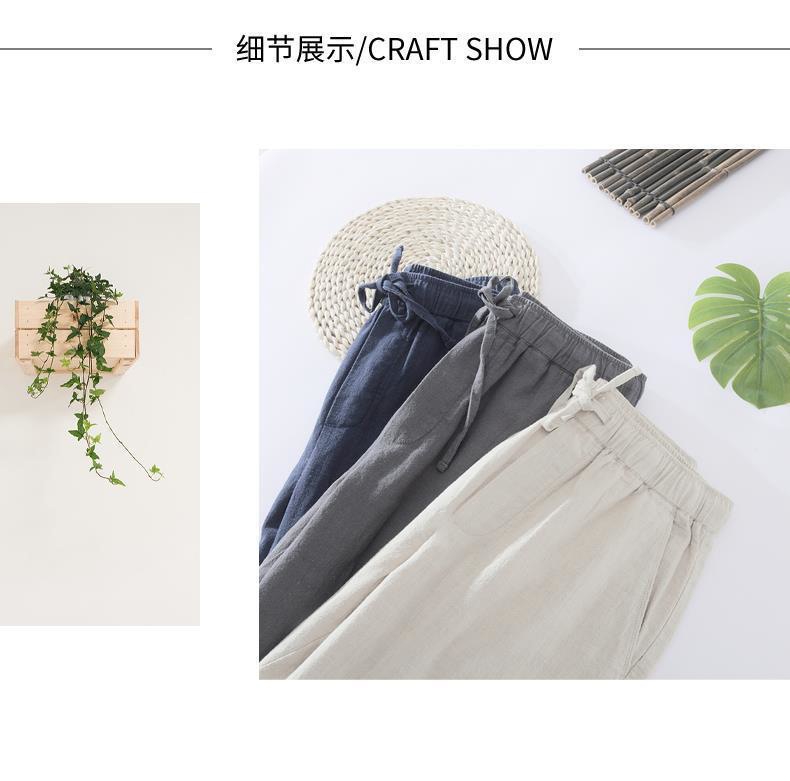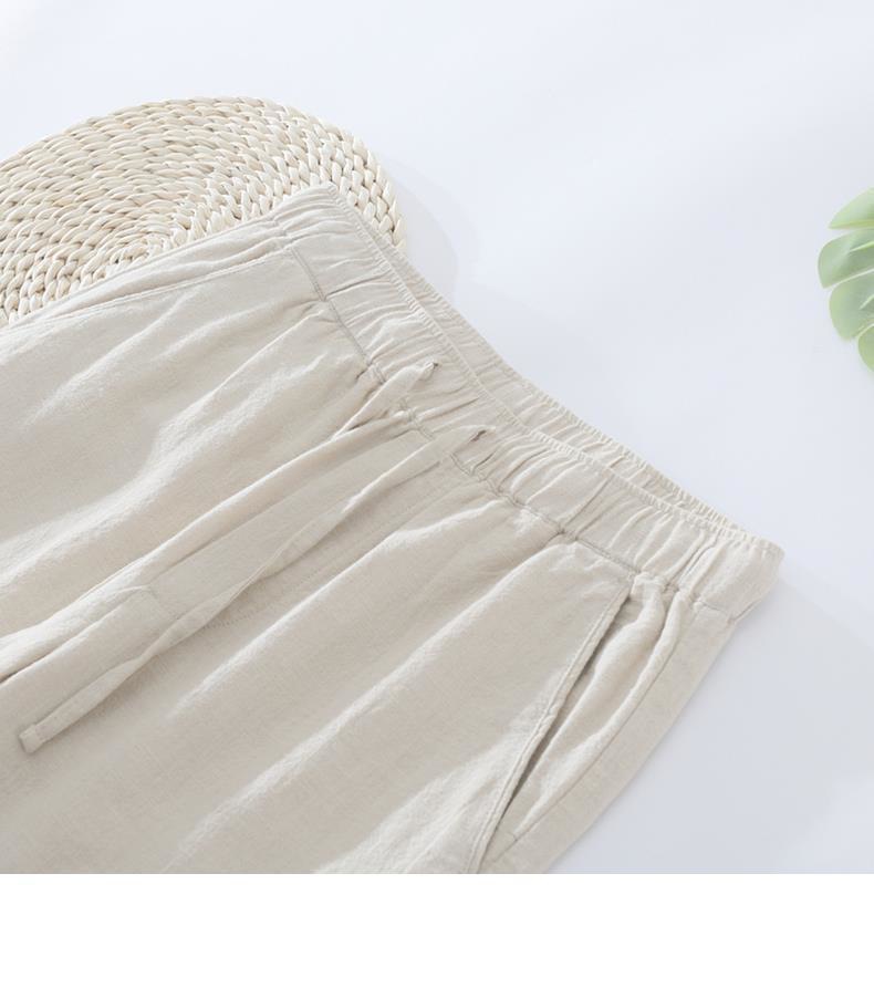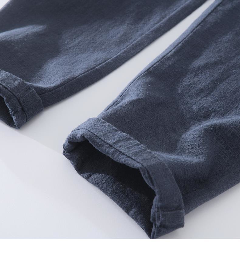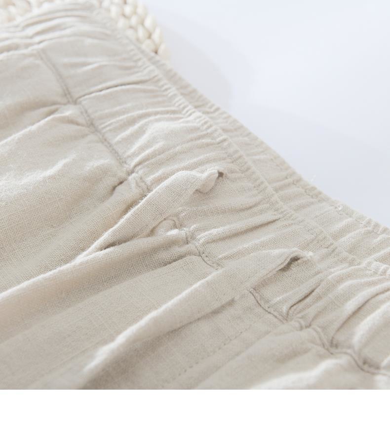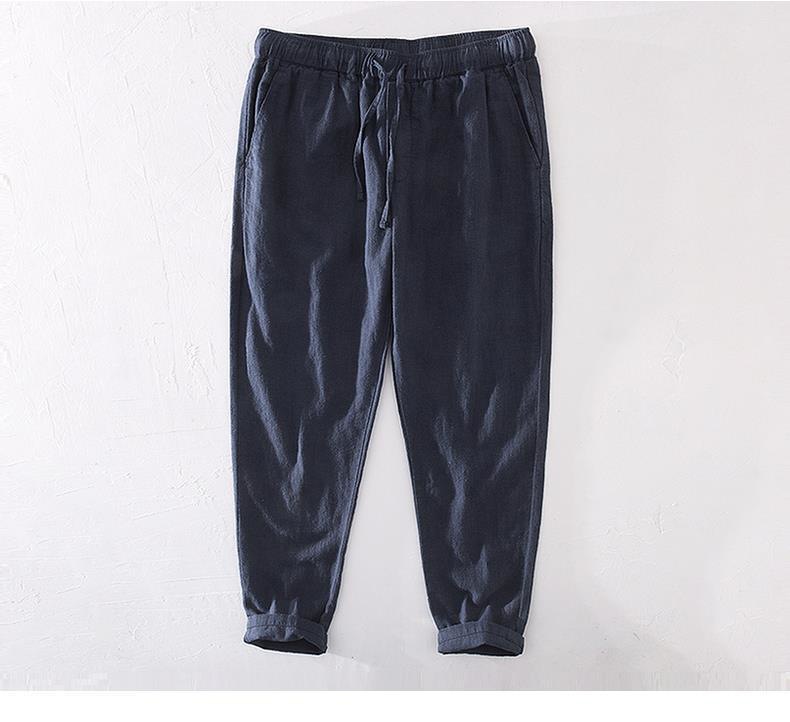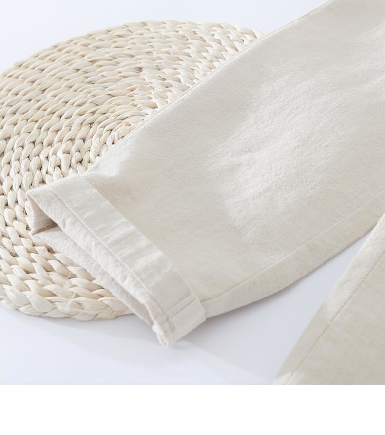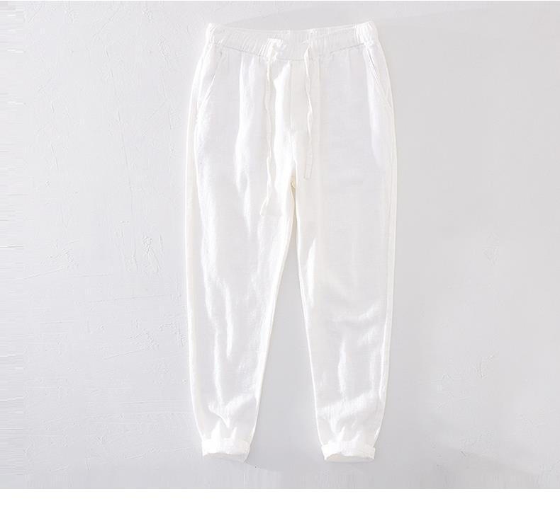 Pantalones casuales de lino rectos de algodón y lino con cintura elástica retro extremadamente cáñamo pantalones de lino sueltos de todo fósforo con cordón para hombres