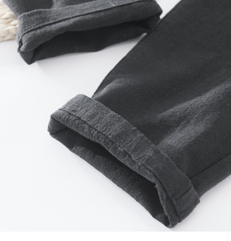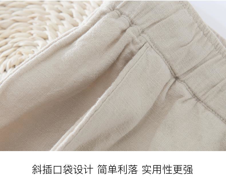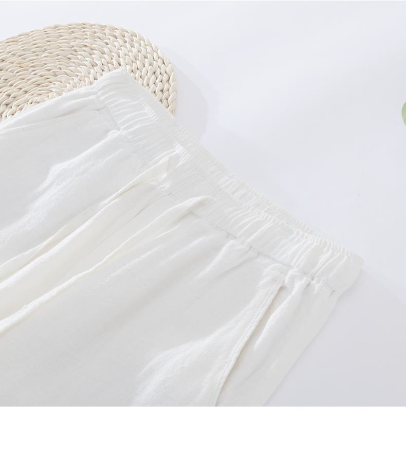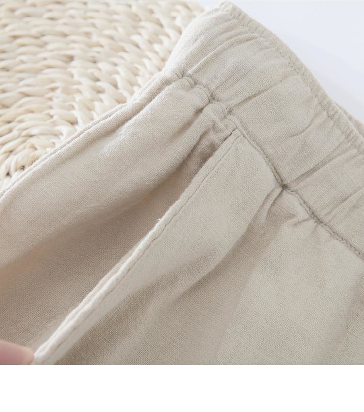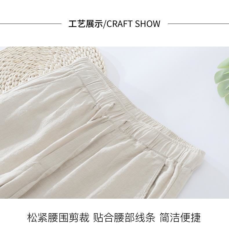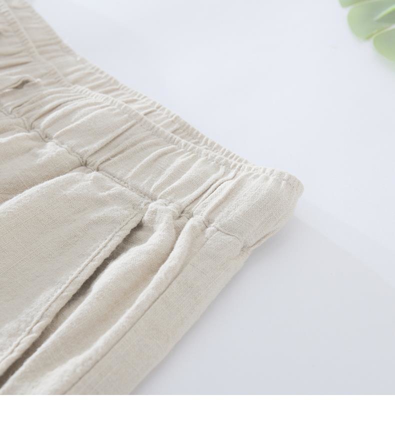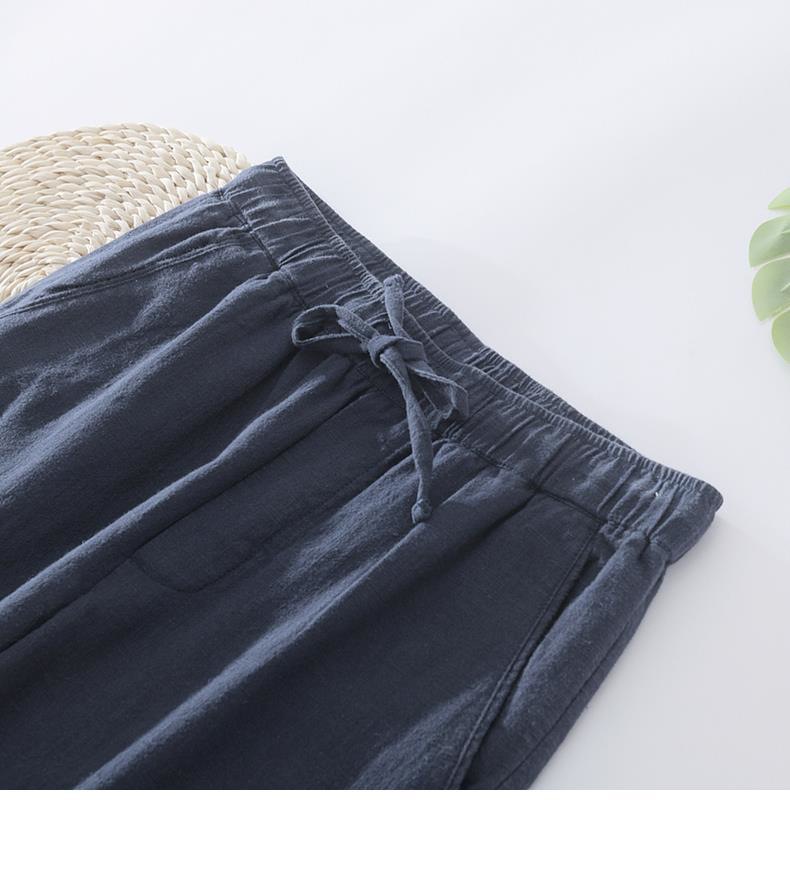 Pantalones casuales de lino rectos de algodón y lino con cintura elástica retro extremadamente cáñamo pantalones de lino sueltos de todo fósforo con cordón para hombres