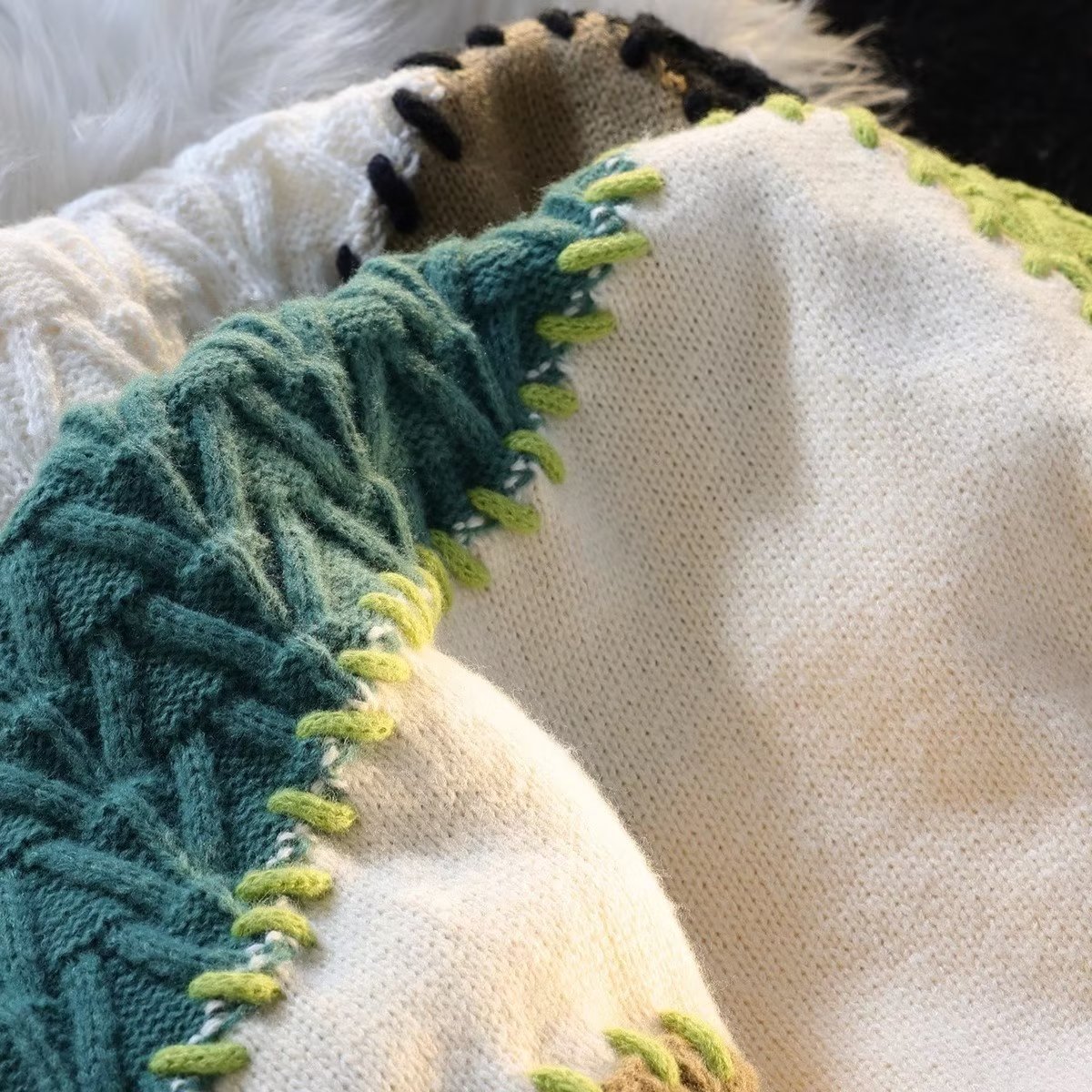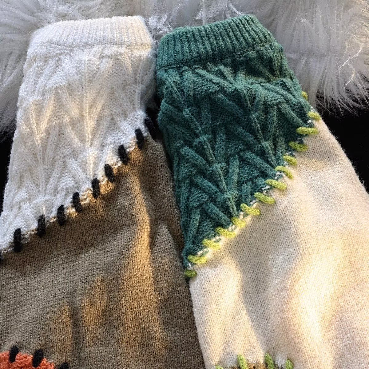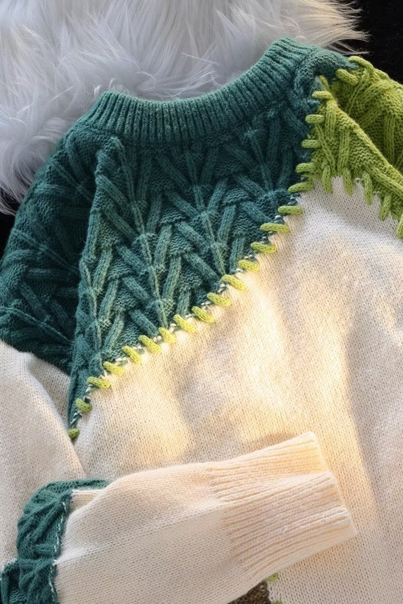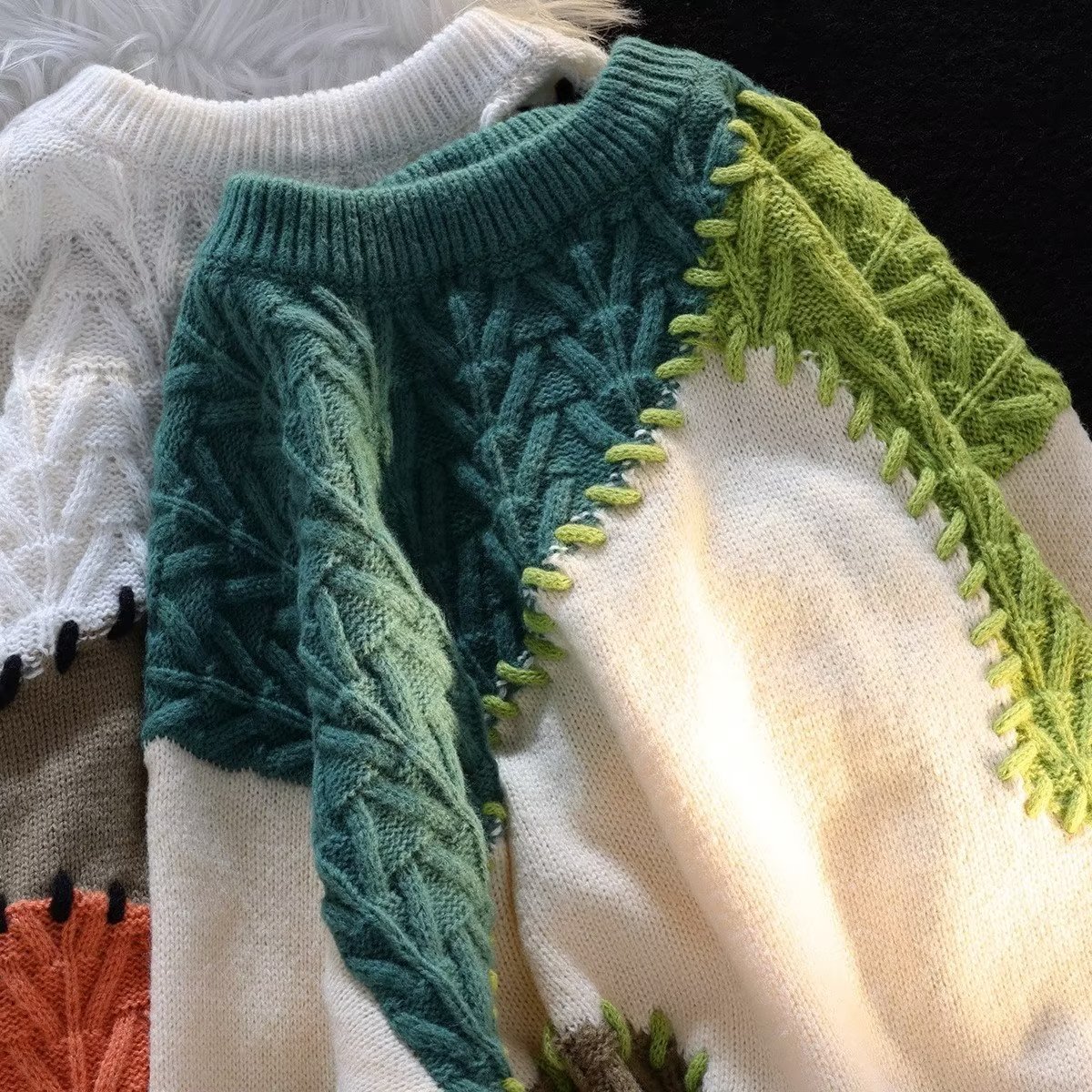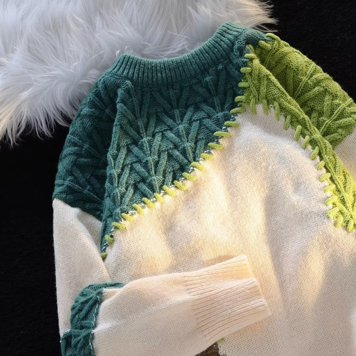 Suéter de contraste de viento perezoso casual retro americano para hombres y mujeres nuevo suéter de punto ceroso suave