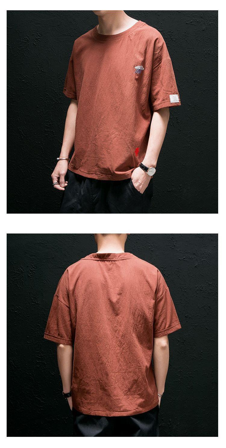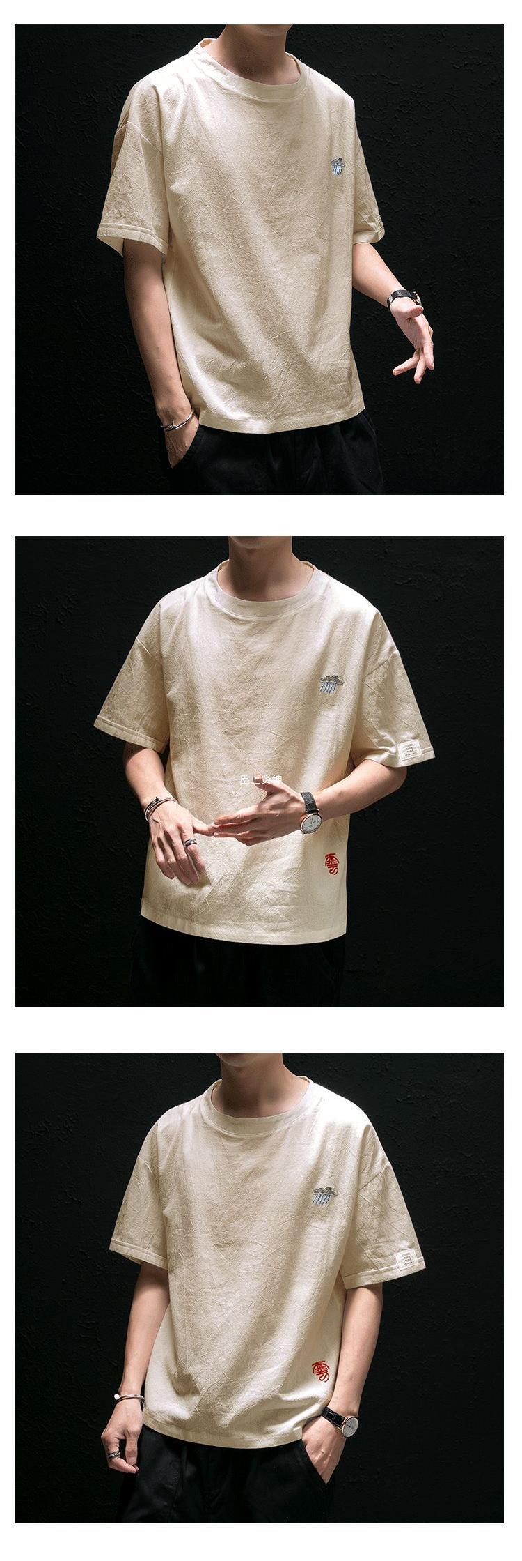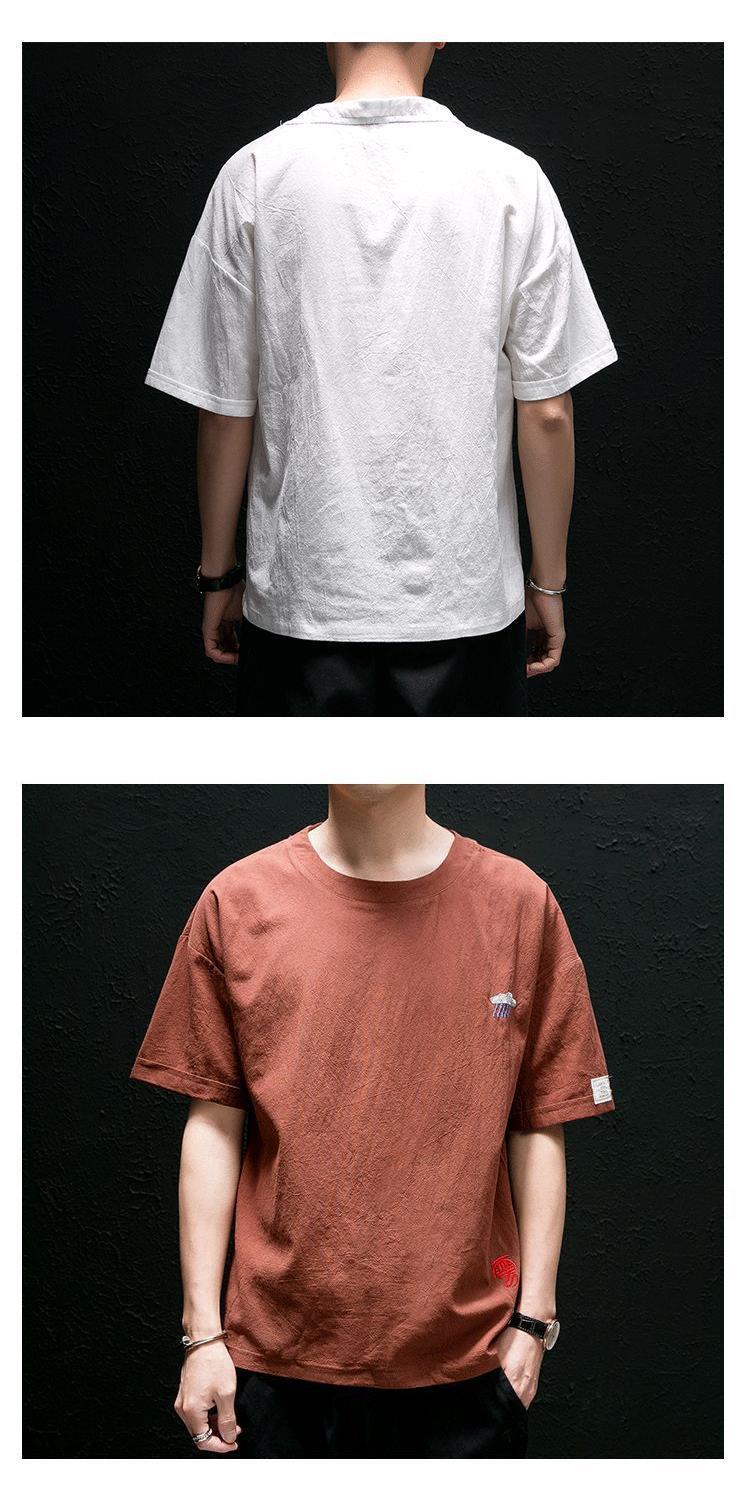 Verano estilo chino color sólido lino de manga corta ropa de verano para hombres algodón lino hielo seda camiseta ropa de hombre ropa japonesa suelta media manga