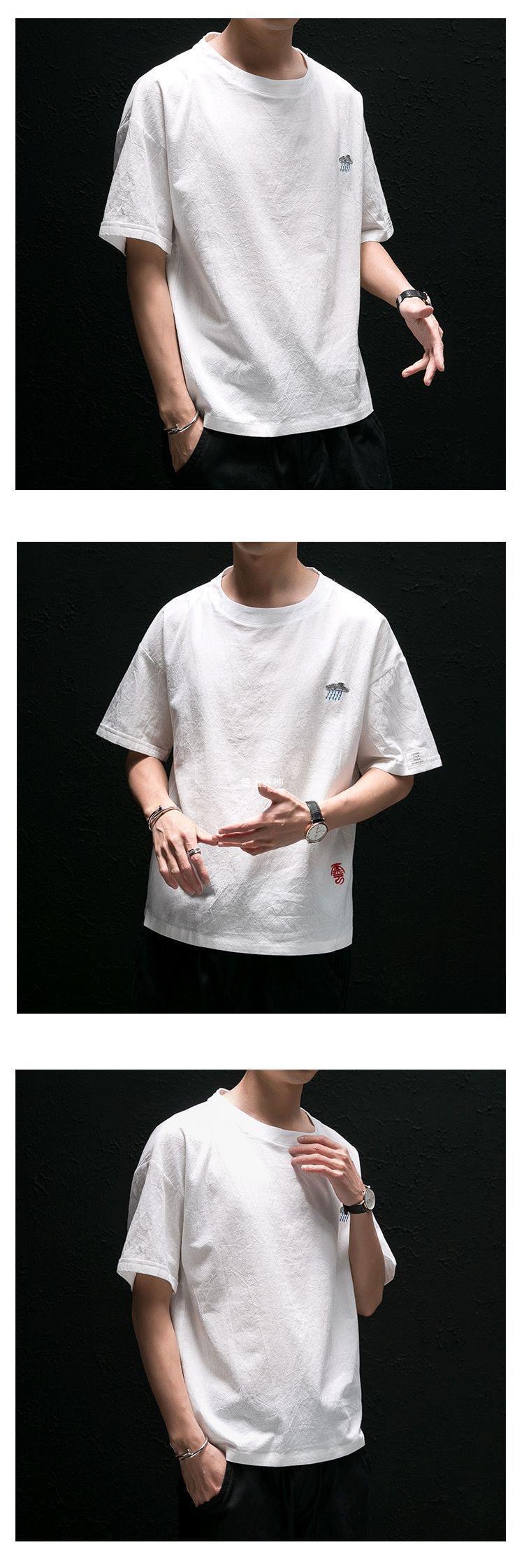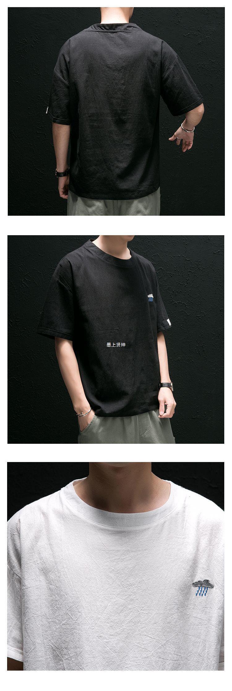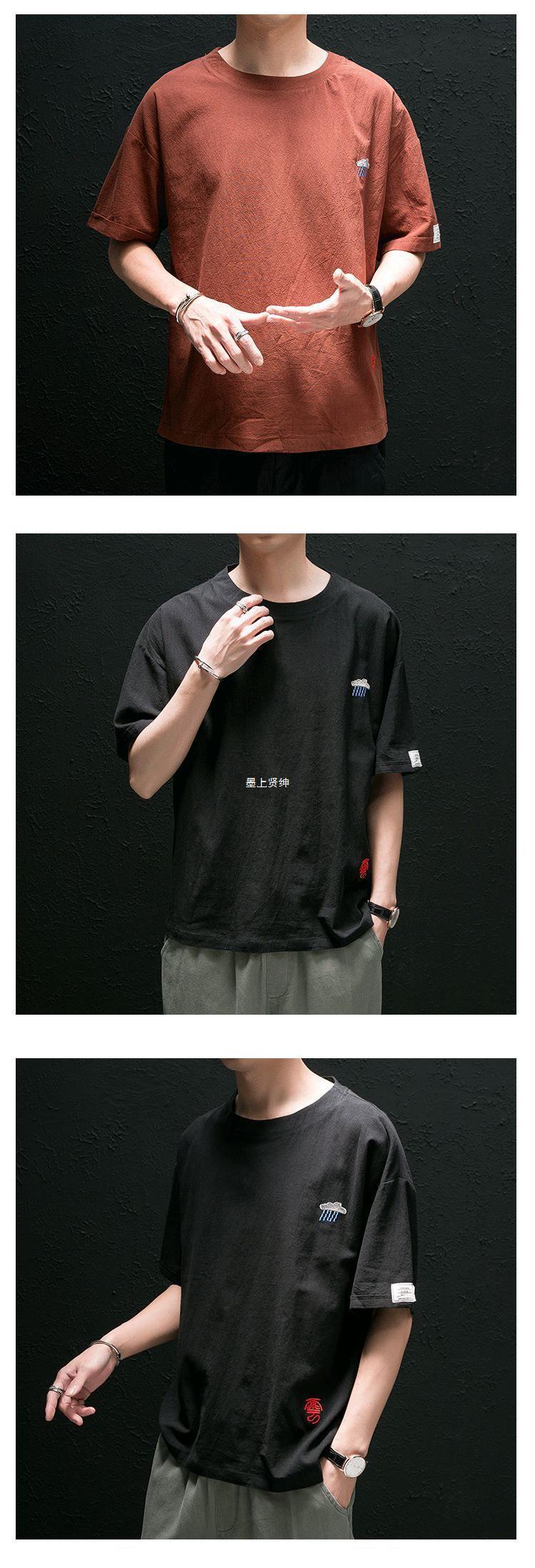 Verano estilo chino color sólido lino de manga corta ropa de verano para hombres algodón lino hielo seda camiseta ropa de hombre ropa japonesa suelta media manga