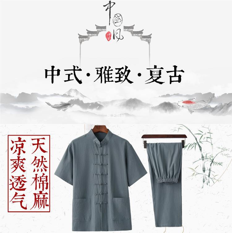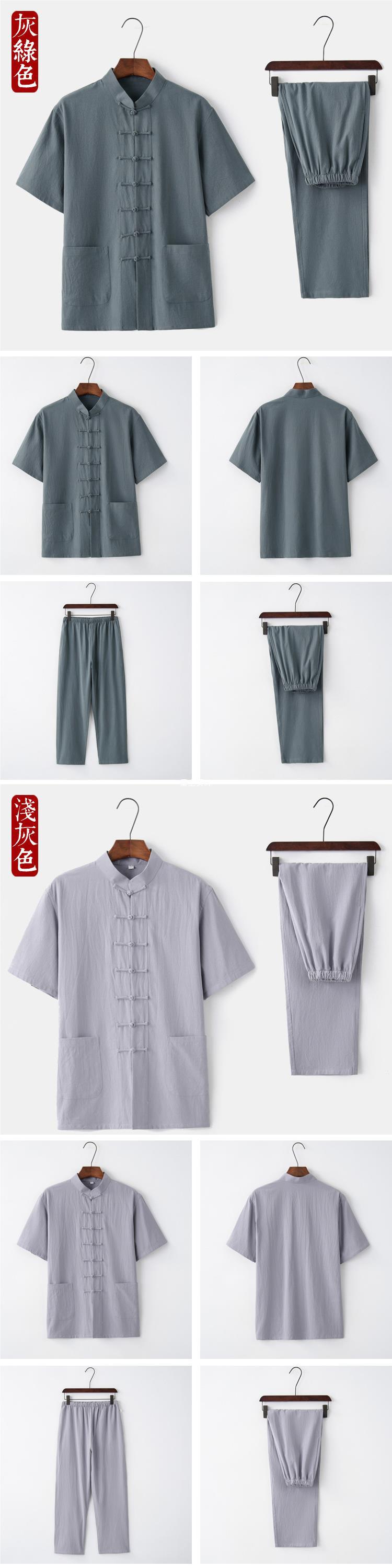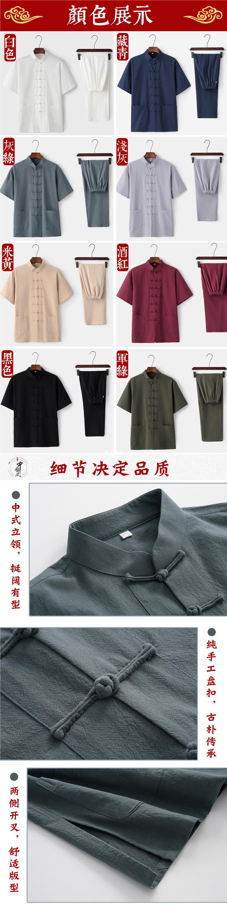 2019 nuevo verano algodón y lino traje Tang traje de manga corta ropa de Tai Chi para hombres de mediana edad y ancianos ropa Zen ropa de té ropa Ju Shi