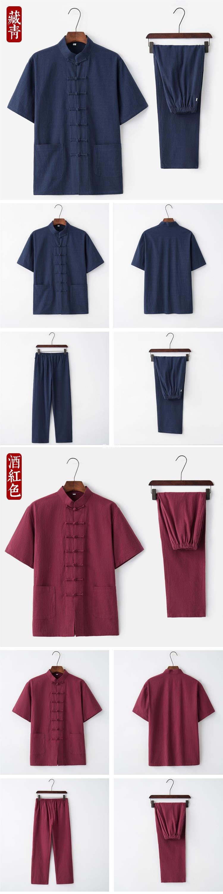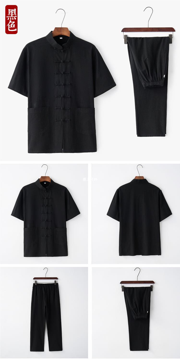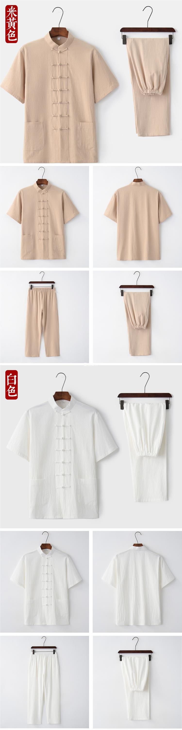 2019 nuevo verano algodón y lino traje Tang traje de manga corta ropa de Tai Chi para hombres de mediana edad y ancianos ropa Zen ropa de té ropa Ju Shi
