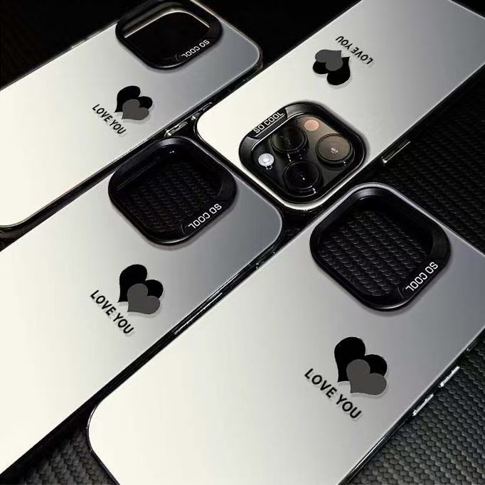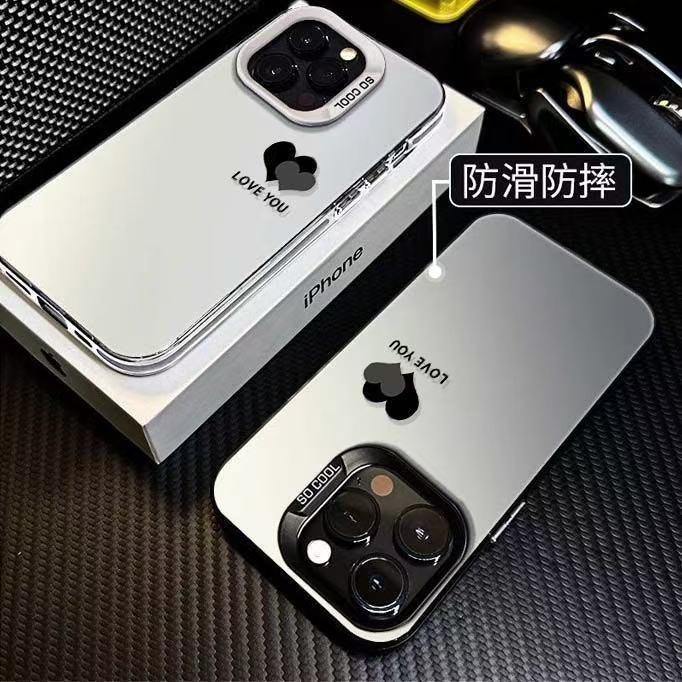 El nuevo color plateado simple doble amor es adecuado para Apple 16promax funda para teléfono móvil iphone15 Europa y América 14/13x