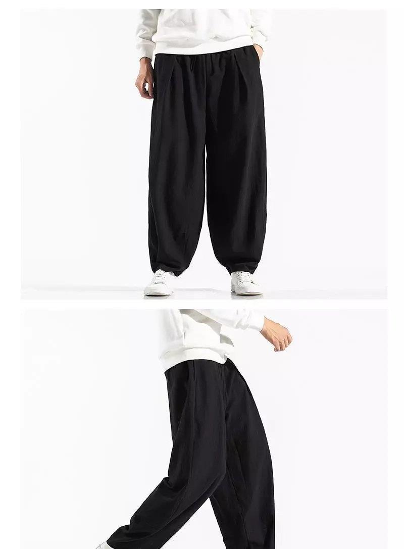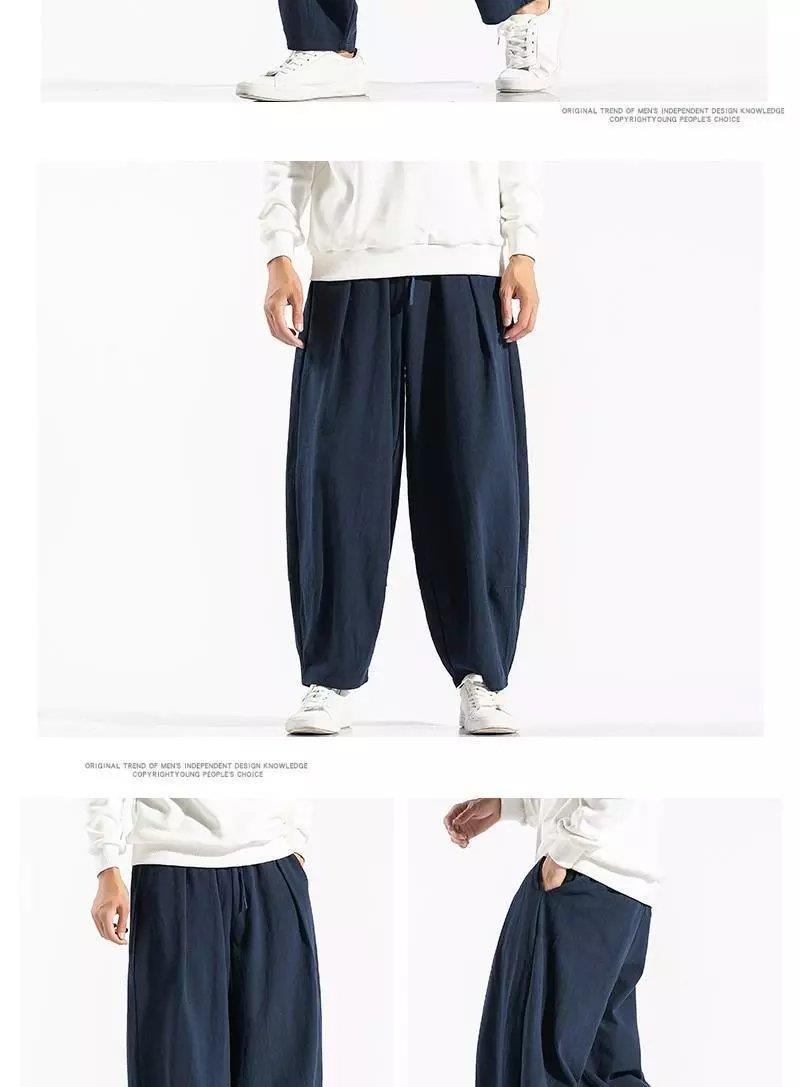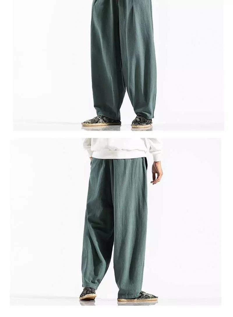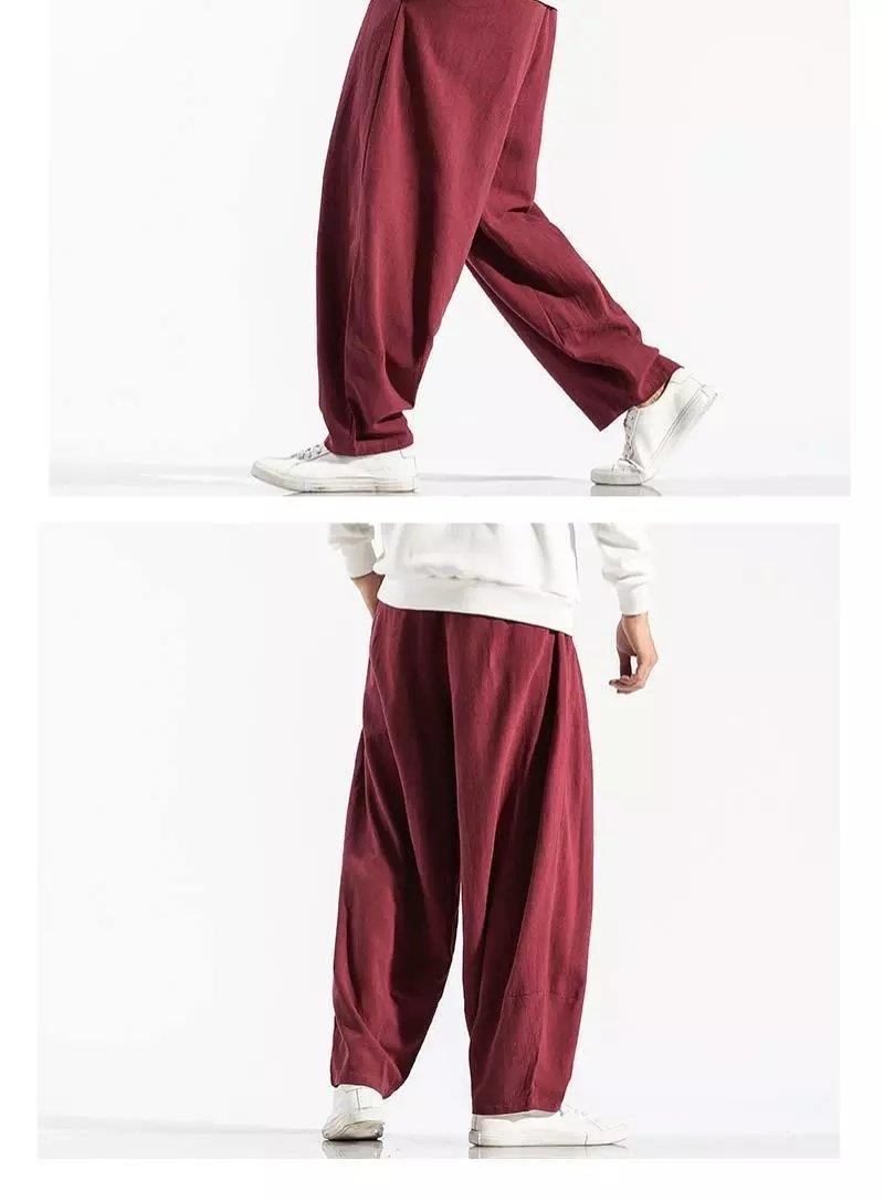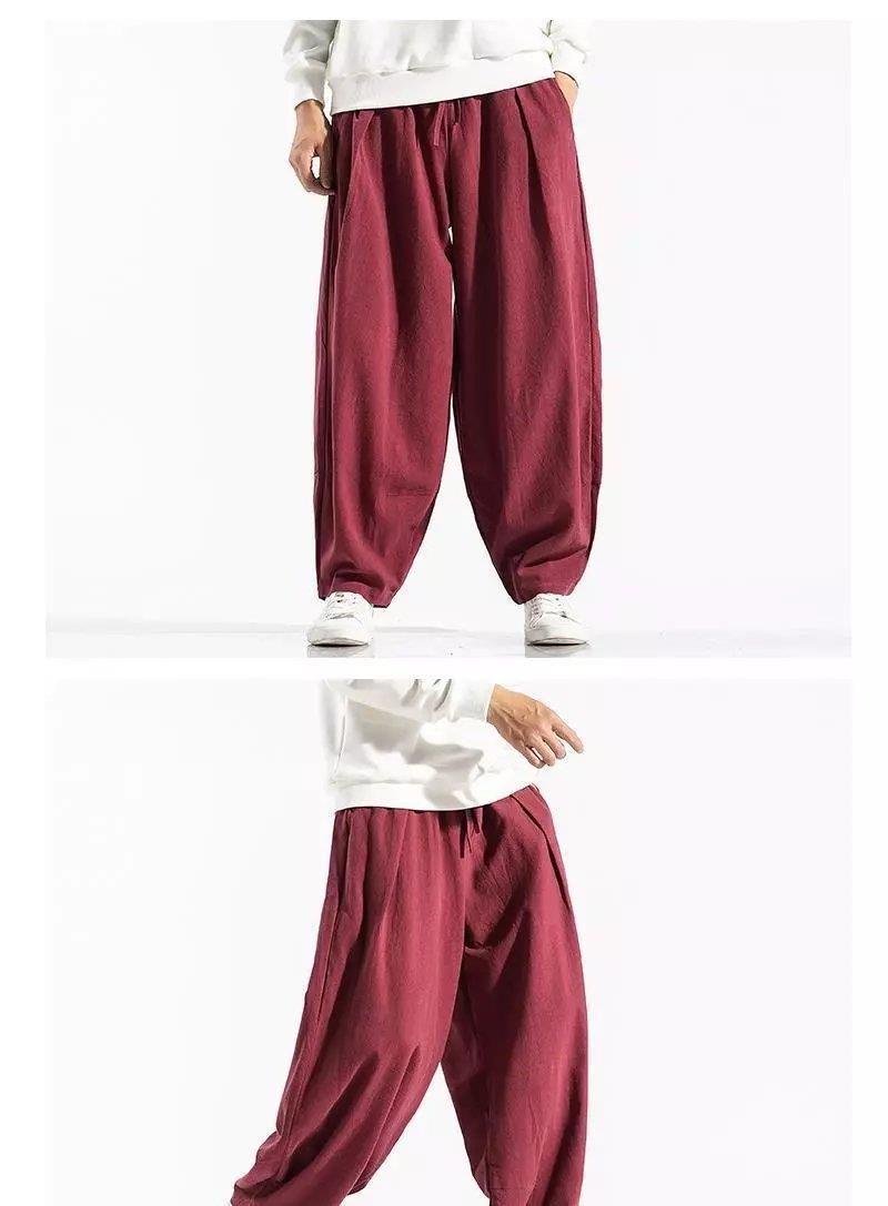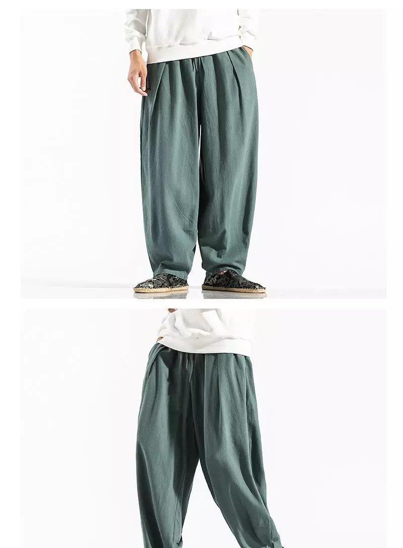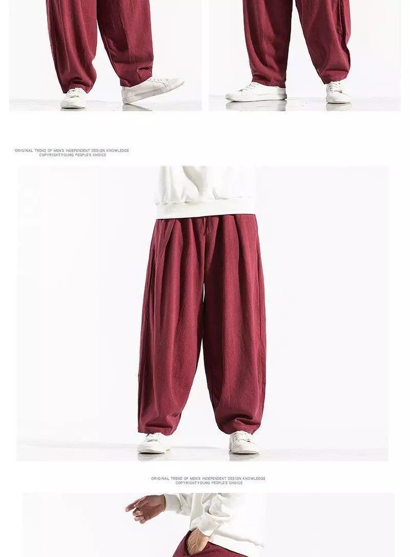 Pantalones sueltos de pantorrilla de estilo chino de primavera y verano, pantalones de meditación, bombachos de algodón y lino, pantalones de monje de Buda de gran tamaño, pantalones anchos para hombres