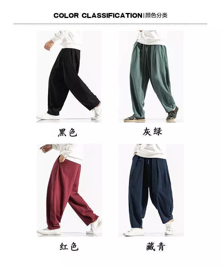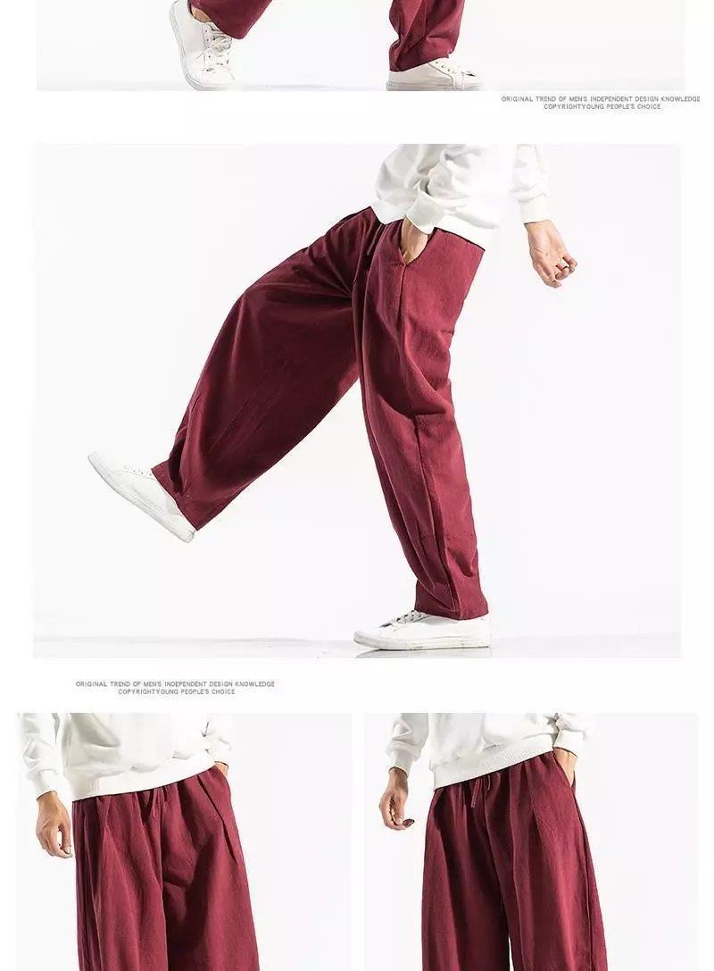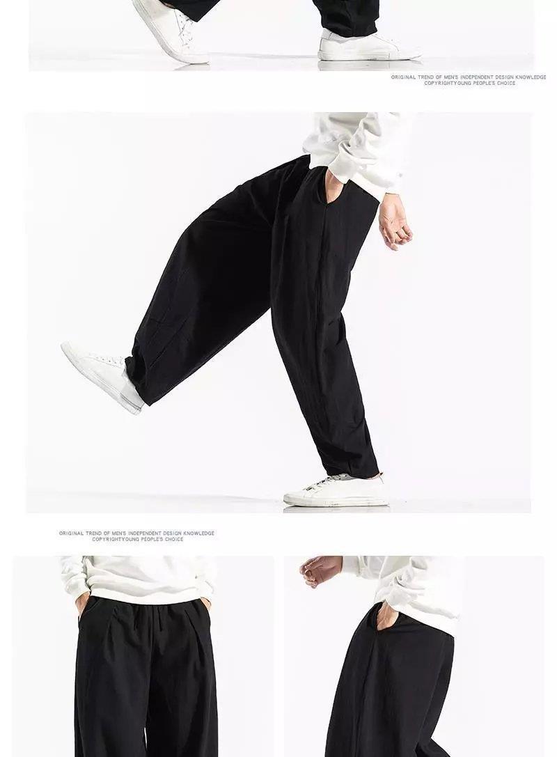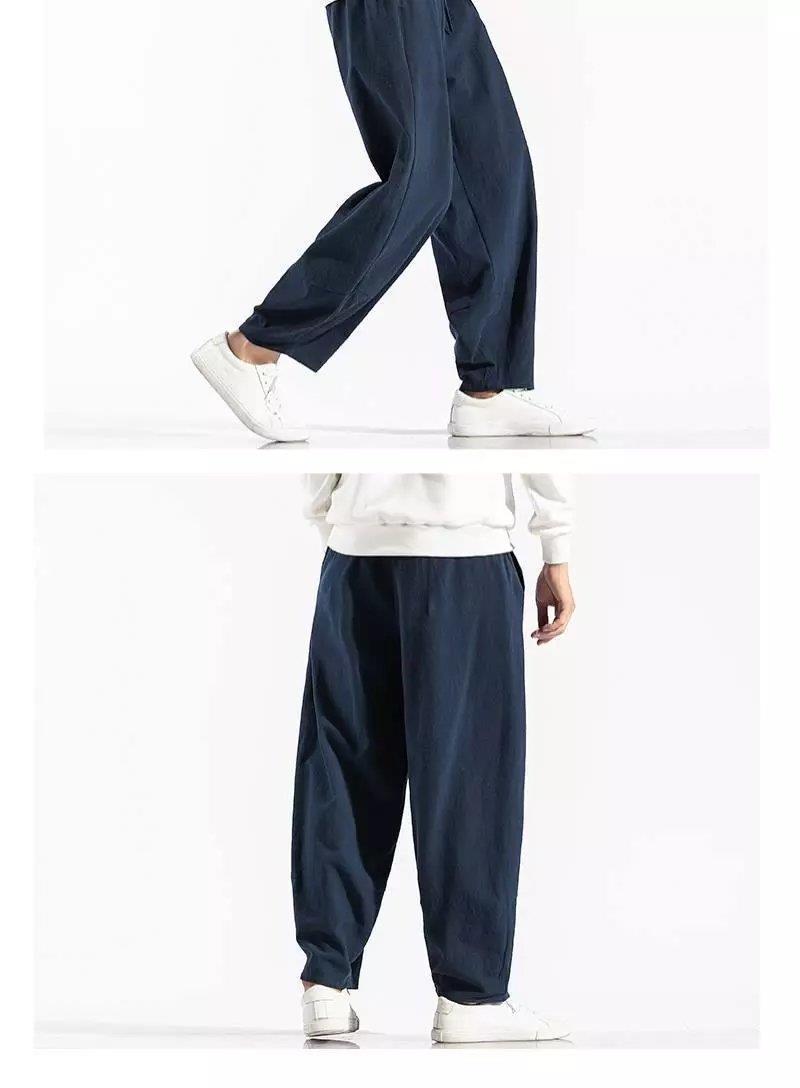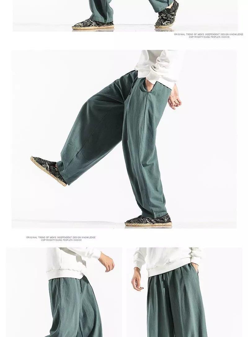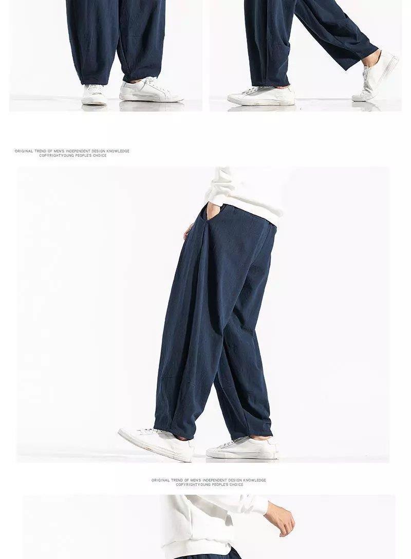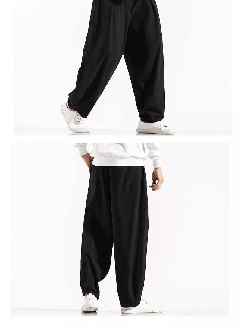 Pantalones sueltos de pantorrilla de estilo chino de primavera y verano, pantalones de meditación, bombachos de algodón y lino, pantalones de monje de Buda de gran tamaño, pantalones anchos para hombres