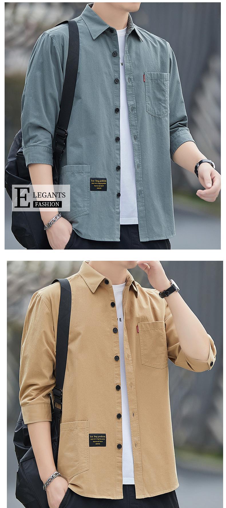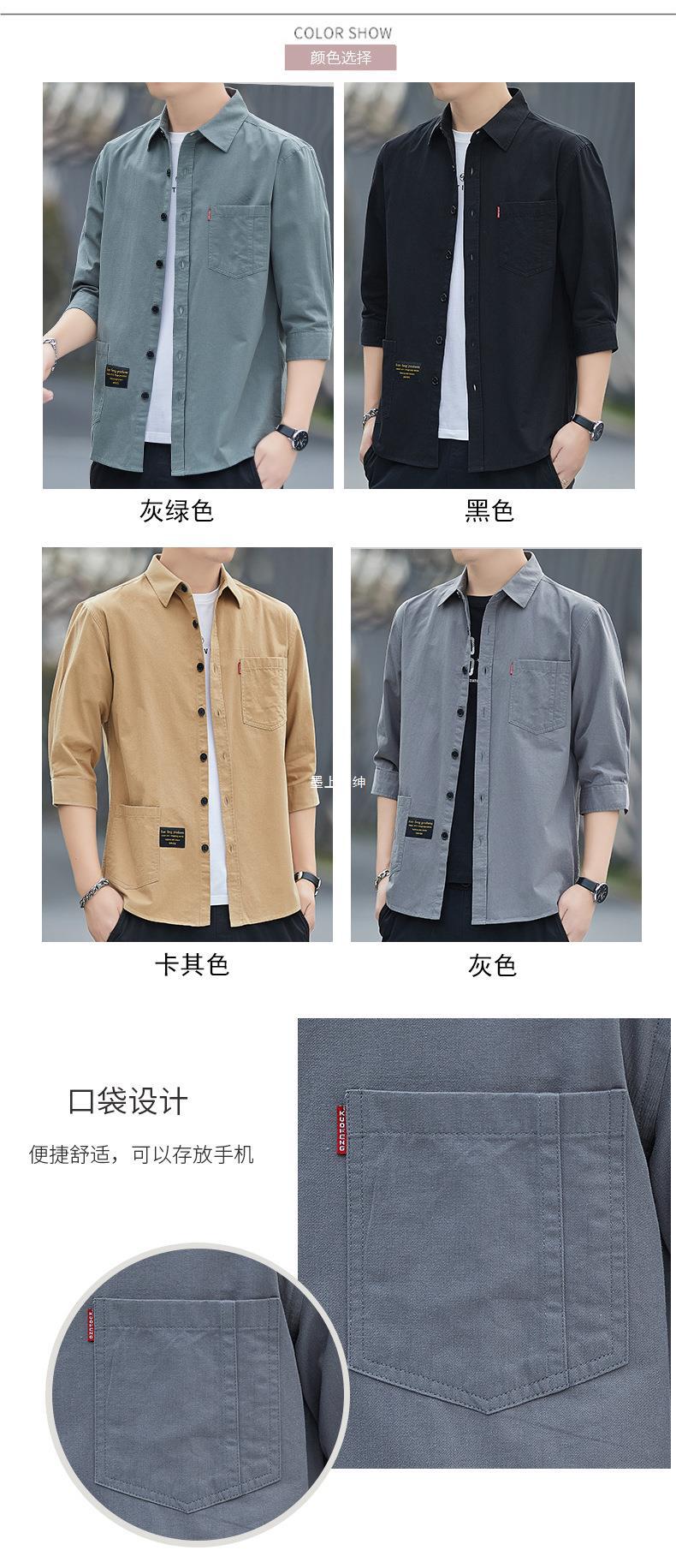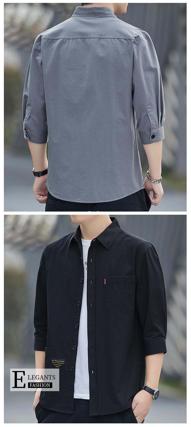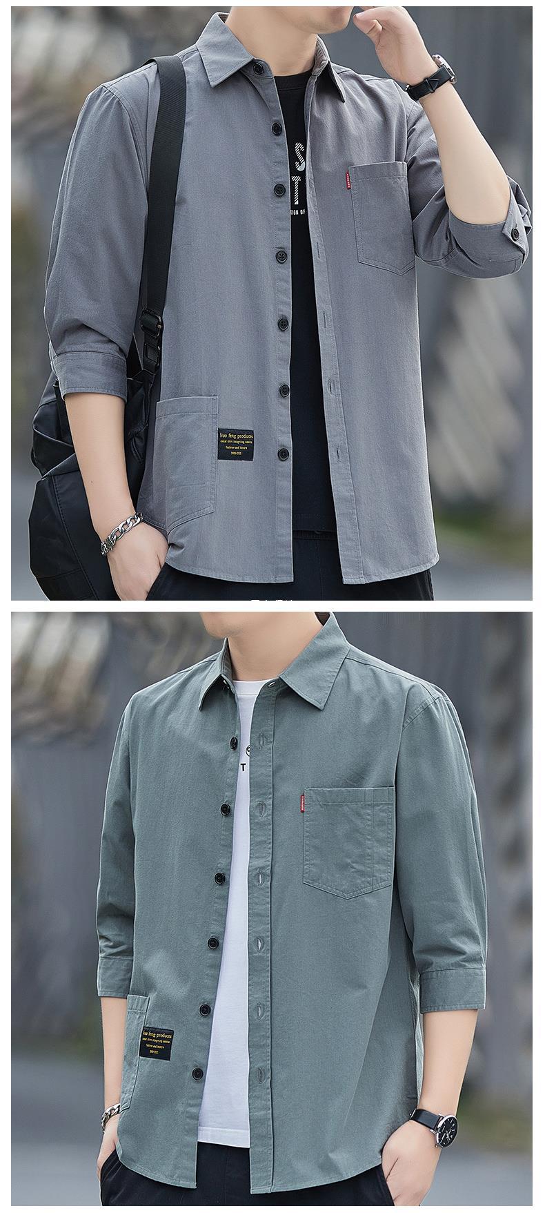 Primavera estilo Hong Kong camisa de trabajo de color sólido manga tres cuartos para hombre chaqueta hermosa camisa casual de moda