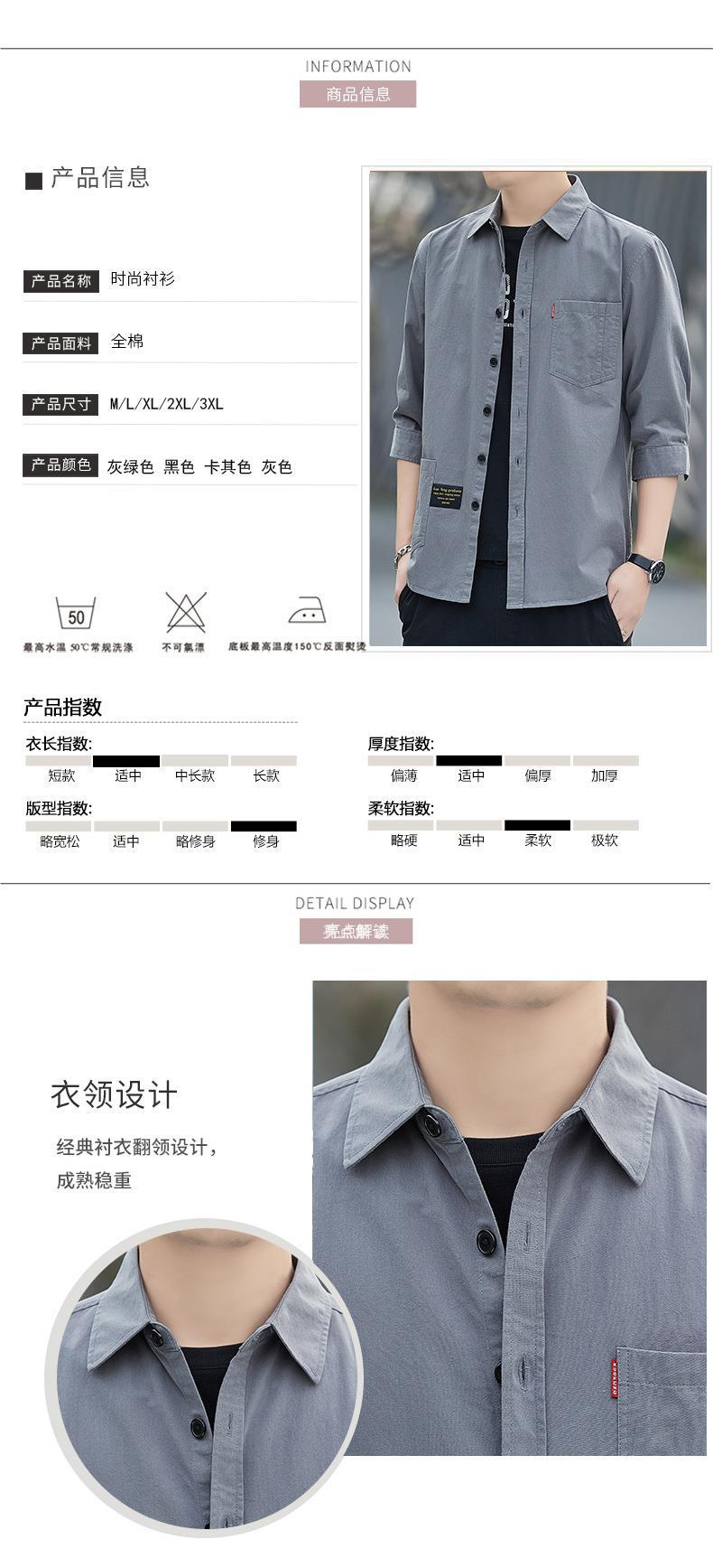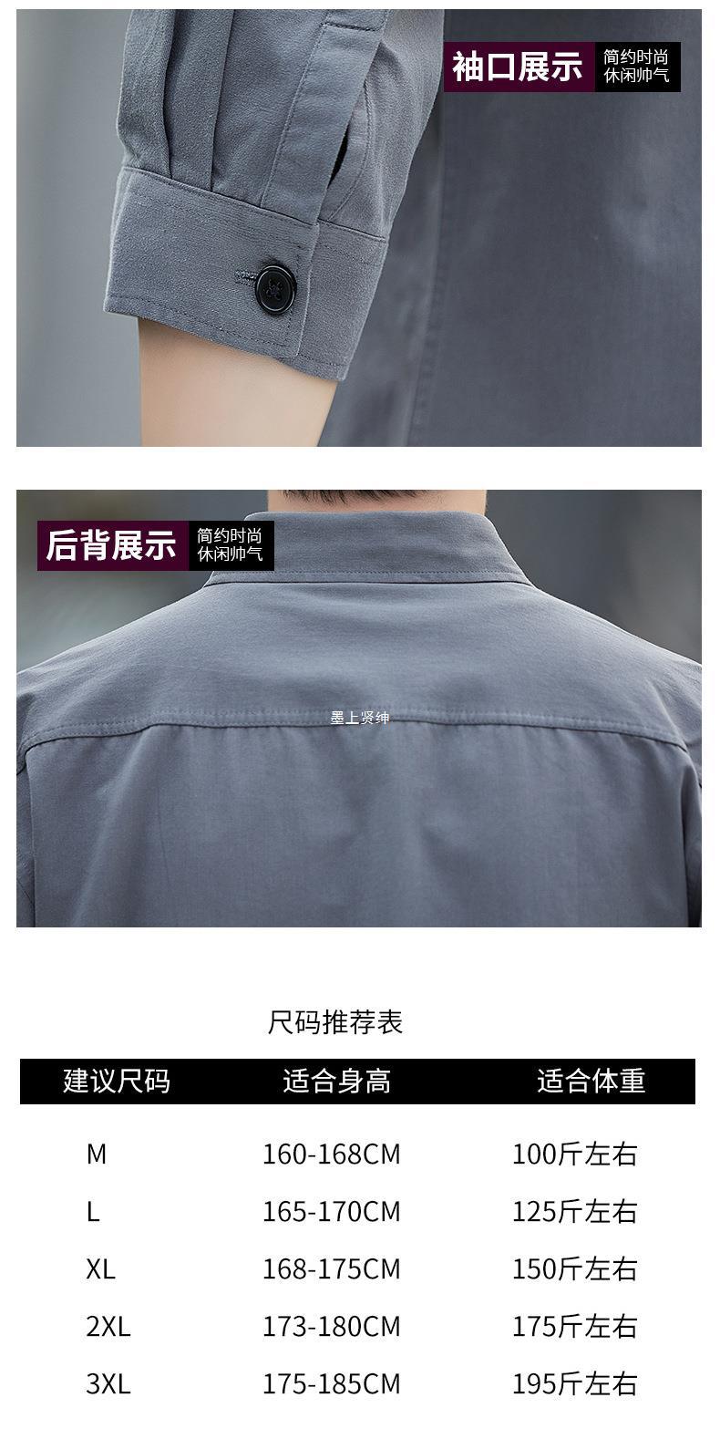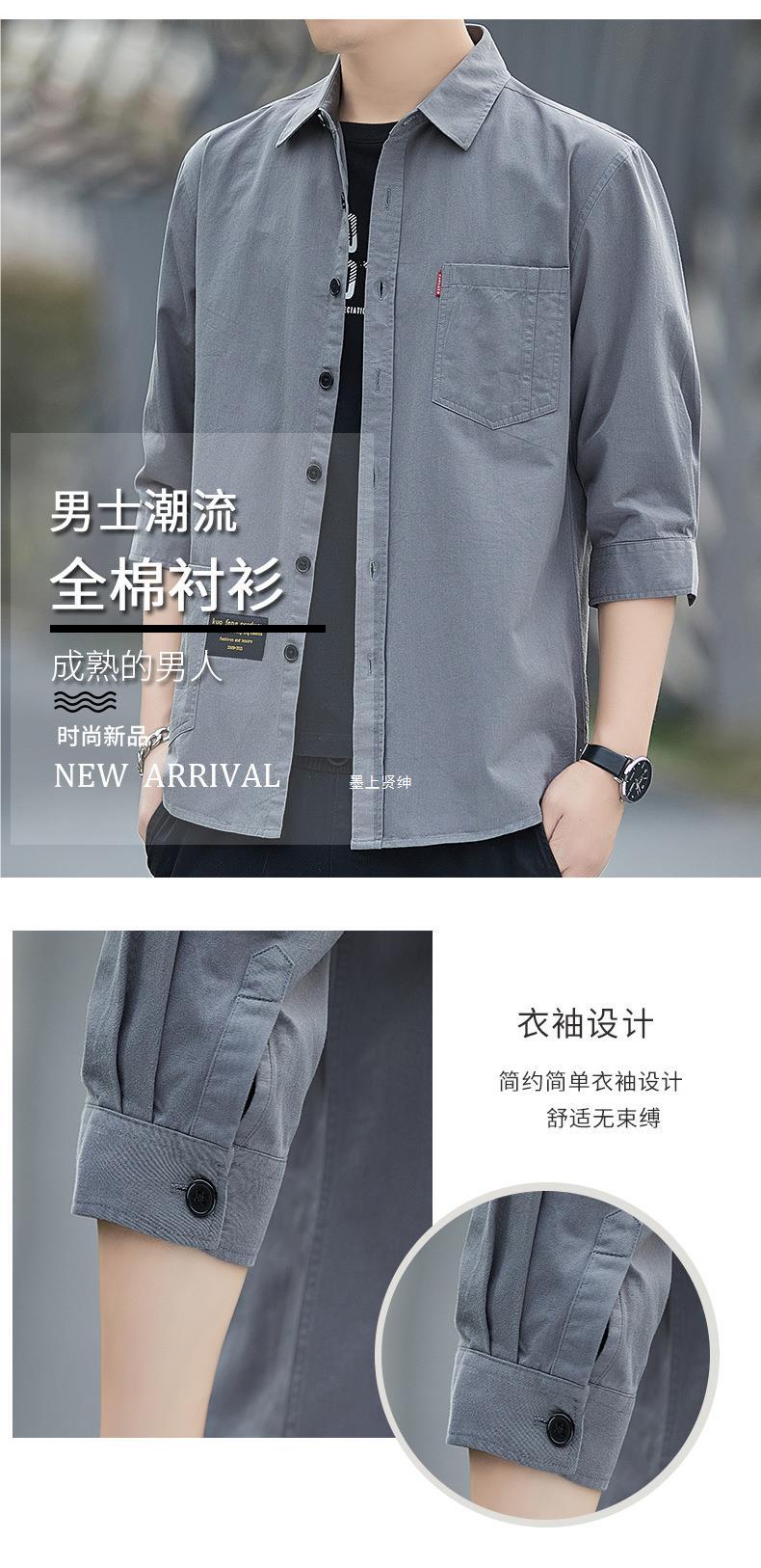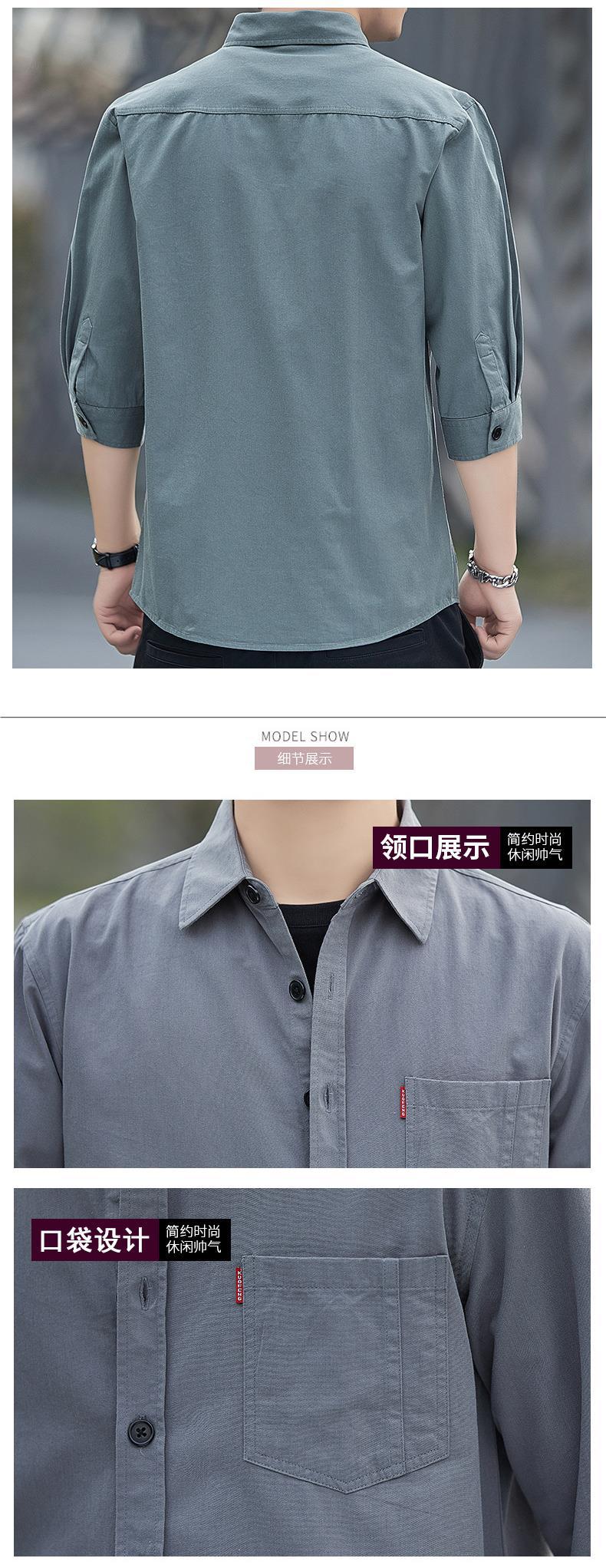 Primavera estilo Hong Kong camisa de trabajo de color sólido manga tres cuartos para hombre chaqueta hermosa camisa casual de moda