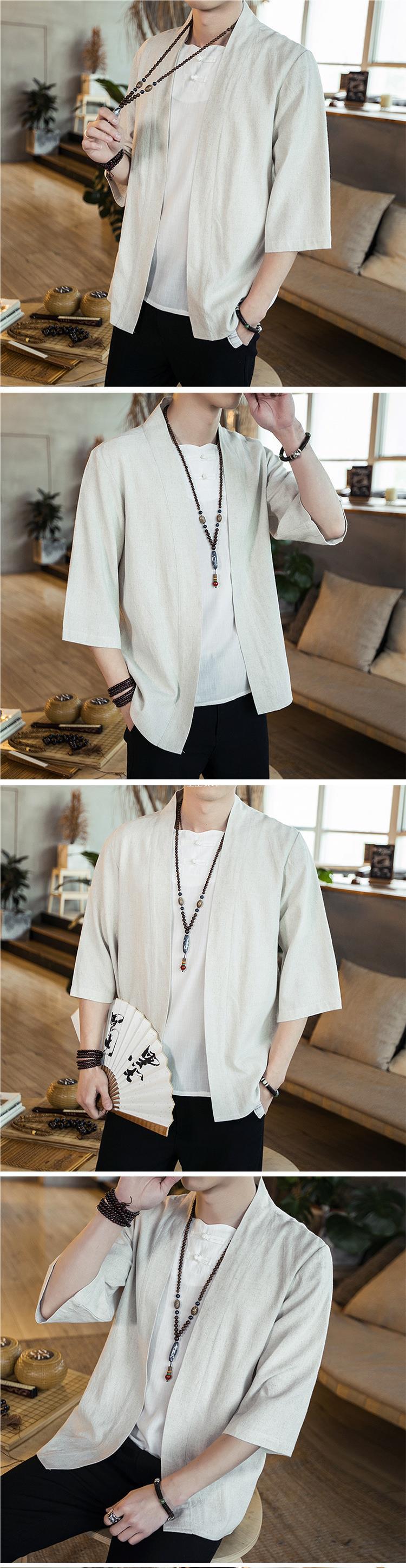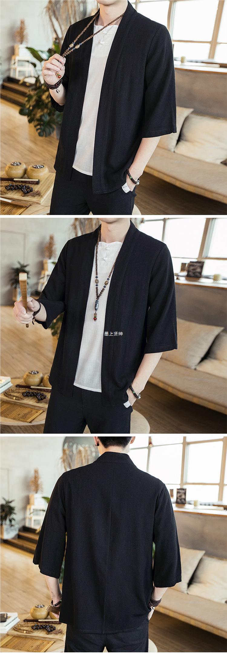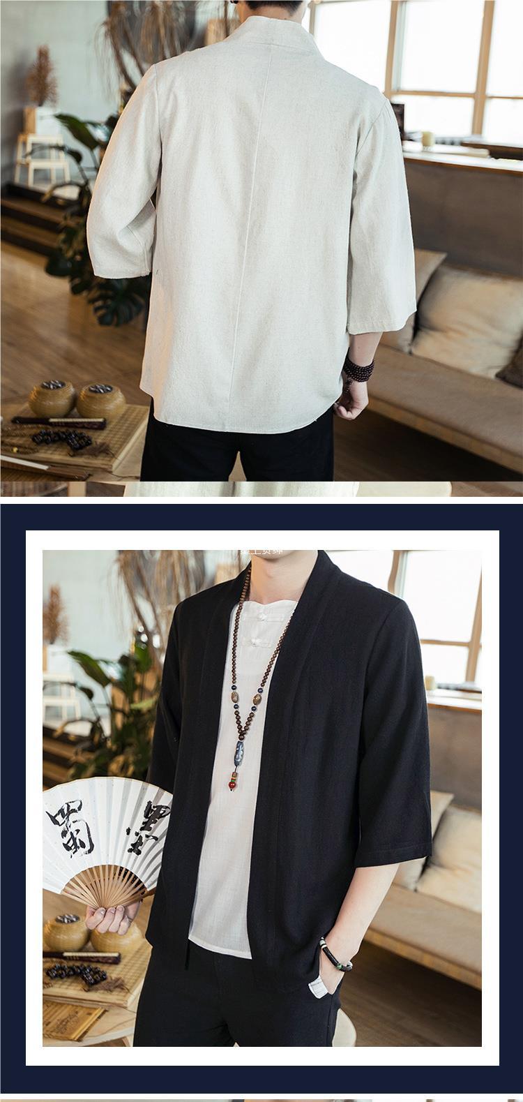 Cárdigan de gran tamaño suelto de primavera y otoño de estilo chino, camisa de lino para hombres y mujeres de estilo antiguo Hanfu, camisa de algodón y lino de color sólido laico