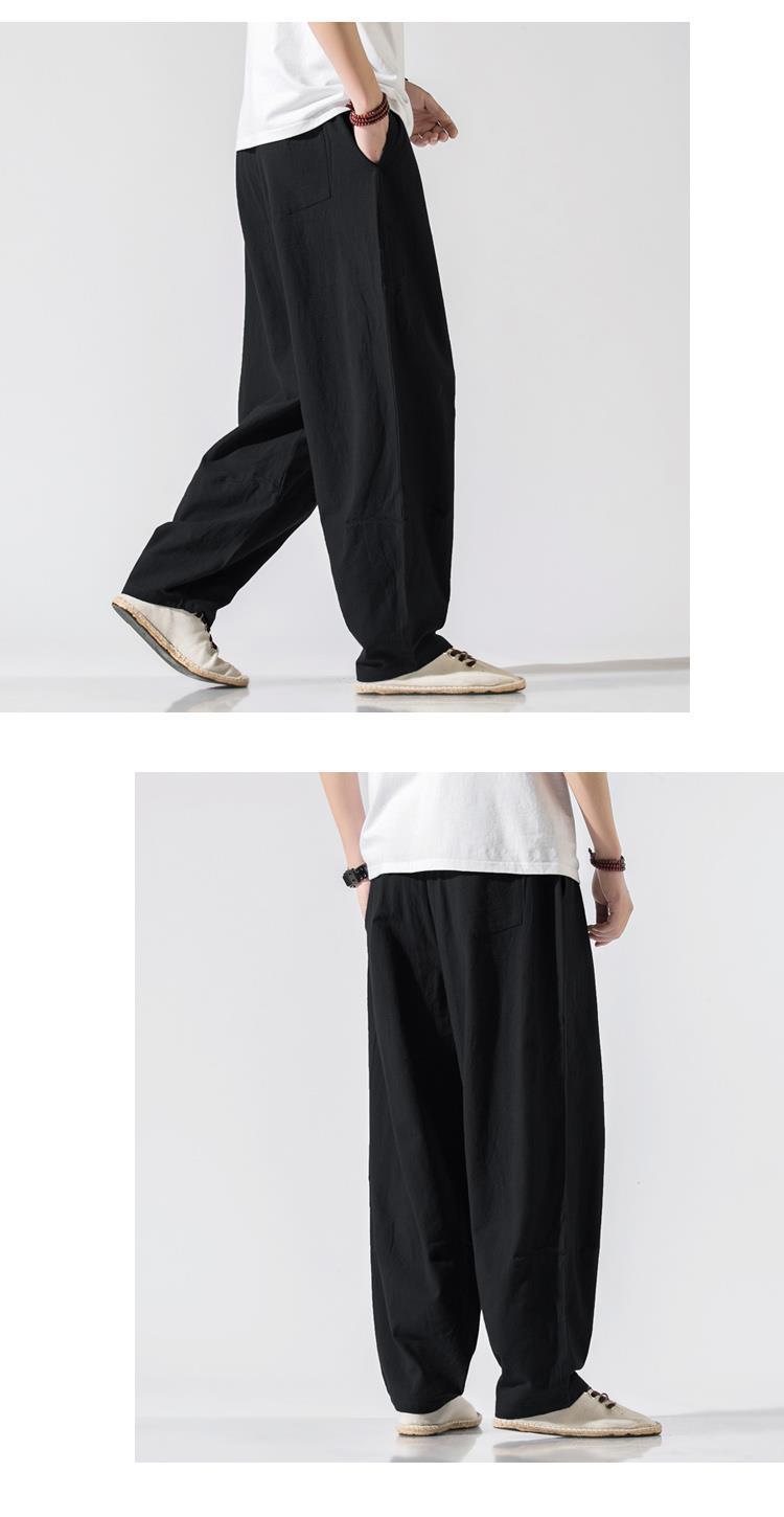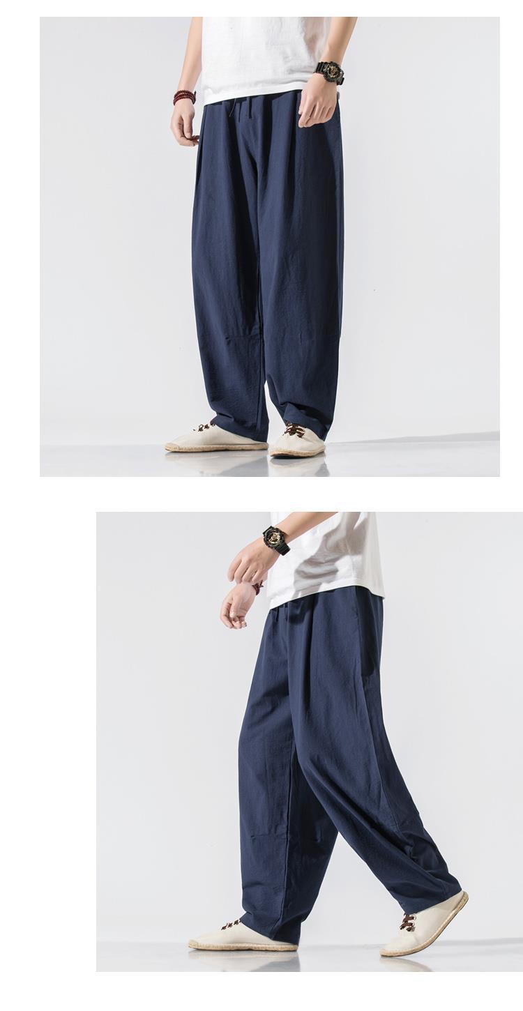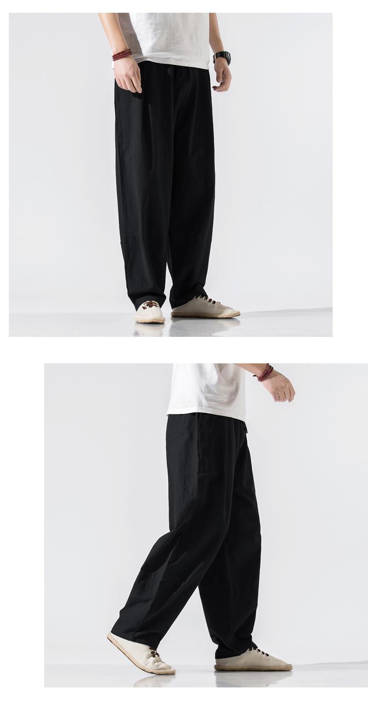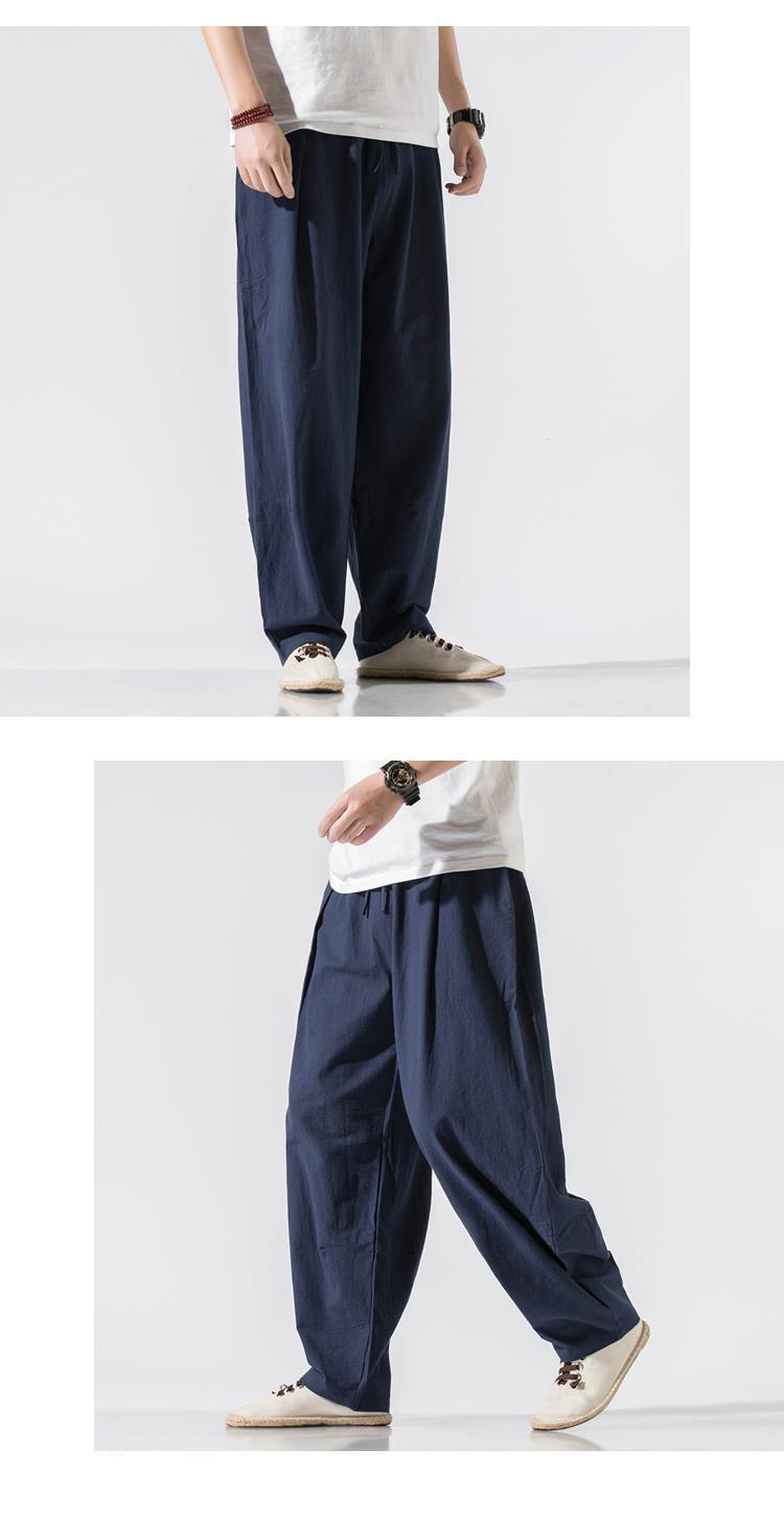 Pantalones de lino, pantalones de hombre, estilo chino, estilo fino de verano, algodón suelto, lino, pantalones harem de pierna ancha, pantalones casuales de hombre