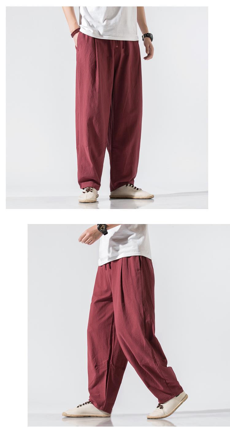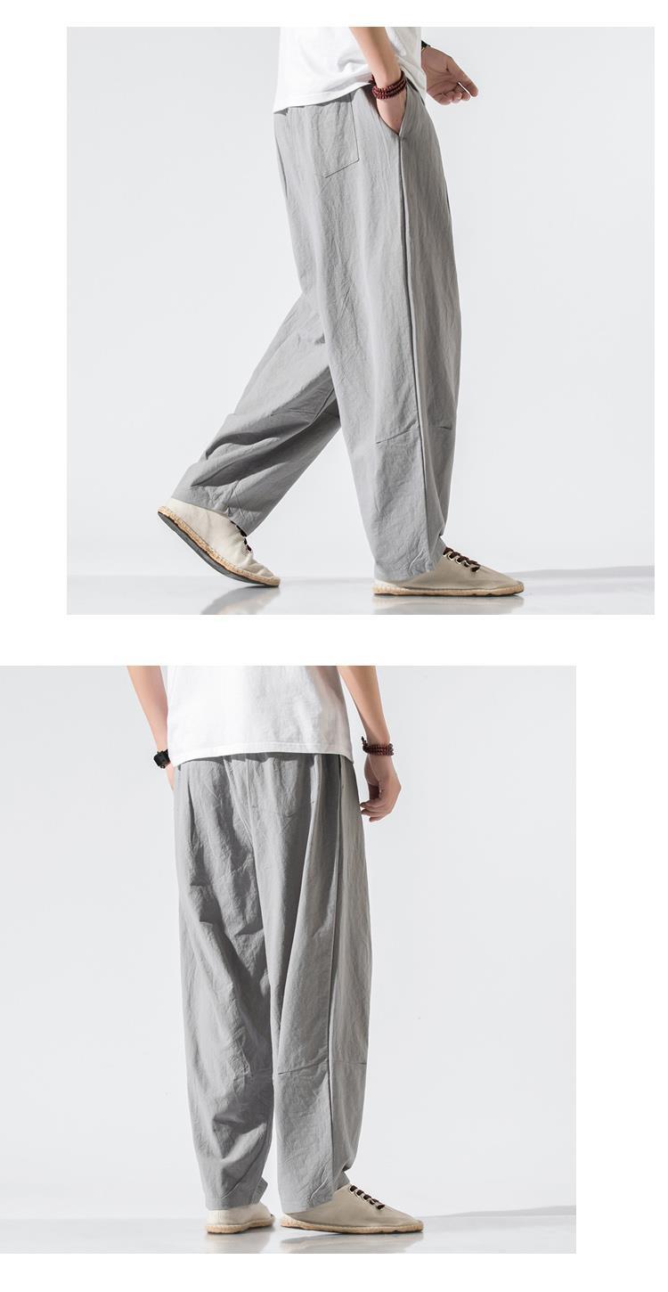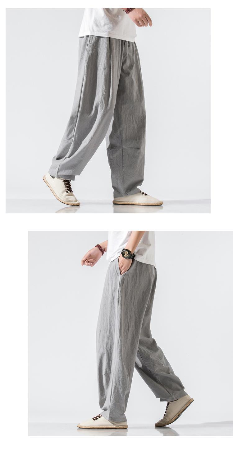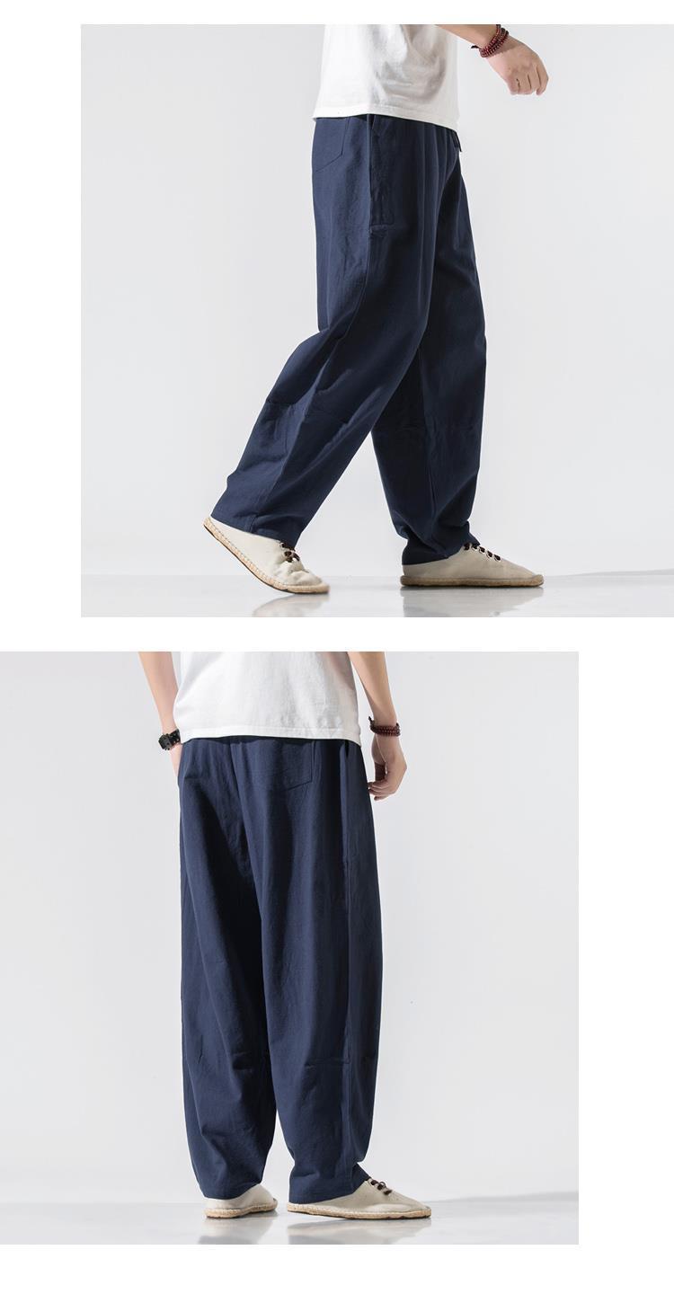Pantalones de lino, pantalones de hombre, estilo chino, estilo fino de verano, algodón suelto, lino, pantalones harem de pierna ancha, pantalones casuales de hombre