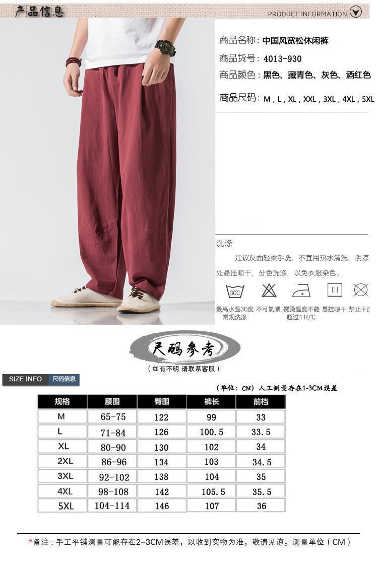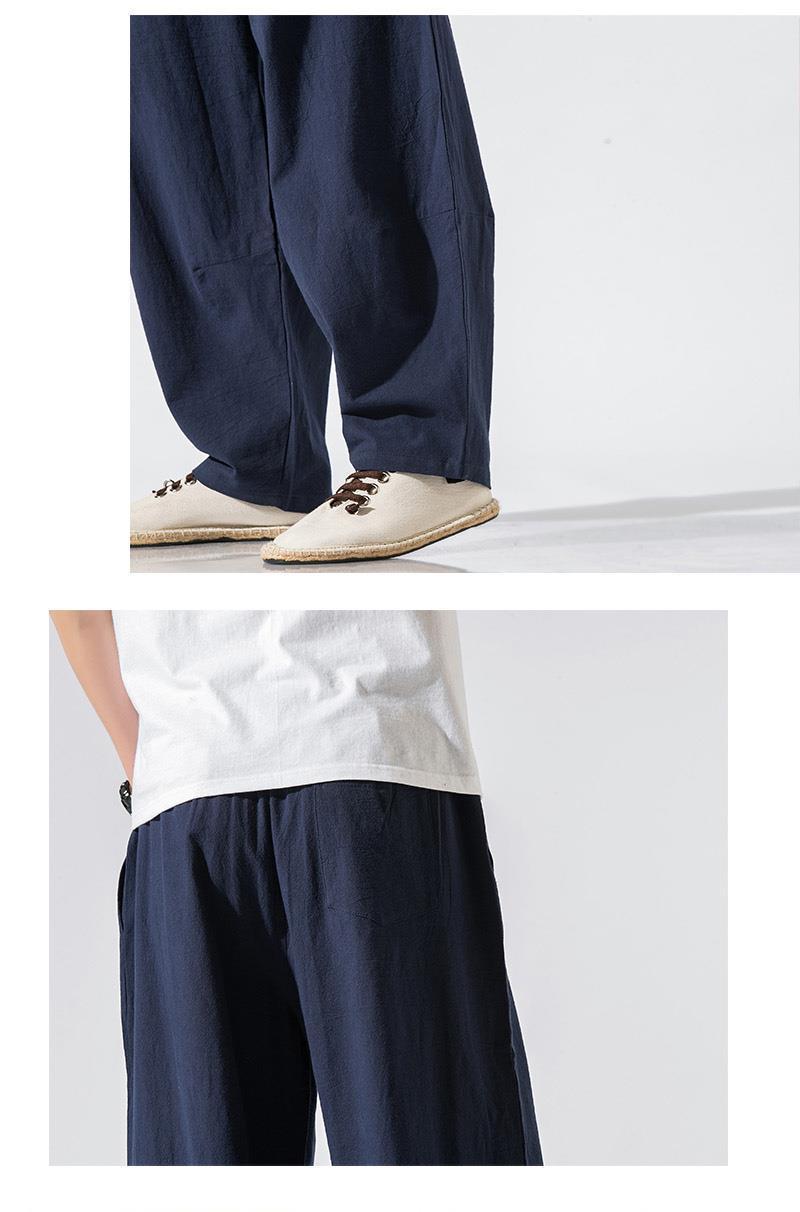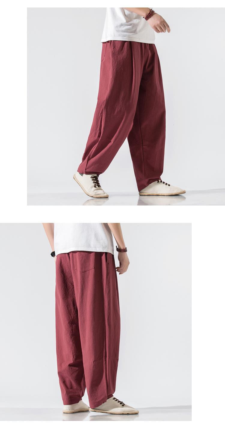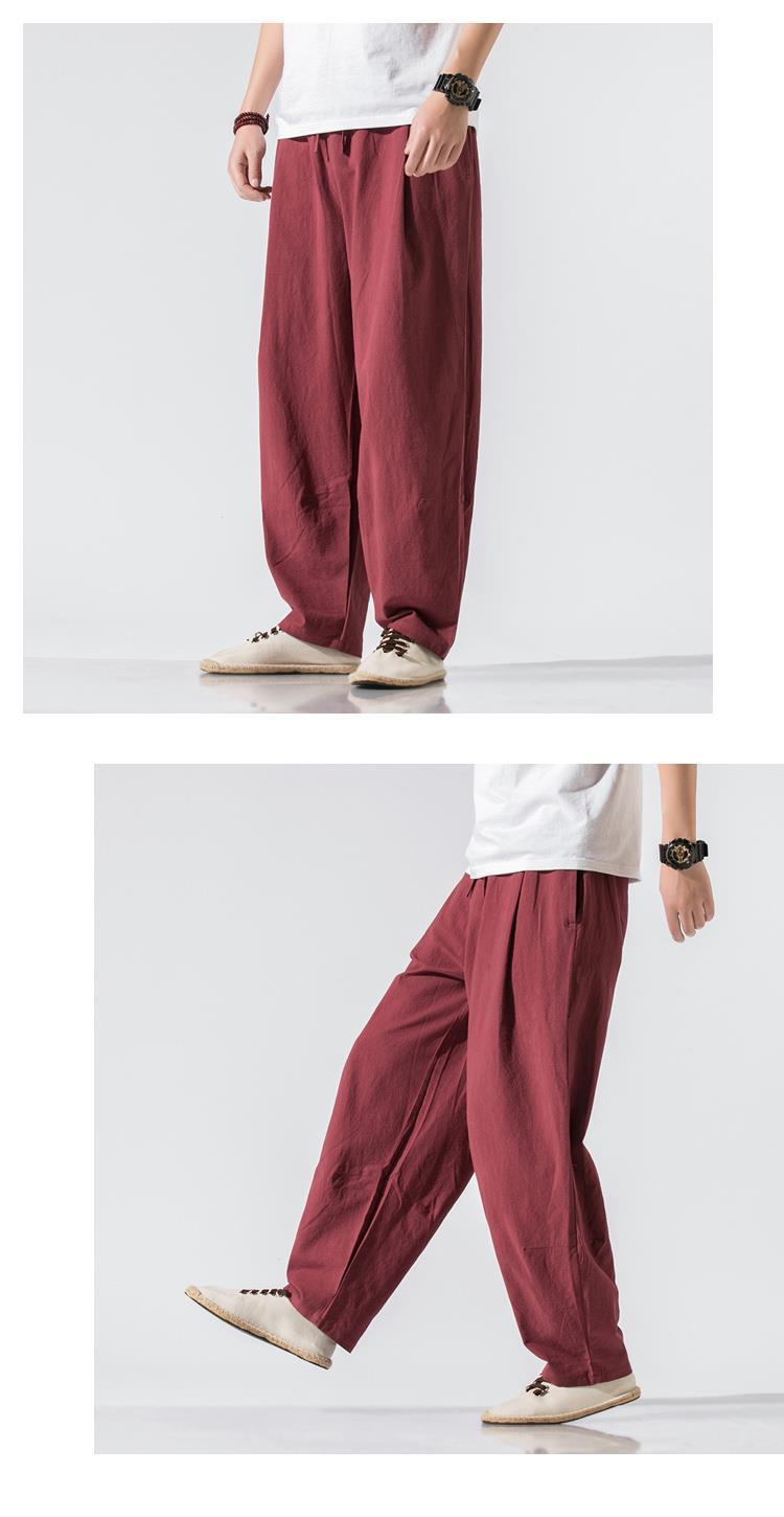 Pantalones de lino, pantalones de hombre, estilo chino, estilo fino de verano, algodón suelto, lino, pantalones harem de pierna ancha, pantalones casuales de hombre