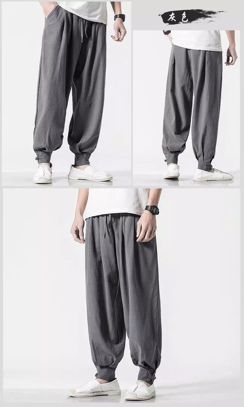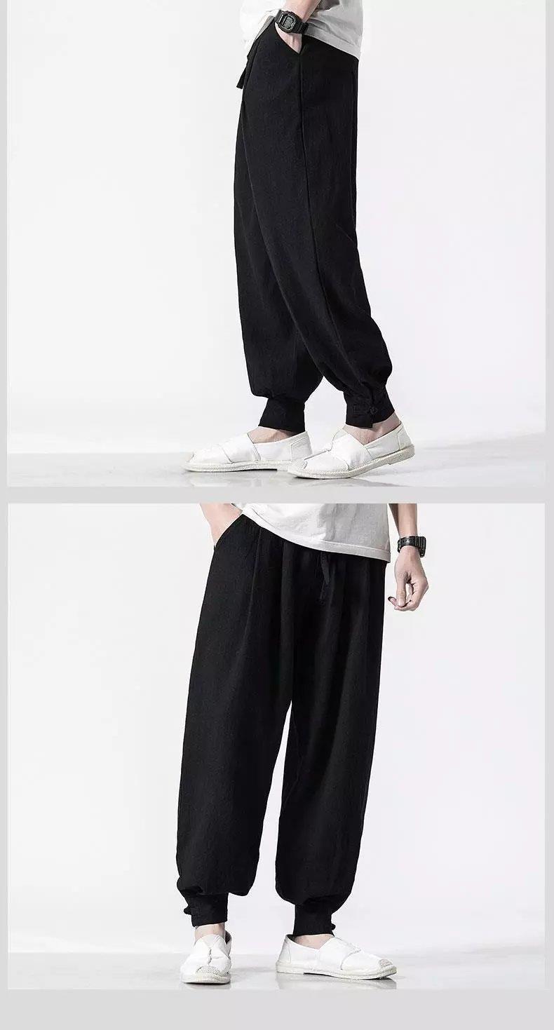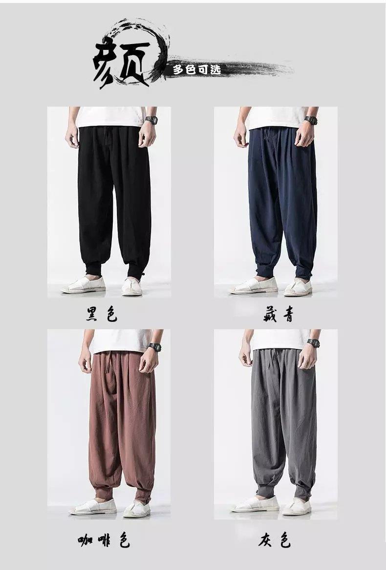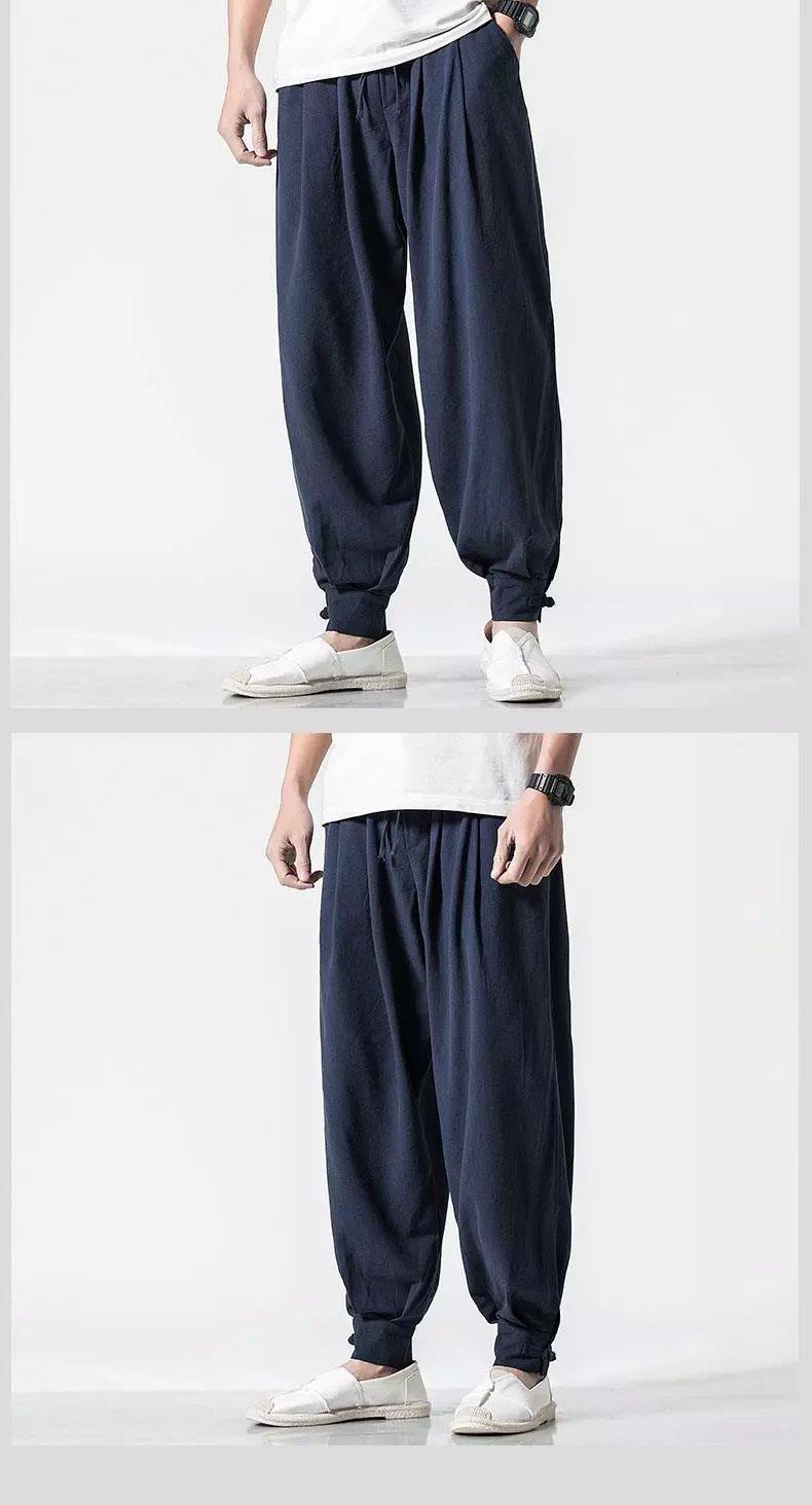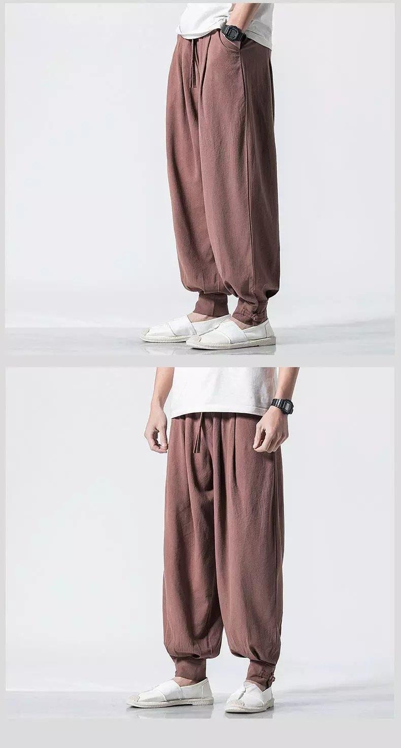 Pantalones de monje, lino para hombre, polainas sueltas y libres, cerrar la boca y cerrar las piernas, monje, monje, monje, pantalones largos, ropa de monje, pantalones de meditación