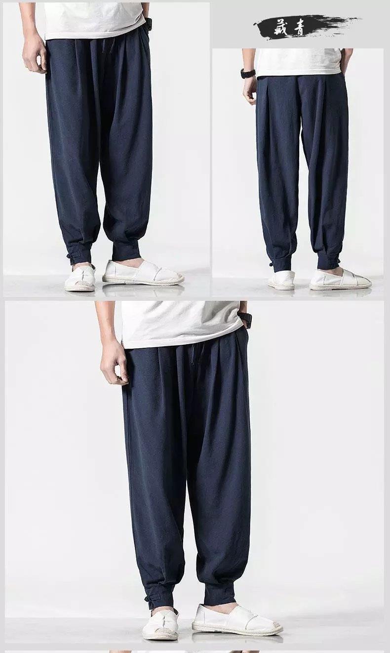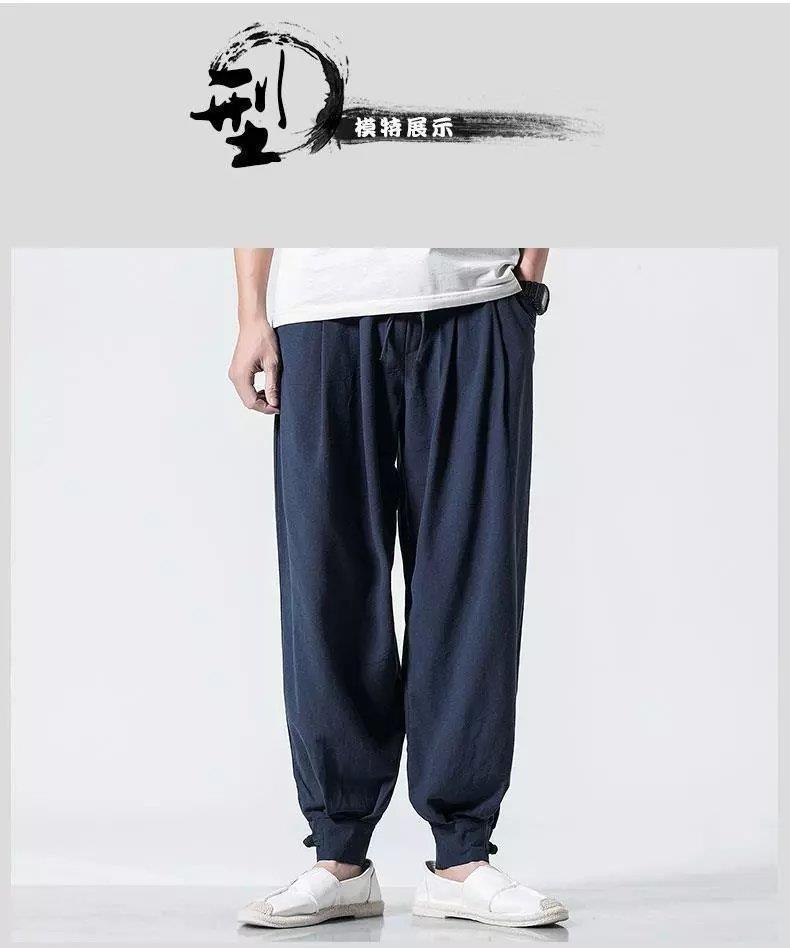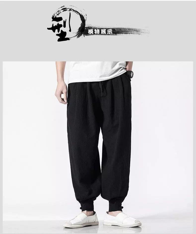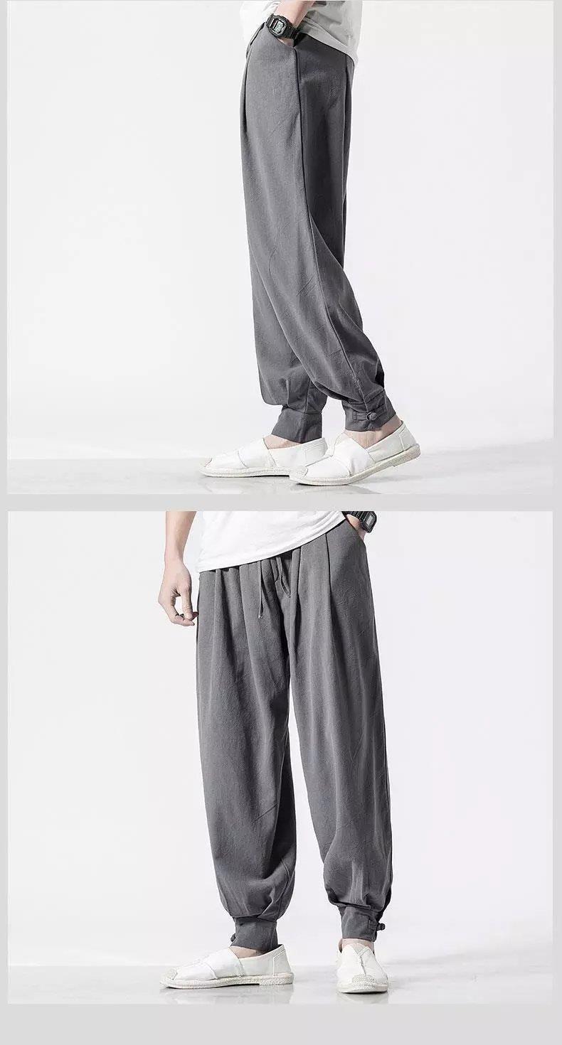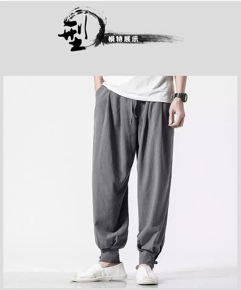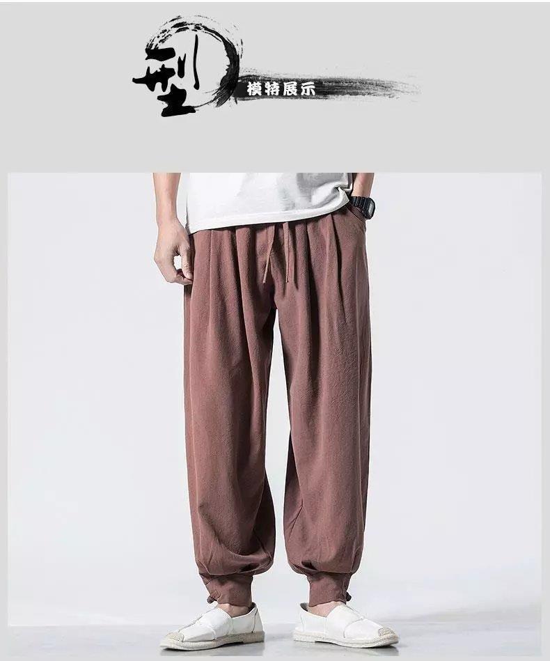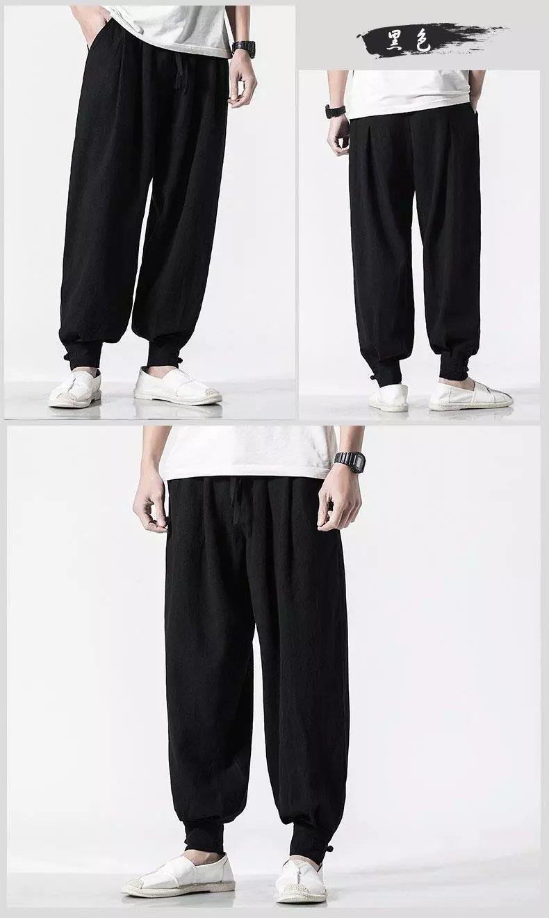 Pantalones de monje, lino para hombre, polainas sueltas y libres, cerrar la boca y cerrar las piernas, monje, monje, monje, pantalones largos, ropa de monje, pantalones de meditación
