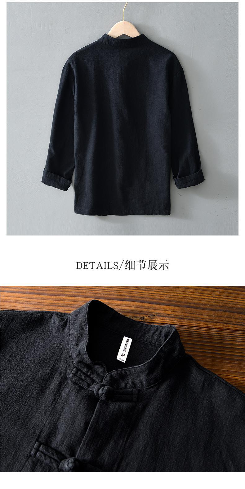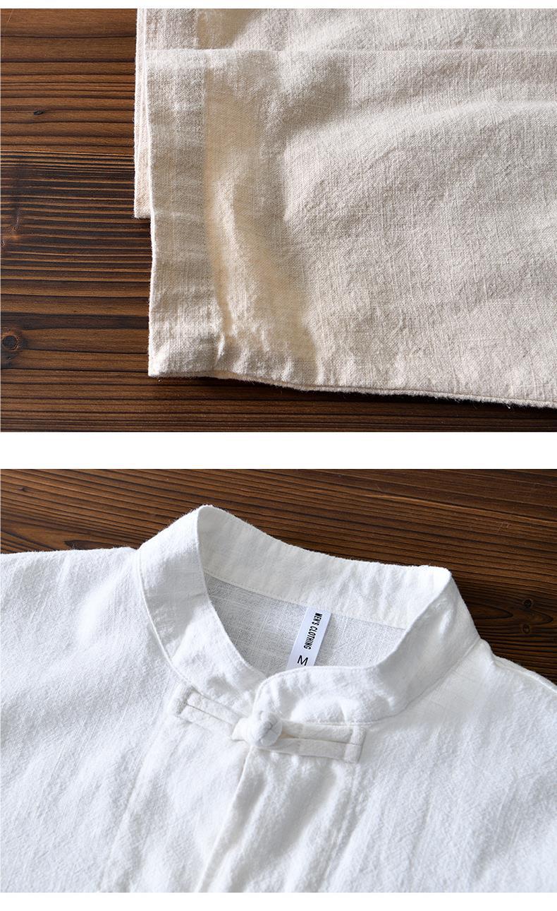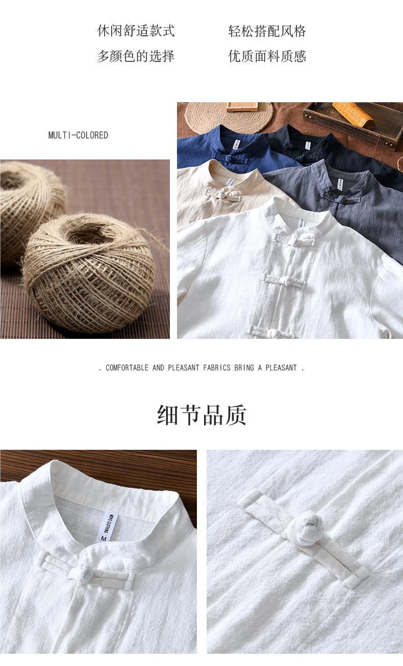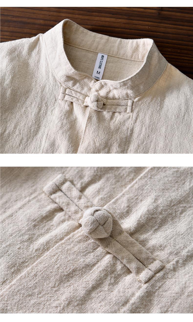 Camisa de ramio con hebilla de disco de estilo chino de manga larga de algodón y lino para hombre de mediana edad casual suelta transpirable cuello alto camisa de lino retro