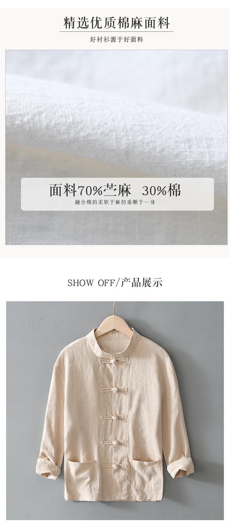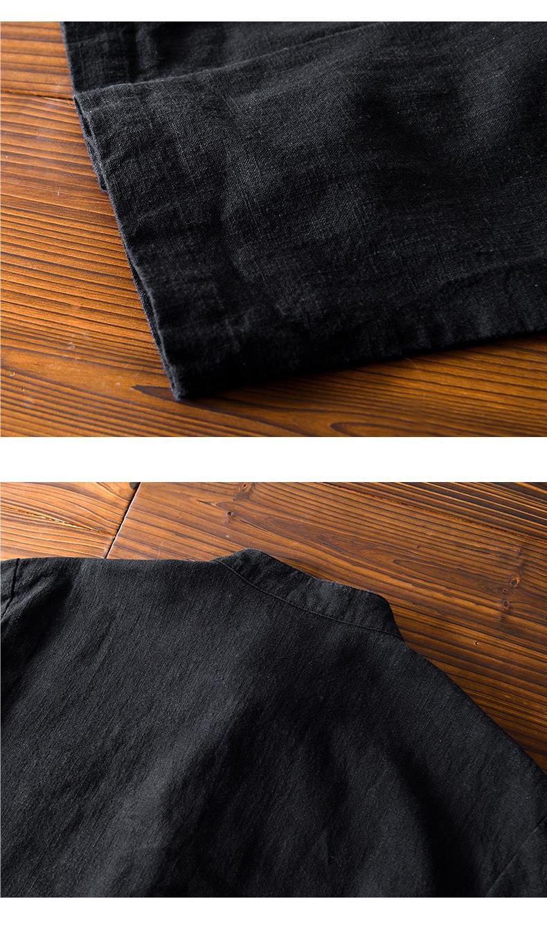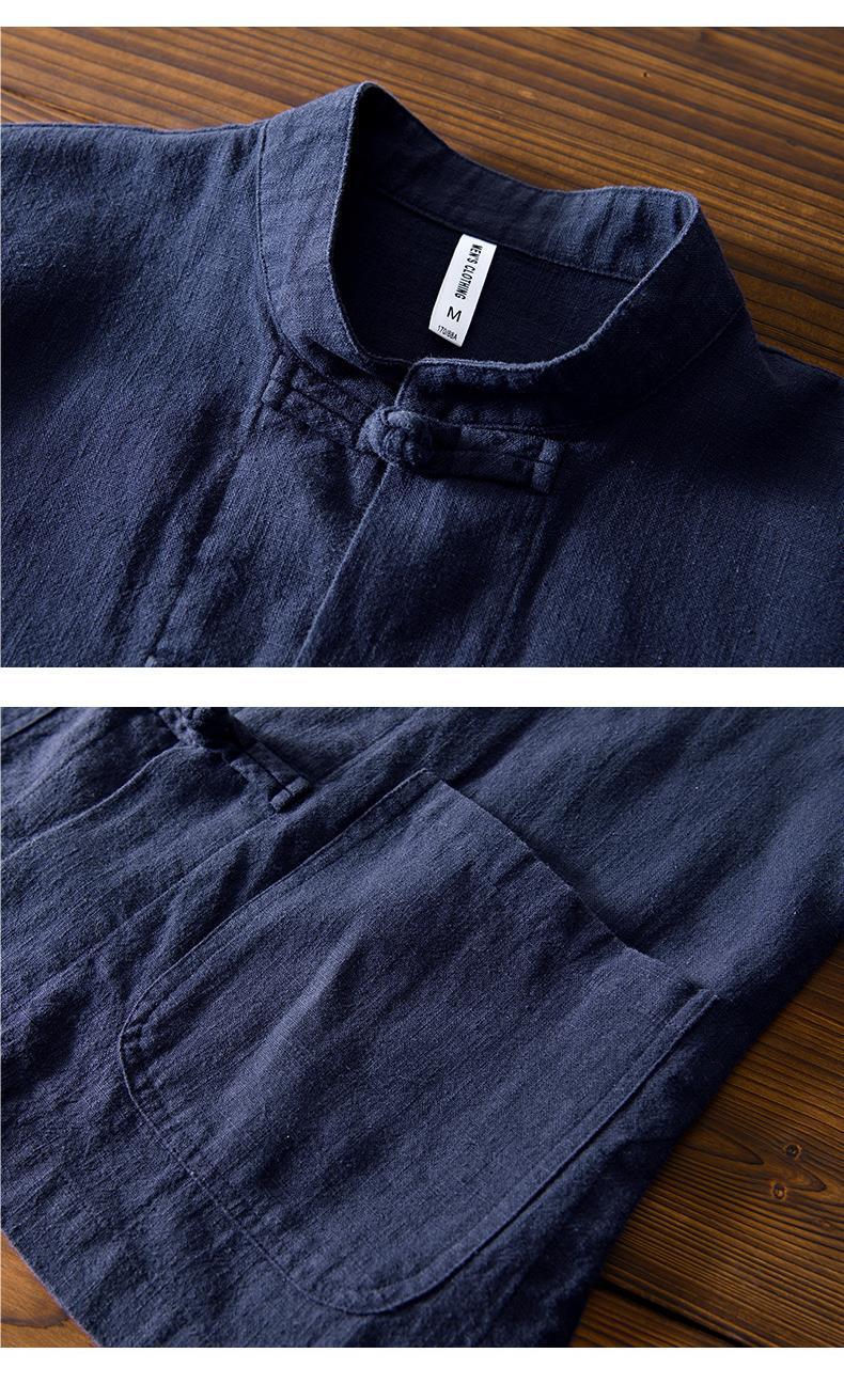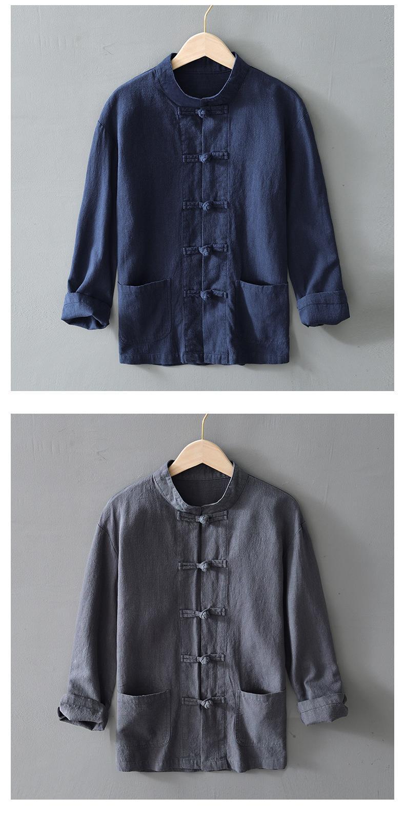 Camisa de ramio con hebilla de disco de estilo chino de manga larga de algodón y lino para hombre de mediana edad casual suelta transpirable cuello alto camisa de lino retro