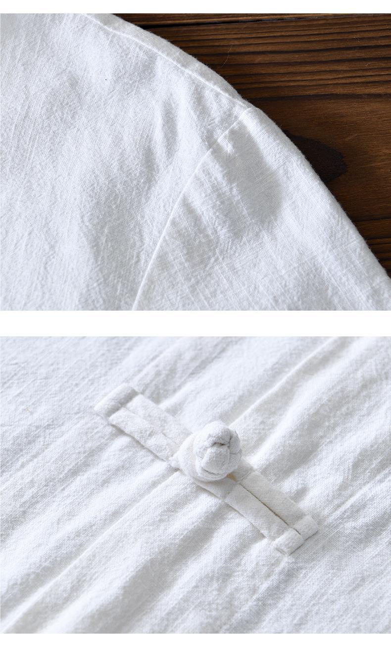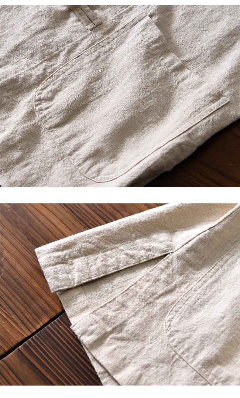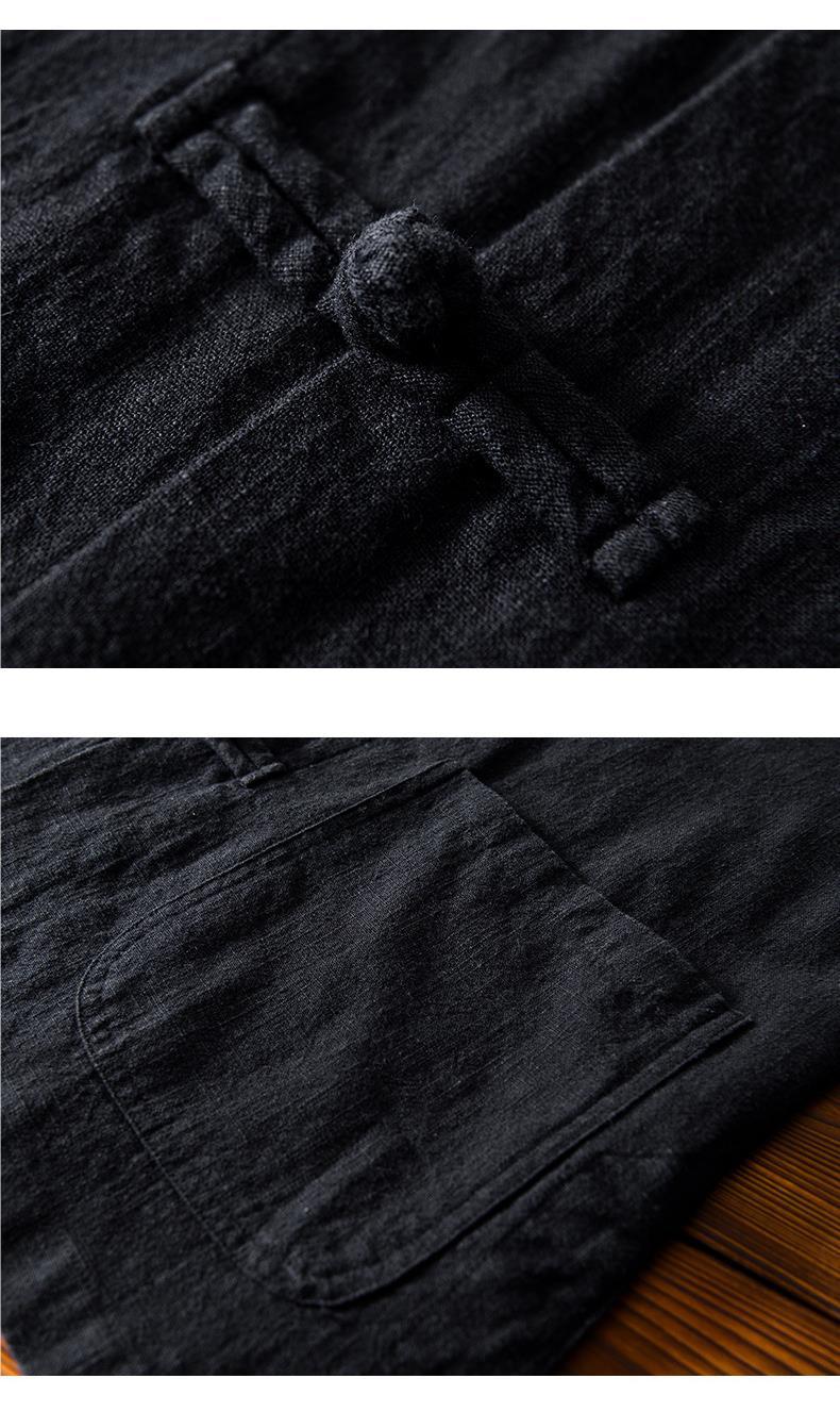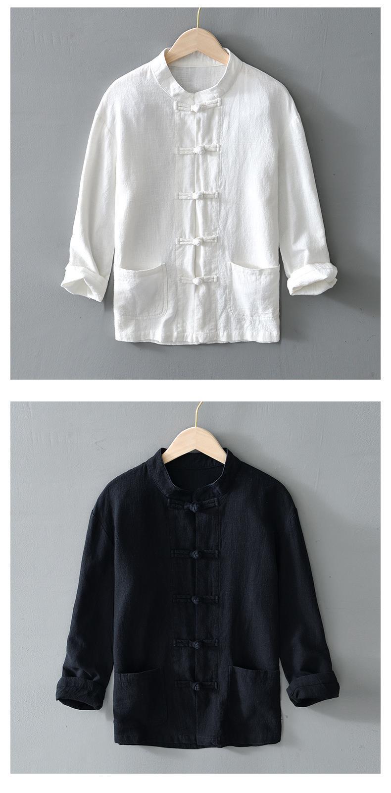 Camisa de ramio con hebilla de disco de estilo chino de manga larga de algodón y lino para hombre de mediana edad casual suelta transpirable cuello alto camisa de lino retro