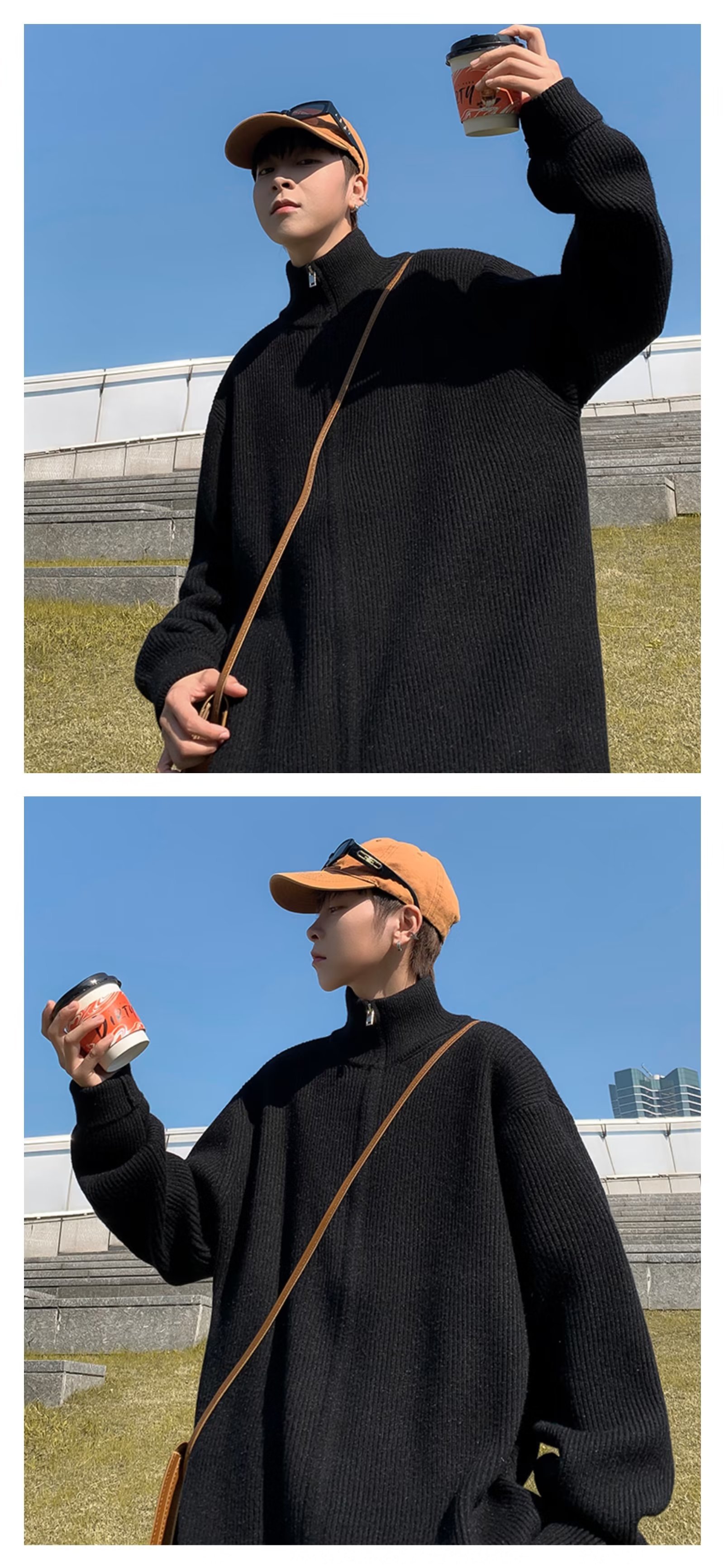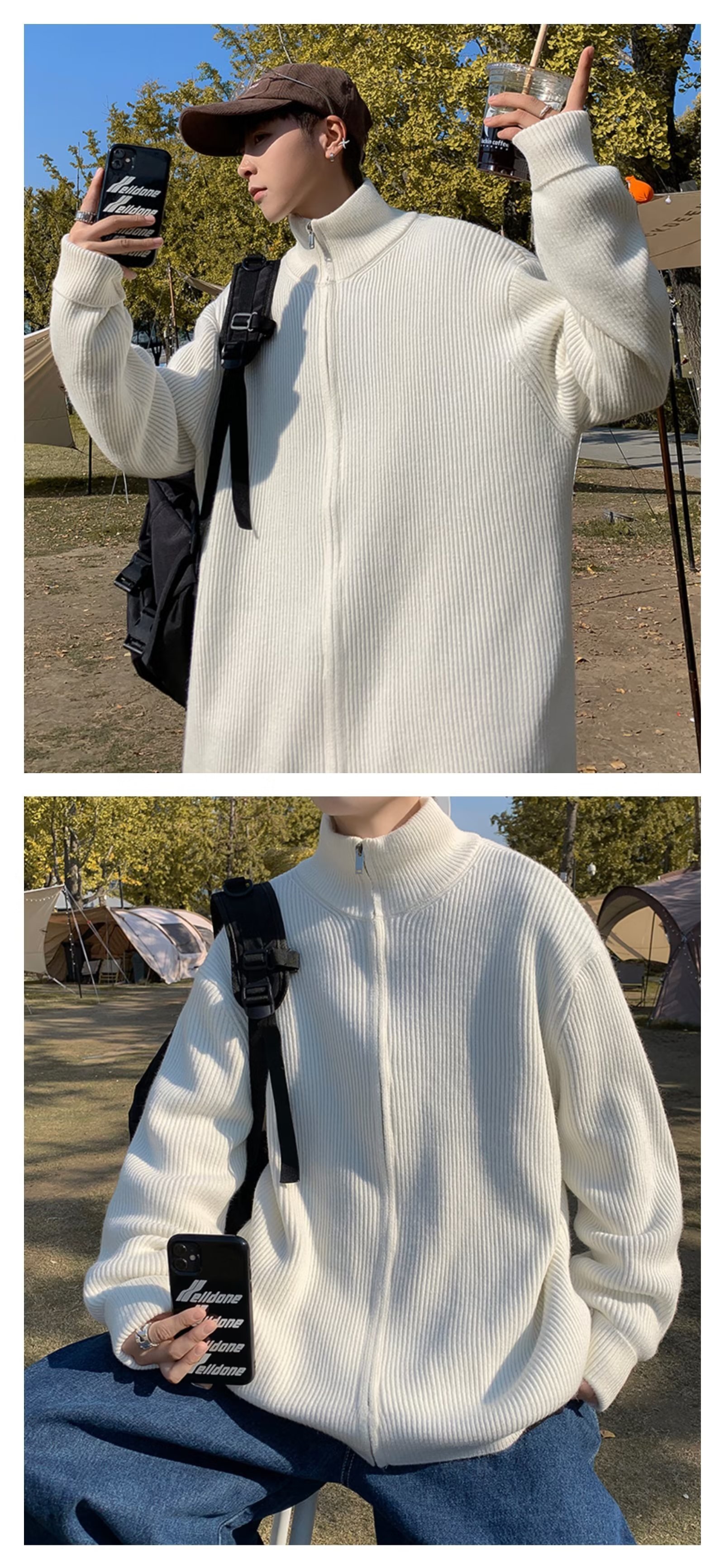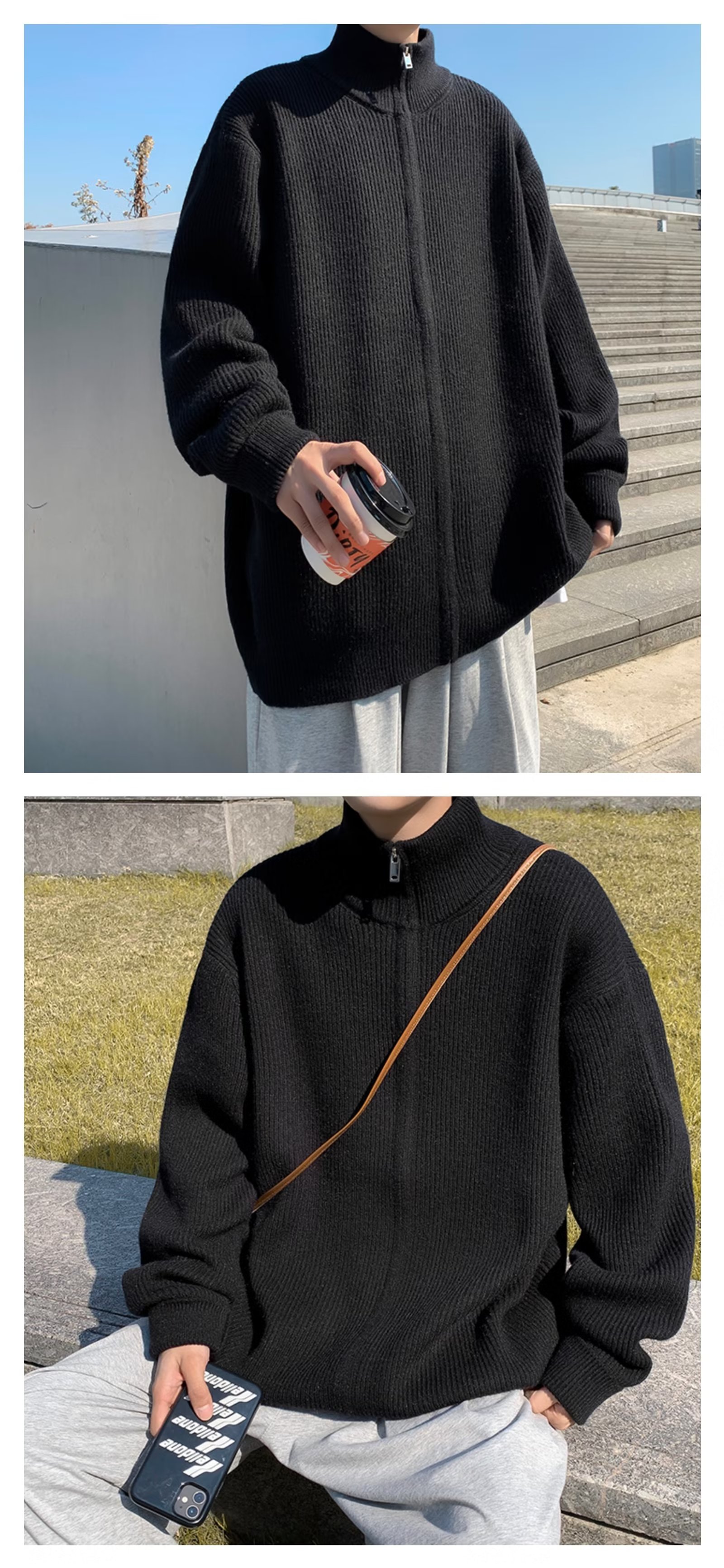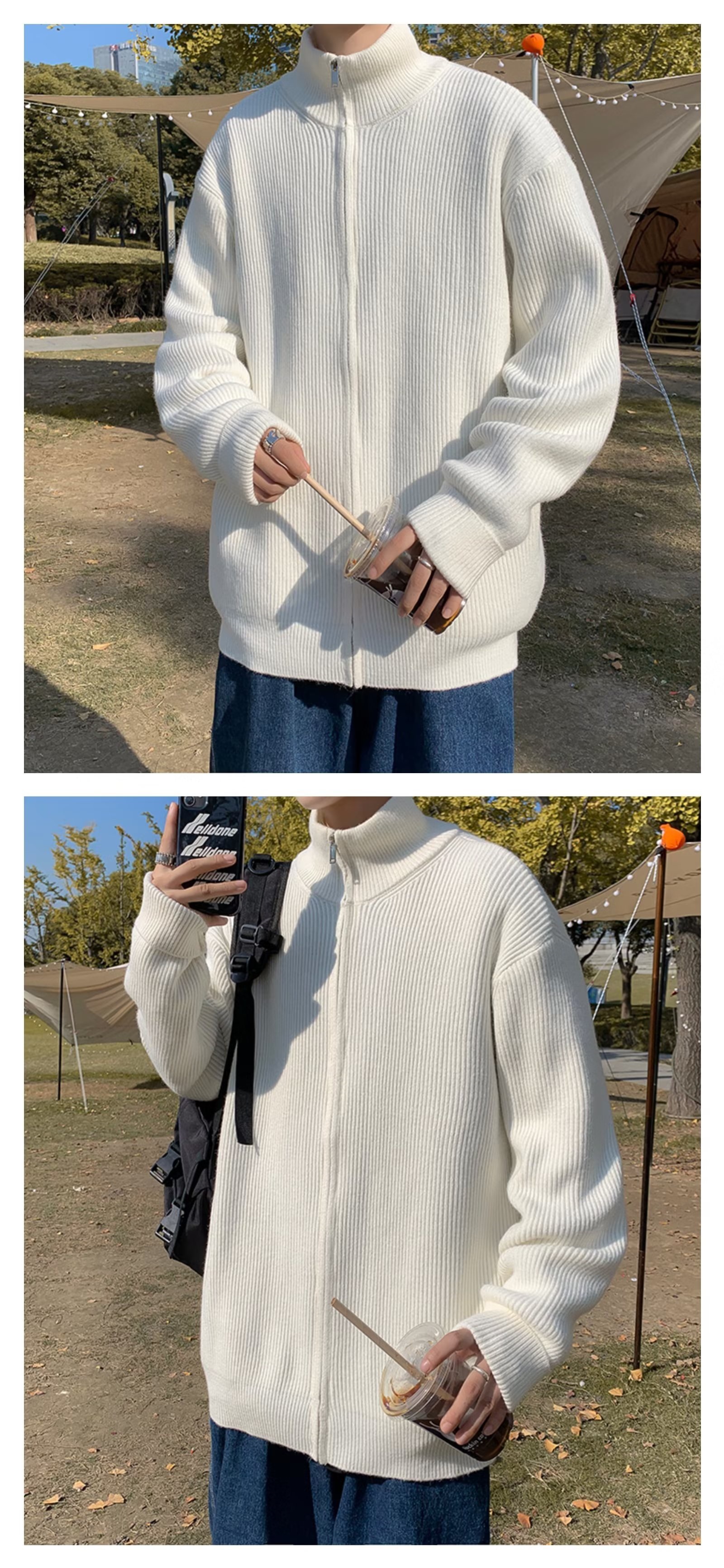 Chaqueta con cremallera estilo perezoso cárdigan suéter hombre otoño e invierno grueso perezoso de alta gama cuello alto suéter marca de moda japonesa