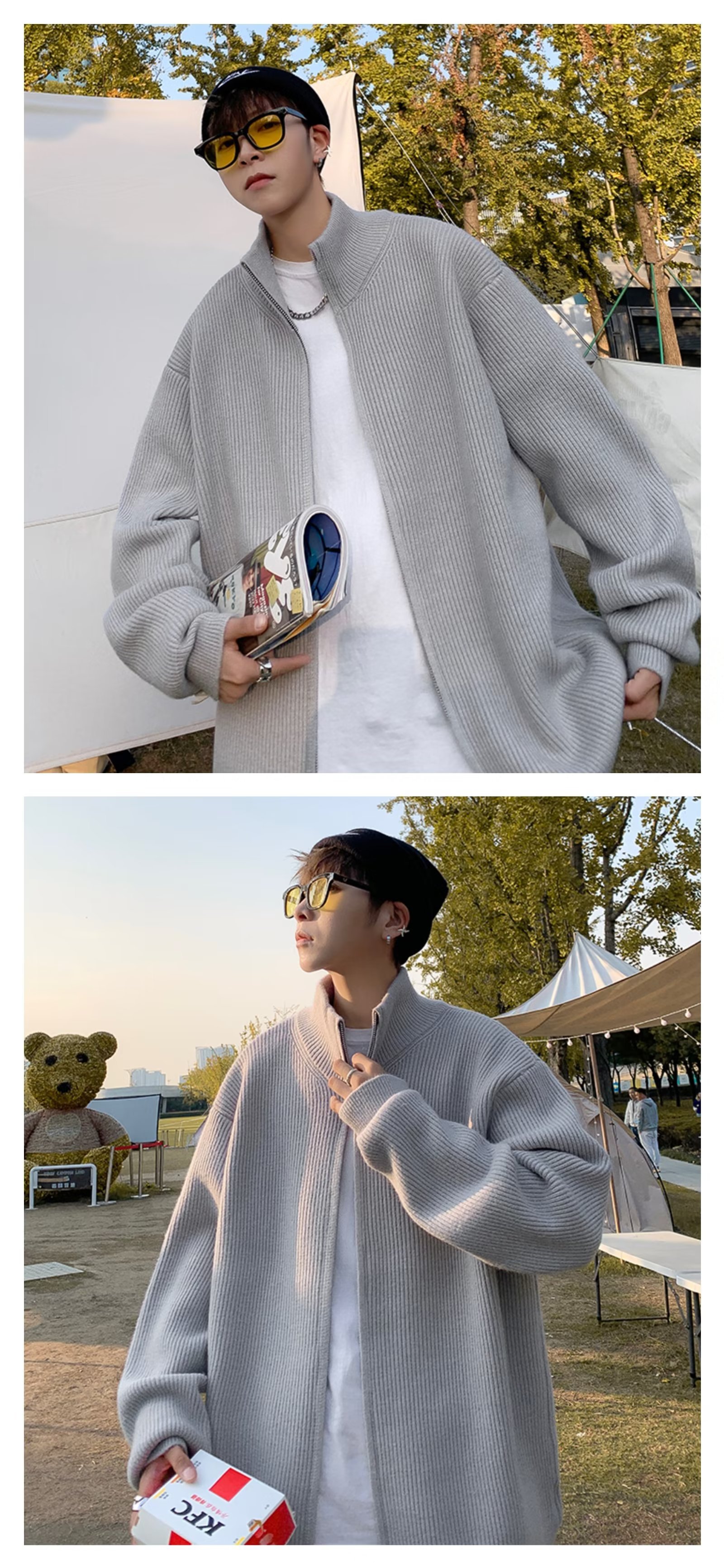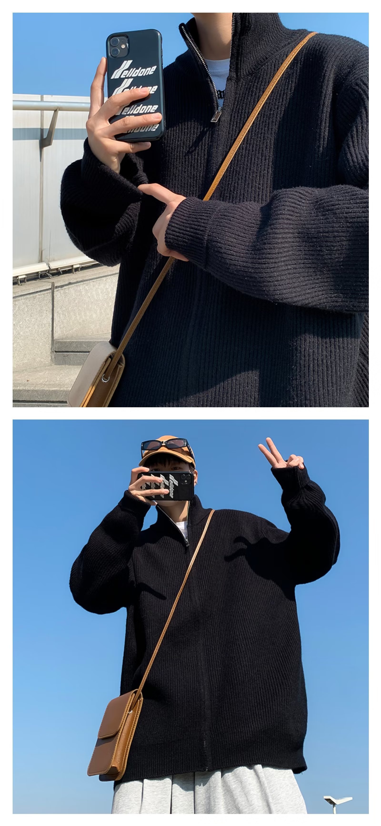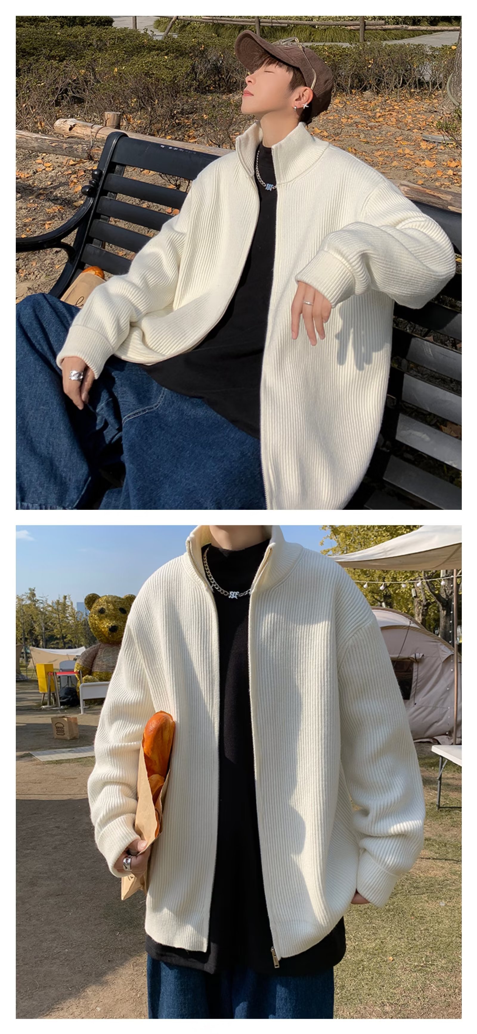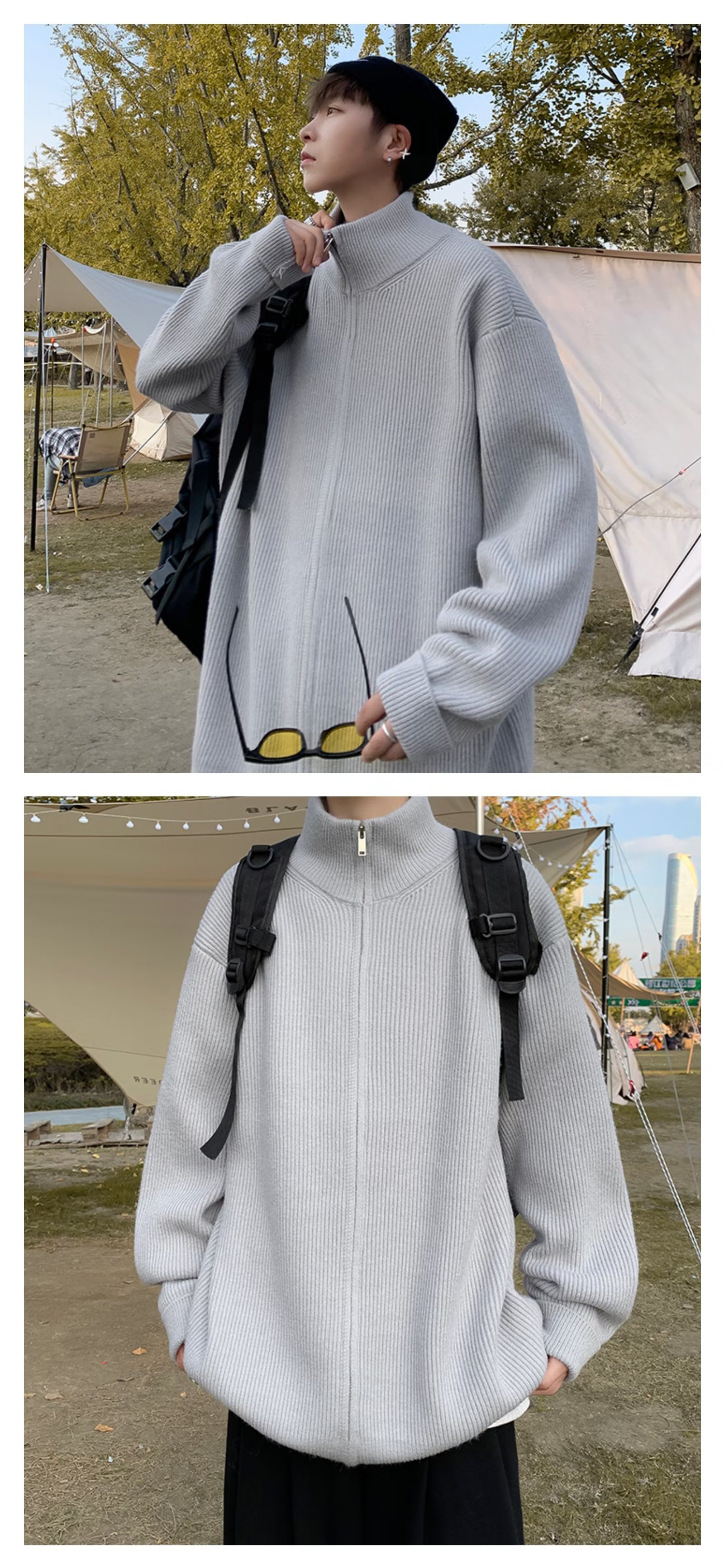 Chaqueta con cremallera estilo perezoso cárdigan suéter hombre otoño e invierno grueso perezoso de alta gama cuello alto suéter marca de moda japonesa