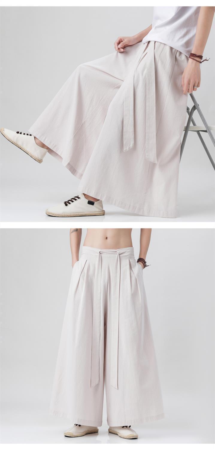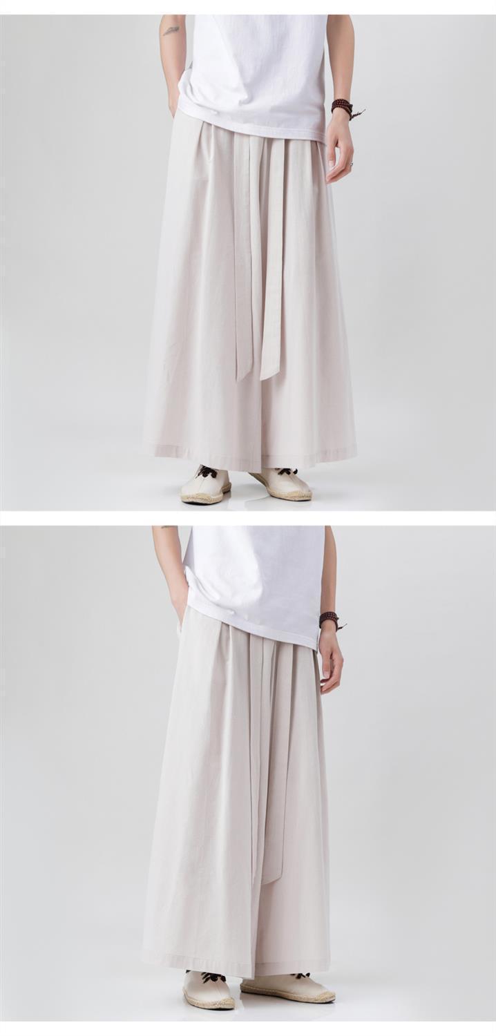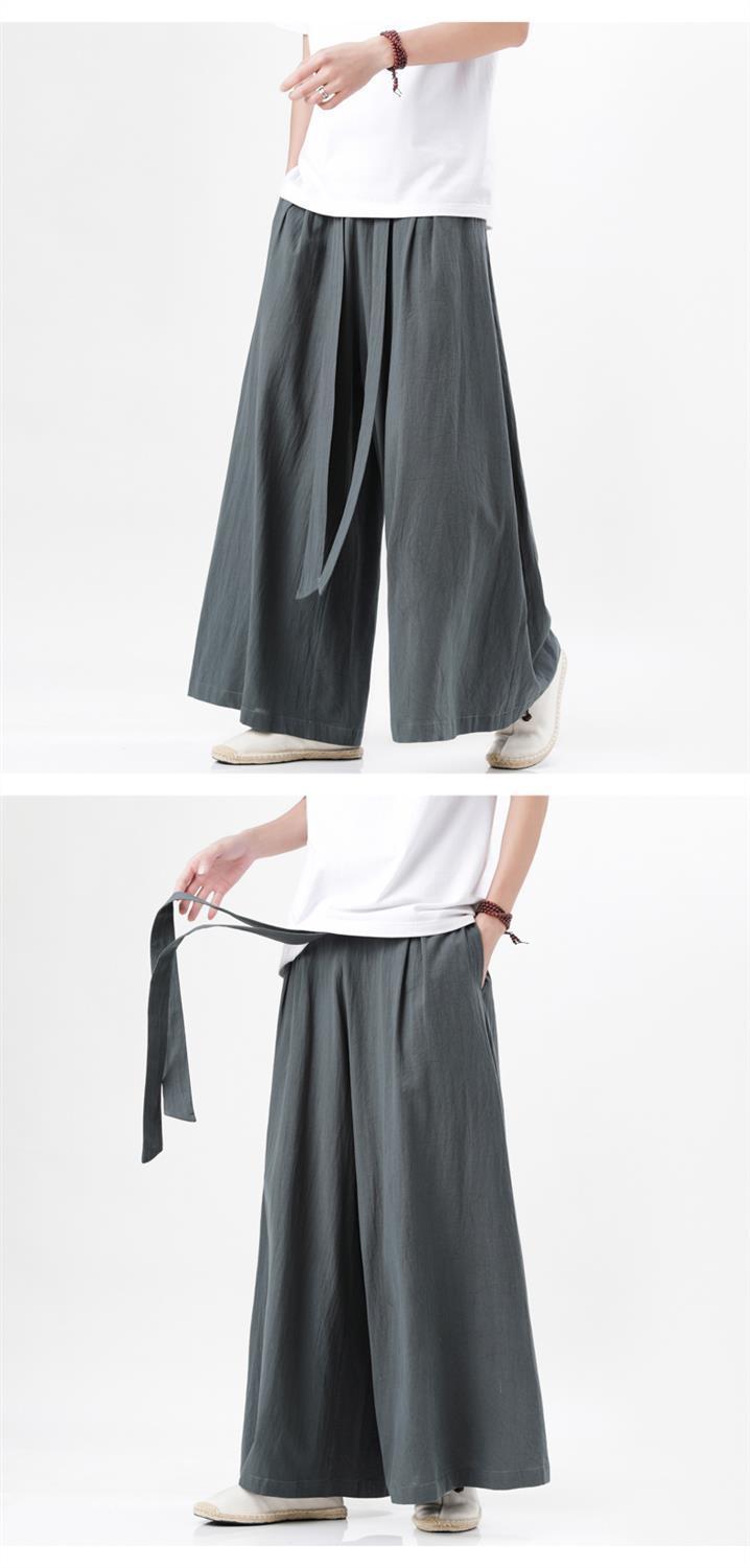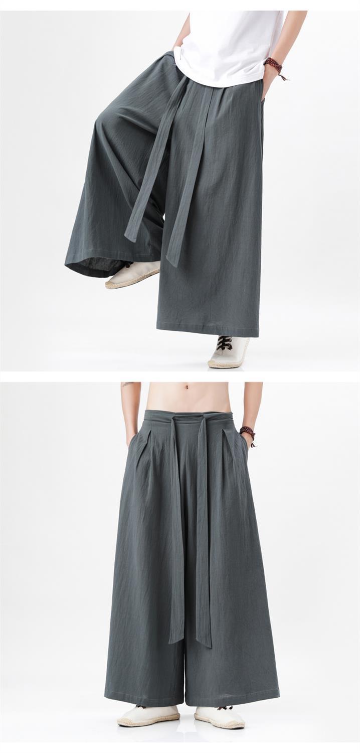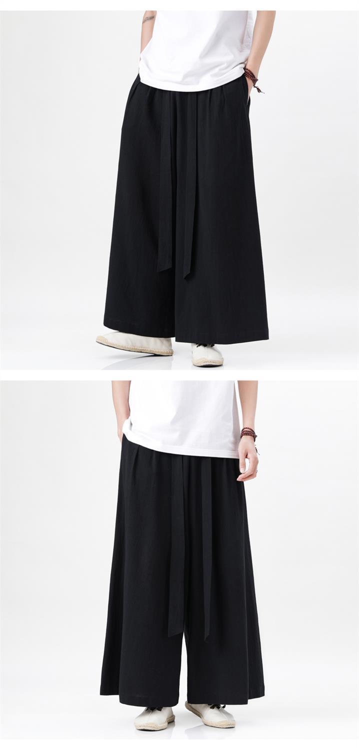 Pantalones de lino de algodón de estilo chino de elemento Han, elegantes pantalones de falda de pierna ancha Hanfu, pantalones Song, pantalones de nueve puntos, pantalones de lino de estilo retro, pantalones de hombre