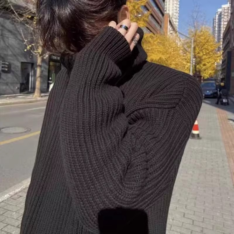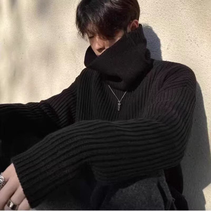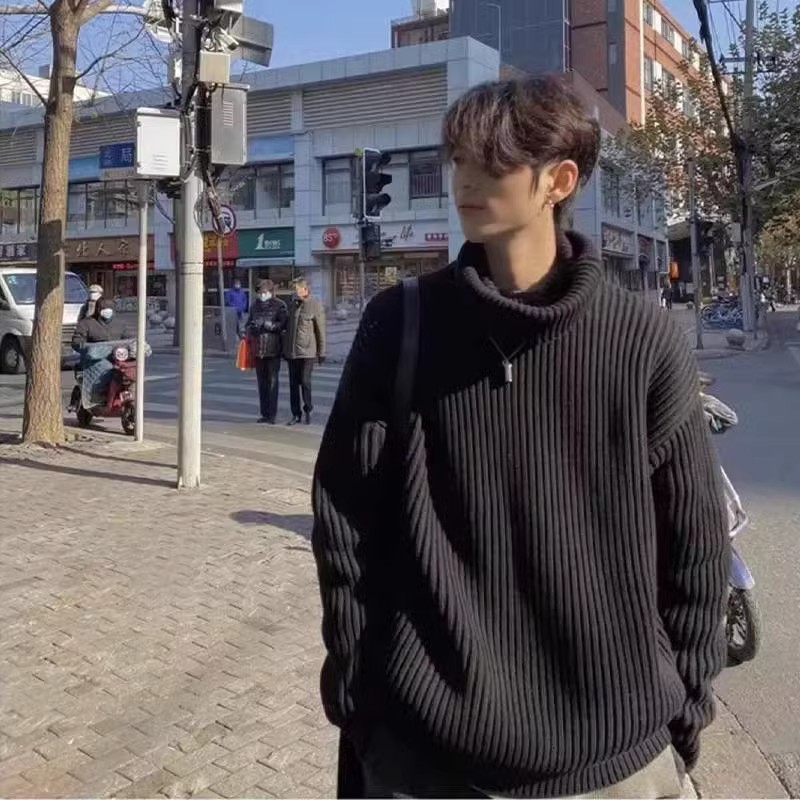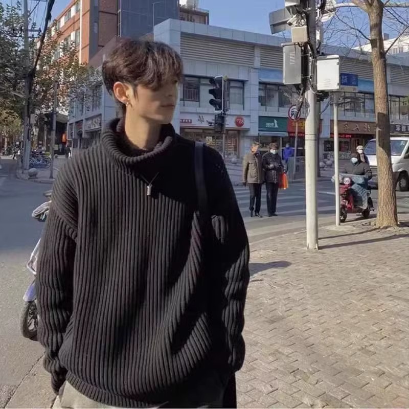 Suéter de punto grueso de color sólido japonés de invierno, suéter cálido de cuello alto suelto de moda para hombres y mujeres