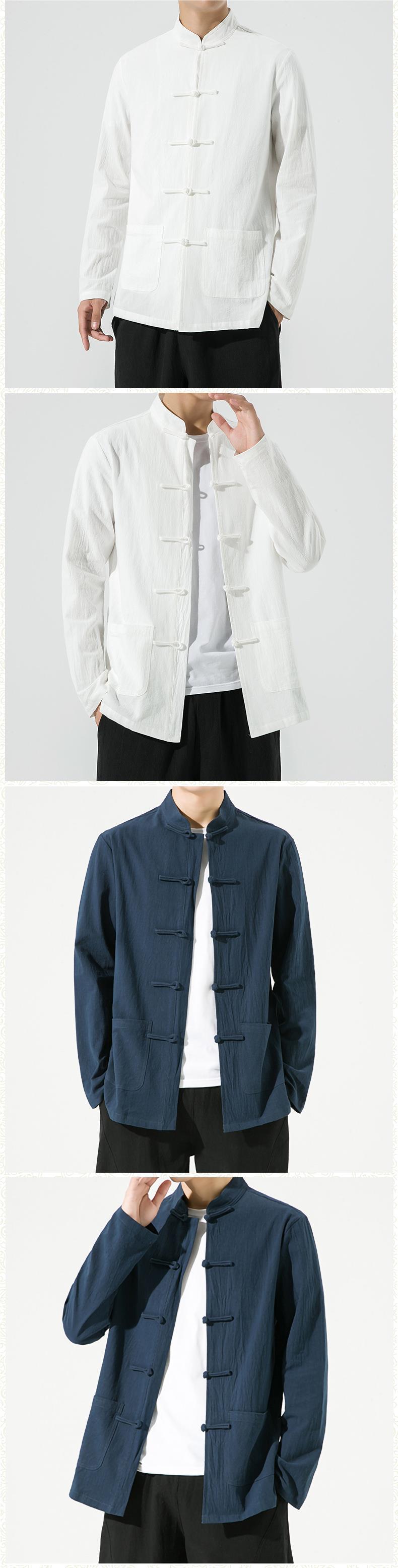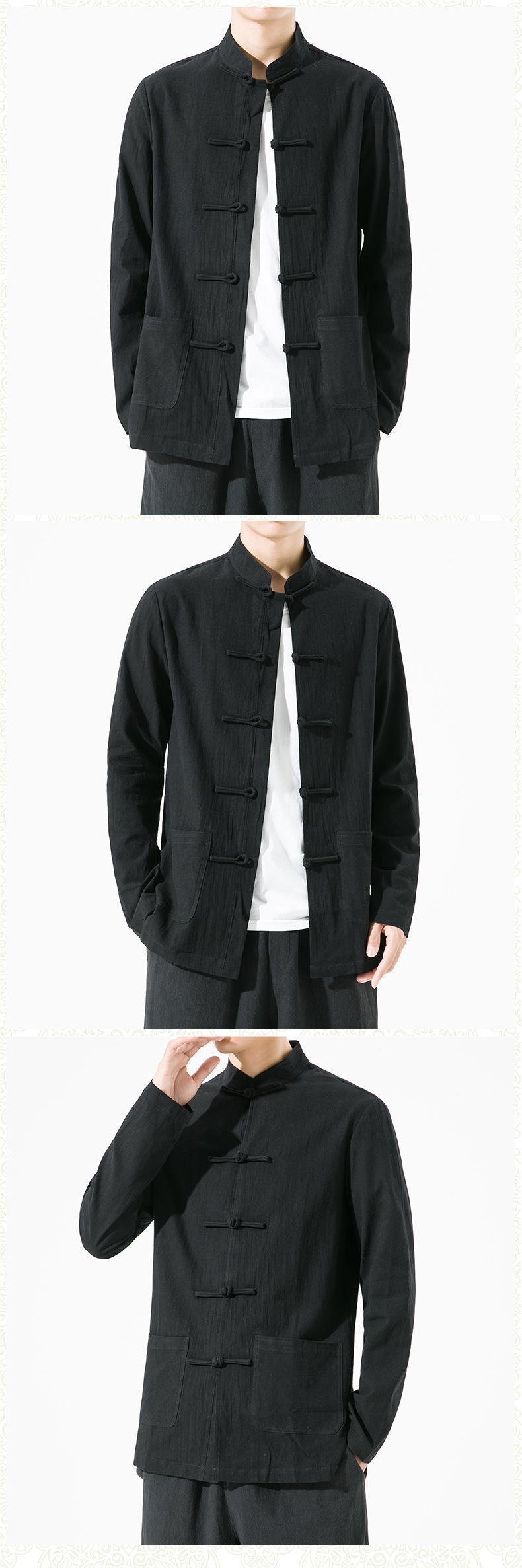 Camisa de traje Tang de manga larga casual de primavera y otoño de estilo chino Camisa de té suelta retro de estilo chino Túnica de túnica de color sólido para hombre