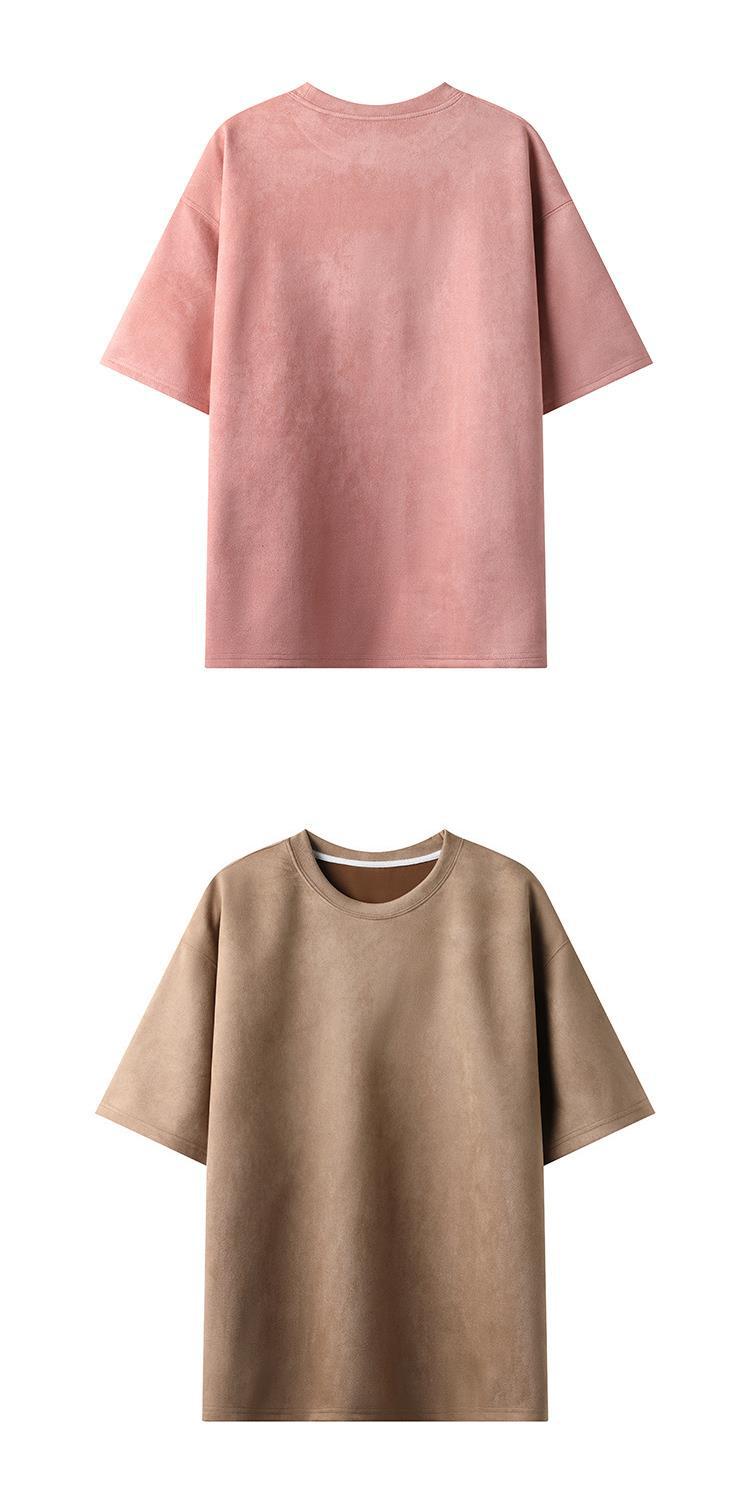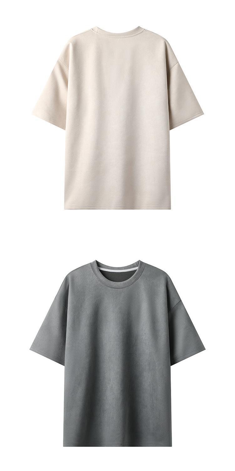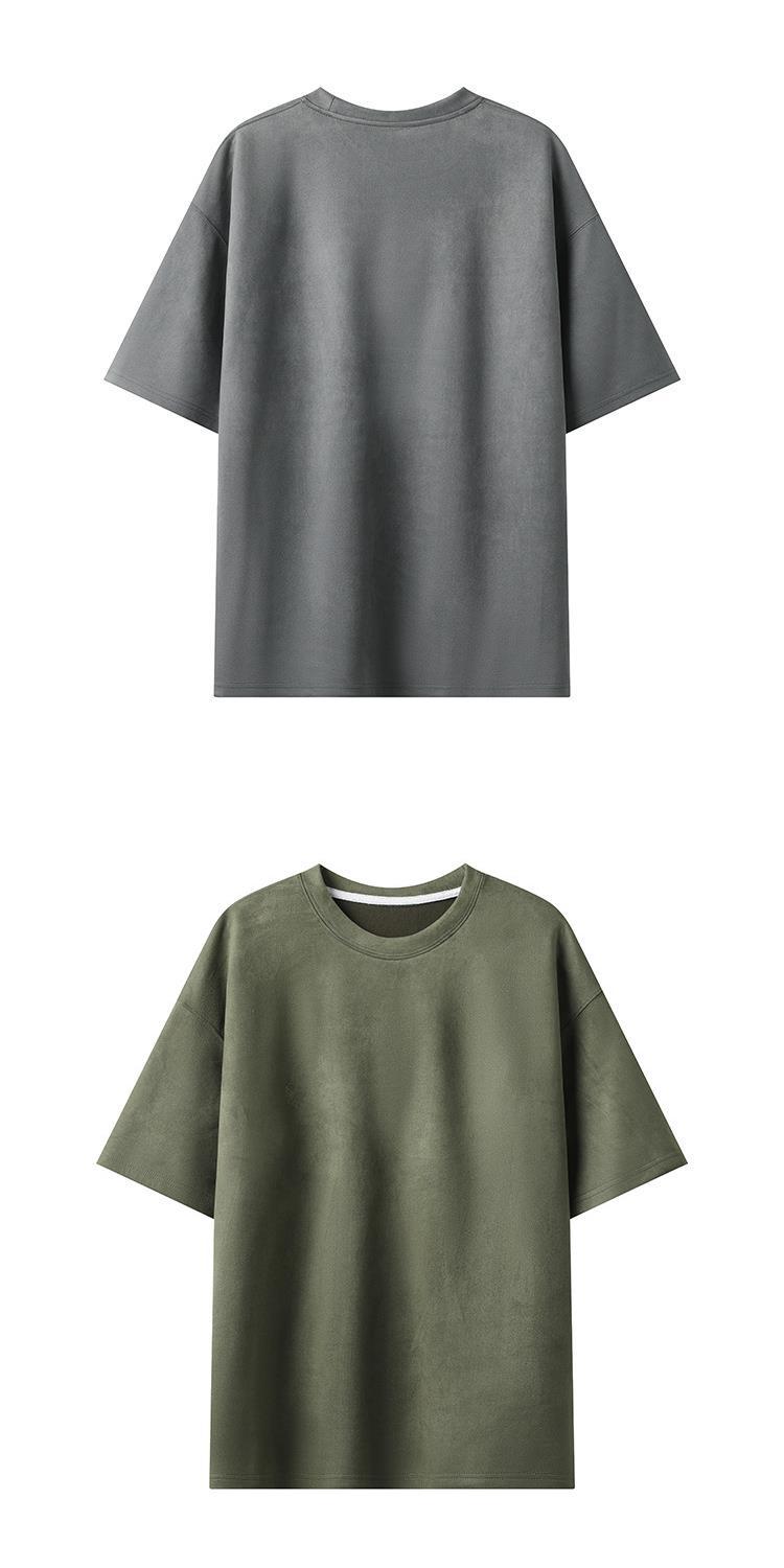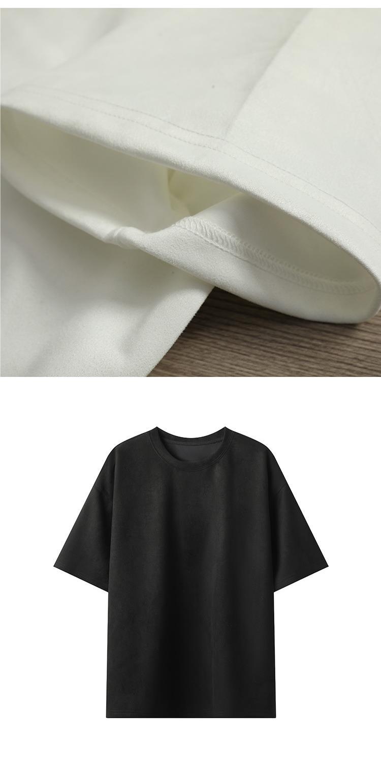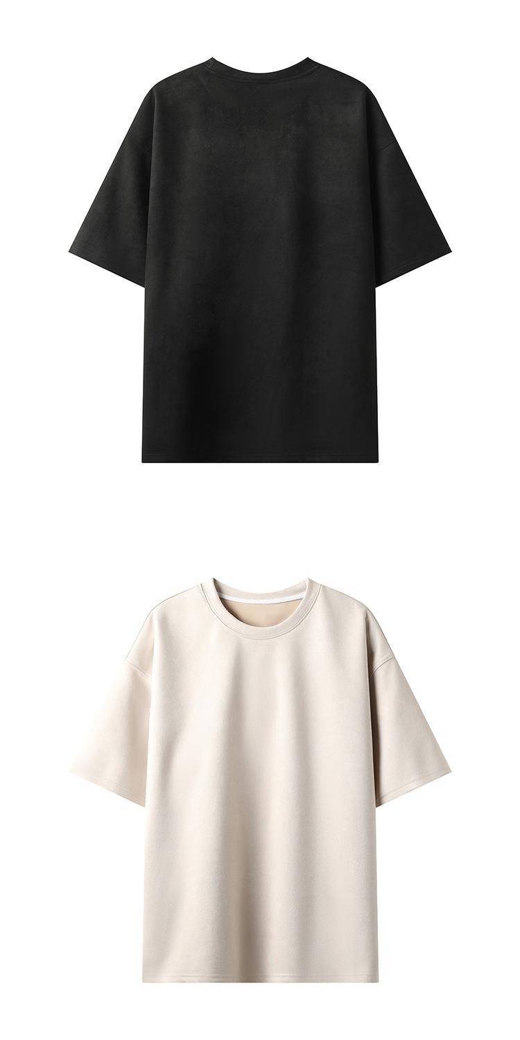 Camiseta para hombre 2024 nuevo estilo para hombre, tablero de luz de color sólido de dos abiertos, gamuza, cuello redondo suelto, jersey, camiseta de manga corta